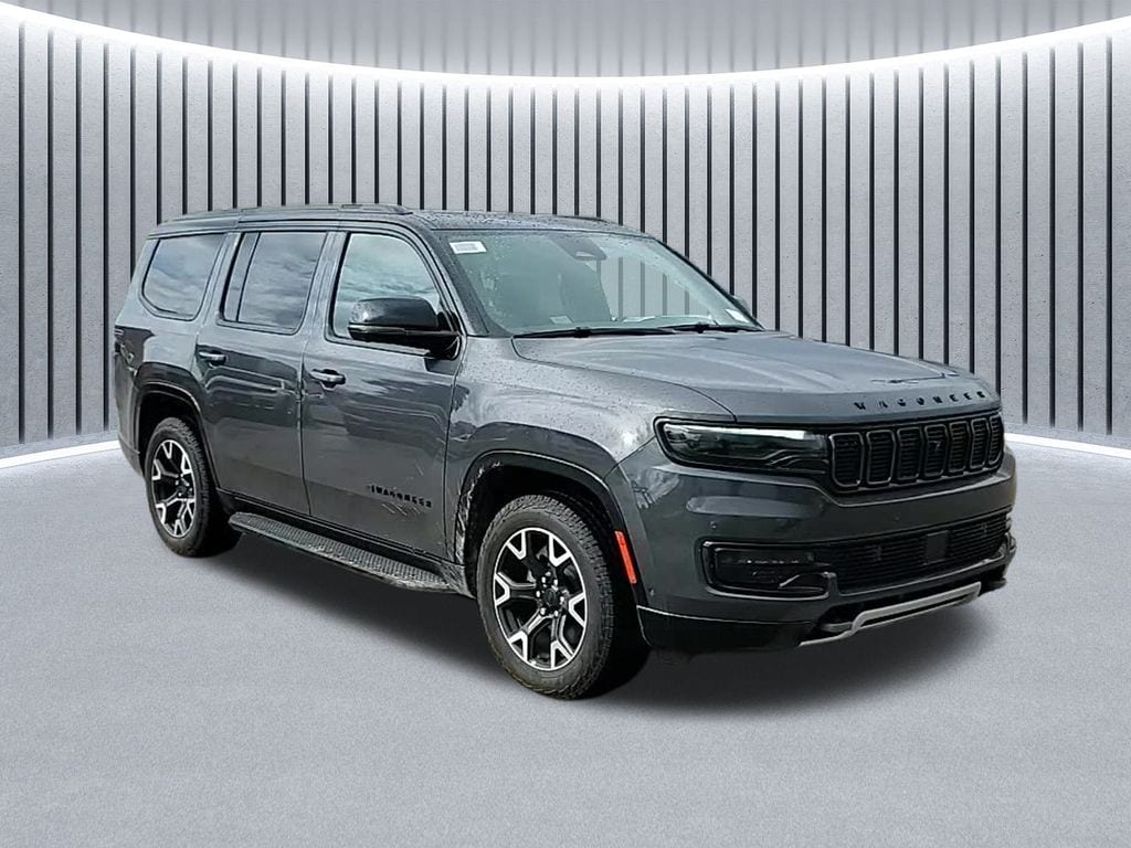 Overland Appearance Package, Quick Order Package 25P Overland (2 Speed On Demand Transfer Case, 3 Panel Sunroof, 3.92 Rear Axle Ratio, 60/40 Power Recline 3rd Row Seat, Adjustable Roof Rail Crossbars, All-Season Floor Mats, Auto Adjust In Reverse Exterior Mirrors, Auto High Beam Headlamp Control, Auto Power Folding Exterior Mirrors, Auto Power-Folding Mirrors, Auto-Dimming Exterior Driver Mirror, Black Exterior Accents, Black Roof, Cargo Tray, Electronic Rear Limited Slip Differential, Exterior Mirrors Approach Lamps, Exterior Mirrors w/Memory, Exterior Mirrors w/Supplemental Signals, Fuel Tank Skid Plate Shield, Heated Exterior Mirrors, Heavy-Duty Engine Cooling, Overland Exterior Accents, P&P Park & Unpark Assist w/Stop System, Quadra-Lift Air Suspension, Removable Rear Tow Hook, Selec-Speed Control, Semi Active Damping, Side Distance Warning, Surround View Camera System, Trailer Brake Control, Trailer Hitch Zoom, Vapor Tow Hooks, and Wheels: 20" x 9.0" Machine Face Painted Aluminum), 10 Speakers, 118 MPH Maximum Speed Calibration, 3.55 Rear Axle Ratio, 3rd row seats: bench, 4-Wheel Disc Brakes, ABS brakes, Air Conditioning, Alloy wheels, AM/FM radio: SiriusXM with 360L, Anti-whiplash front head restraints, Apple CarPlay/Android Auto, Audio memory, Auto-dimming door mirrors, Auto-dimming Rear-View mirror, Auto-leveling suspension, Automatic temperature control, Brake assist, Bumpers: body-color, Compass, Delay-off headlights, Driver door bin, Driver vanity mirror, Driver's Seat Mounted Armrest, Dual front impact airbags, Dual front side impact airbags, Electronic Stability Control, Emergency communication system: Jeep Connect, Four wheel independent suspension, Front anti-roll bar, Front Bucket Seats, Front Center Armrest w/Storage, Front dual zone A/C, Front fog lights, Front License Plate Bracket, Front reading lights, Fully automatic headlights, Garage door transmitter, Genuine wood console insert, Genuine wood dashboard insert, Genuine wood door panel insert, Heated door mirrors, Heated front seats, Heated rear seats, Heated steering wheel, Illuminated entry, Knee airbag, Leather Trimmed Bucket Seats, Low tire pressure warning, Memory seat, Navigation System, Normal Duty Suspension, Occupant sensing airbag, Outside temperature display, Overhead airbag, Overhead console, Panic alarm, ParkView Rear Back-Up Camera, Passenger door bin, Passenger seat mounted armrest, Passenger vanity mirror, Power adjustable front head restraints, Power door mirrors, Power driver seat, Power Liftgate, Power passenger seat, Power steering, Power windows, Radio data system, Radio: Uconnect 5 Nav w/10.1" Display, Rain sensing wipers, Rear air conditioning, Rear anti-roll bar, Rear dual zone A/C, Rear reading lights, Rear seat center armrest, Rear window defroster, Rear window wiper, Reclining 3rd row seat, Remote keyless entry, Security system, Speed control, Speed-sensing steering, Speed-Sensitive Wipers, Split folding rear seat, Steering wheel memory, Steering wheel mounted audio controls, Tachometer, Telescoping steering wheel, Tilt steering wheel, Traction control, Trip computer, Turn signal indicator mirrors, Variably intermittent wipers, Ventilated front seats, Voltmeter, and Wheels: 20" x 9.0" Premium 2 Aluminum.