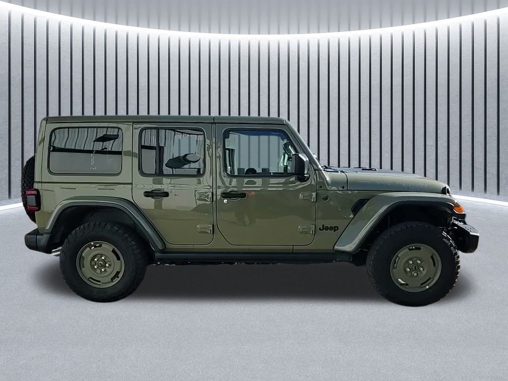 Convenience Group (2-Door Passive Entry, Front Door Locks, Air Conditioning w/Auto Temperature Control, Air Filtering, Emergency/Assistance Call, Heated Front Seats, Heated Steering Wheel, Remote Start System, and Universal Garage Door Opener), Quick Order Package 29H Willys '41 4xe (4xe 4WD Willys '41 Swing Gate Decal, 7 & 4 Pin Wiring Harness, 97 MPH Vehicle Max Speed Calibration, Auxiliary Switches, Body Color Grille w/Gloss Black Rings, Body Color Rubicon Highline Flare, Class II Receiver Hitch, Cloth Low-Back Bucket Seats (D7), Conventional Differential Front Axle, E-Locker Rear Axle, Front LED Fog Lamps, Gray/Black Trail Rated Badge, LED Premium Reflector Headlamps, Matte Black Jeep Badge, MOPAR All-Weather Floor Mats, Off-Road Plus Mode, Premium Tan Sunrider Soft Top (STC), Steel Front Bumper, Steel Rear Bumper, Wheels: 17" x 7.5" Painted Body Color, Willy's Suspension, Willys '41 Retro Edition Buzz Model, Willys '41 Retro Edition Hood Decal, Willys '41 Retro Edition PHEV Decal, Willys '41 Retro Edition Tailgate Plaque, Willys '41 Retro Edition Wrangler Decal, Willys '41 Retro Shift Bezel Insert, and Willys '41 US Edition U.S Hood Decal), Safety Group (Auto High Beam Headlamp Control, Blind Spot & Cross Path Detection, LED Taillamps, and ParkSense Rear Park Assist System), Technology Group (A/C Power Box Inverter (PHEV), Alpine Premium Audio System, and EV/PHEV Vehicle To Load), Trailer Tow & Aux Switch Group (700 Amp Maintenance Free Battery-CP), 4-Wheel Disc Brakes, 8 Speakers, ABS brakes, Air Conditioning, Alloy wheels, AM/FM radio: SiriusXM, Apple CarPlay/Android Auto, Body Color 3-Piece Hard Top, Brake assist, Cloth Low-Back Bucket Seats, Compass, Delay-off headlights, Driver door bin, Driver vanity mirror, Dual front impact airbags, Dual front side impact airbags, Electronic Stability Control, Freedom Panel Storage Bag, Front anti-roll bar, Front Bucket Seats, Front Center Armrest w/Storage, Front fog lights, Front License Plate Bracket (DISC), Front reading lights, Fully automatic headlights, Heated door mirrors, Illuminated entry, Integrated roll-over protection, Jeep Trail Rated Kit, Low tire pressure warning, MOPAR Doors Off Mirror Kit, MOPAR Hinge-Gate Reinforcement, MOPAR Windshield Tie Down, Occupant sensing airbag, Outside temperature display, Overhead airbag, Panic alarm, ParkView Rear Back-Up Camera, Passenger door bin, Passenger vanity mirror, Power door mirrors, Power steering, Power windows, Radio data system, Radio: Uconnect 5 w/12.3" Display, Rear anti-roll bar, Rear reading lights, Rear Window Defroster, Rear Window Wiper/Washer, Remote keyless entry, Security system, Speed control, Split folding rear seat, Sport Suspension, Steering wheel mounted audio controls, Tachometer, Telescoping steering wheel, Tilt steering wheel, Traction control, Trip computer, Variably intermittent wipers, Voltmeter, and Wheels: 20" x 8" Machined/Painted Gray.