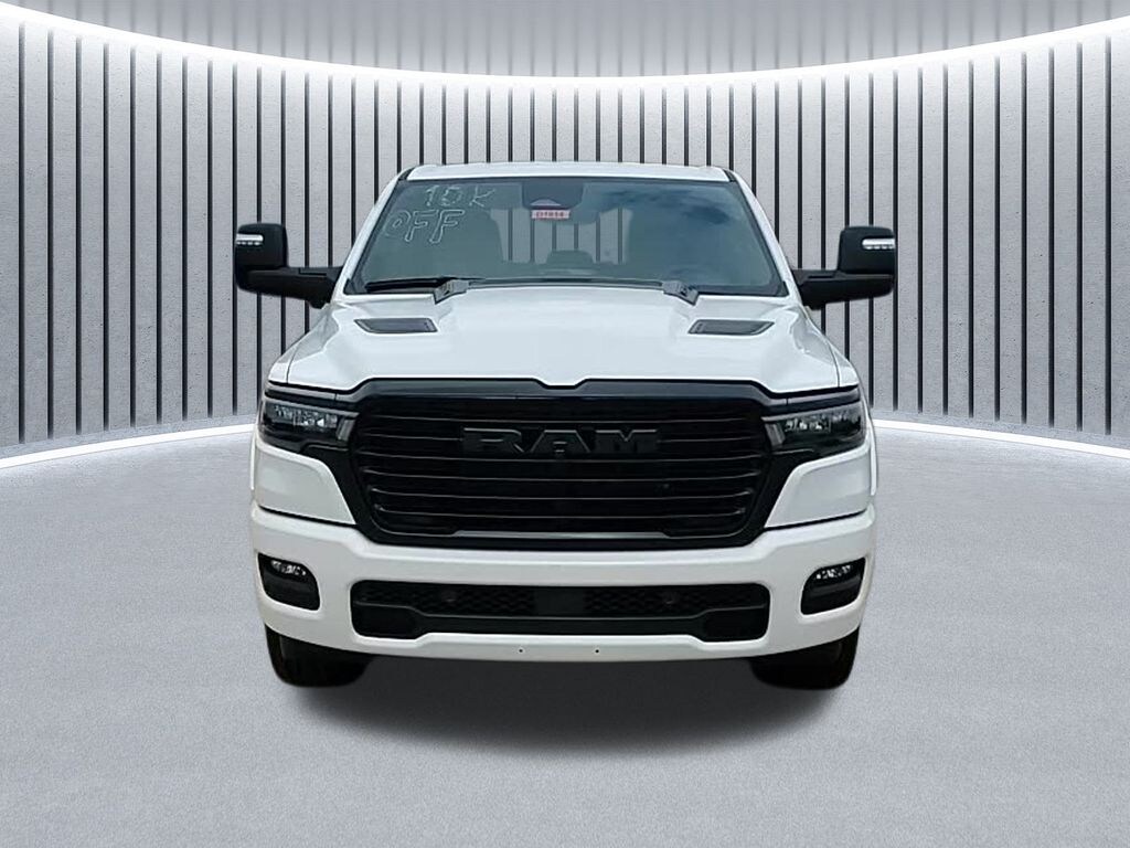 Laramie Level 2 Equipment Group (14.4" Touchscreen Display, 4G LTE Wi-Fi Hot Spot, Apple CarPlay, Cluster 12" TFT Color Display, Connected Travel & Traffic Services, Connectivity - US/Canada, Google Android Auto, GPS Antenna Input, GPS Navigation, harman/kardon 19 Speaker Premium Sound, HD Radio, Integrated Voice Command w/Bluetooth, Power Tailgate, Radio: Uconnect 5 Nav w/14.4" Display, Rain Sensitive Windshield Wipers, SiriusXM w/360L, and USB Host Flip), Night Edition (#1 Seat Foam Cushion, 3 Rear Seat Head Restraints, 4 Way Front Headrests, Accent Color Door Handles, Accent Color Premium Power Mirrors, Accent Color Tailgate Handle, Anti-Spin Differential Rear Axle, Auto Power-Folding Mirrors, Auto-Dimming Exterior Driver Mirror, Black Exterior Truck Badging, Black Headlamp Bezels, Black Interior Accents, Black Painted Exterior Mirrors Caps, Black Tail Lamp Bezels, Body Color Front Bumper, Body Color Rear Bumper w/Step Pads, Bucket Seats, Center Console Parts Module, Convex Wide-Angle Exterior Mirror Insert, Driver Seat Memory, Dual Exhaust w/Black Tips, Exterior Mirrors Approach Lamps, Exterior Mirrors Courtesy Lamps, Exterior Mirrors w/Heating Element, Exterior Mirrors w/Memory, Exterior Mirrors w/Supplemental Signals, Front Seat Back Map Pockets, Full Length Upgraded Floor Console, Grille Surround 3 Black Texture 2 Black, Heated Front Seats, Heated Second Row Seats, Heated Steering Wheel, Leather Trimmed Bucket Seats, Pirelli Brand Tires, Power 2-Way Driver Lumbar Adjust, Power 2-Way Passenger Lumbar Adjust, Power Adjust 8-Way Driver Seat, Power Adjust 8-Way Front Passenger Seat, Proximity Approach/Departure Lamps, RAM Grille Badge - Black, Rear 60/40 Folding Split Recline Seat, Sport Performance Hood, Ventilated Front Seats, and Wheels: 22" x 9" Forged Aluminum), Quick Order Package 21H Laramie, Trailer Tow Group (Auto-Dimming Exterior Passenger Mirror, Black Exterior Mirrors, Chrome Exterior Mirrors, Forward & Reverse Utility Lights, Mirror Clearance/Running Lights, Power Telescoping Mirrors, Power-Adjustable Convex Aux Mirrors, Trailer Brake Control, Trailer Light Check, Trailer Reverse Steering Control, Trailer Tire Pressure Monitoring System, and Trailer Tow Mirrors), 10 Speakers, 4-Wheel Disc Brakes, ABS brakes, Air Conditioning, Alloy wheels, AM/FM radio: SiriusXM with 360L, Apple CarPlay/Android Auto, Audio memory, Auto High-beam Headlights, Auto-dimming door mirrors, Auto-dimming Rear-View mirror, Automatic temperature control, Brake assist, Bumpers: chrome, Compass, Delay-off headlights, Driver door bin, Driver vanity mirror, Dual front impact airbags, Dual front side impact airbags, Electronic Stability Control, Engine Block Heater, Front anti-roll bar, Front Center Armrest w/Storage, Front dual zone A/C, Front fog lights, Front reading lights, Front wheel independent suspension, Fully automatic headlights, Garage door transmitter, Heated door mirrors, Heated front seats, Heated rear seats, Heated steering wheel, Illuminated entry, Leather steering wheel, Leather Trim 40/20/40 Bench Seat, Low tire pressure warning, Manufacturer's Statement of Origin, Memory seat, MOPAR Front & Rear Rubber Floor Mats, Navigation System, Occupant sensing airbag, Outside temperature display, Overhead airbag, Overhead console, Panic alarm, ParkView Rear Back-Up Camera, Passenger door bin, Passenger vanity mirror, Power door mirrors, Power driver seat, Power passenger seat, Power steering, Power windows, Radio data system, Radio: Uconnect 5 Nav w/12.0" Display, RAM Grille Badge - Chrome, Rear anti-roll bar, Rear reading lights, Rear seat center armrest, Rear step bumper, Remote keyless entry, Security system, Speed control, Split folding rear seat, Steering wheel mounted audio controls, Tachometer, Telescoping steering wheel, Tilt steering wheel, Traction control, Trip computer, Turn signal indicator mirrors, Varia Price includes: 10% Msrp - 2025 National 10% Below MSRP . Exp. 01/0