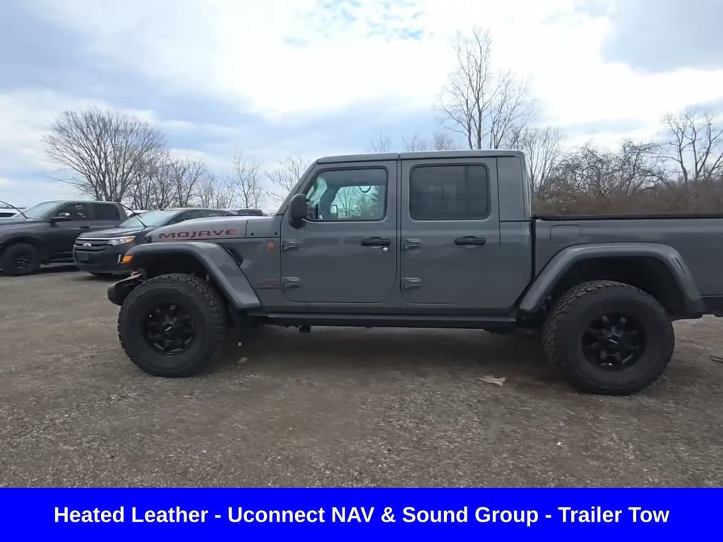 Clean CARFAX. ** Apple CarPlay/Android Auto, ** Adaptive Cruise Control, ** Blind Spot Monitor, ** Cross Traffic Alert, ** Alloy Wheels / Premium Wheels, ** Heated Seats, ** Bluetooth, Hands Free, ** Brake Assist, ** Camera Backup, ** Chrome Wheels / Premium Wheels / Custome Whwels, ** Cruise Control, ** Heated Steering Wheel, ** Keyless Entry, ** Lane Departure Warning, ** Leather Seats, ** LED Headlights, ** Navigation System, ** Premium Sound System / Premium Audio, ** Stability Control, ** Steering Wheel Controls, ** Tow Hitch / Trailer Hitch, ** USB Port, ** Clean Carfax Accident Free History, ** Power Drivers Seat, Bodyâ"color 2â"piece fender flares, Rollâ"up tonneau cover, 8â"speed automatic transmission, Sprayâ"in bedliner, Engine & Performance Power: 285 hp / 260 lb-ft torque Transmission: 6-speed manual (standard) 8-speed automatic (optional) Fuel economy: ~16 / 23 MPG ð' Real-world feel: Not fast (similar to Wrangler) Enough torque for off-road + daily driving Smooth with the automatic ðï¸ Mojave = Desert Performance (Key Difference) This is what makes it special: FOX internal bypass shocks Hydraulic jounce bumpers Reinforced frame 1-inch front lift Designed for high-speed off-road (sand/desert, Gladiator Mojave 4WD, 4D Crew Cab, 3.6L V6 24V VVT, 4WD, Sting-Gray Clearcoat, Global Black/Steel Gray w/Leather-Trimmed Bucket Seats, 1-Year SiriusXM Guardian Trial, 240 Amp Alternator, 5-Year SiriusXM Traffic Service, 5-Year SiriusXM Travel Link Service, 8.4" Radio & Premium Audio Group, 8.4" Touchscreen Display, Alpine Premium Audio System, Auto-Dimming Rear-View Mirror, Black 3-Piece Hard Top, Blind Spot & Cross Path Detection, Body Color 3-Piece Hard Top, Class IV Hitch Receiver, Cold Weather Group, Daytime Running Lamps LED Accents, Dual Top Group, Emergency/Assistance Call, For Details, Visit DriveUconnect.com, Freedom Panel Storage Bag, Front LED Fog Lamps, GPS Navigation, HD Radio, Heated Front Seats, Heated Steering Wheel, Heavy-Duty Engine Cooling, LED Lighting Group, LED Park Turn Lamps, LED Premium Reflector Headlamps, LED Taillamps, Navigation System, No Soft Top, ParkSense Rear Park Assist System, Premium Sunrider Black Soft Top, Quick Order Package 24D, Radio: Uconnect 4C Nav w/8.4" Display, Rear Sliding Window, Rear Window Defroster, Safety Group, SiriusXM Traffic Plus, SiriusXM Travel Link, Trailer Hitch Zoom, Trailer Tow Package.