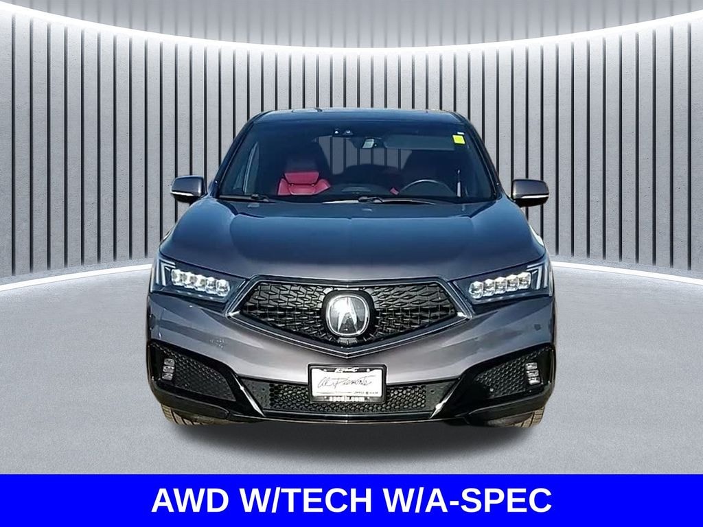 ** Apple CarPlay/Android Auto, ** Blind Spot Monitor, ** Cross Traffic Alert, ** Alloy Wheels / Premium Wheels, ** Heated Seats, ** Cooled Seats, ** Bluetooth, Hands Free, ** Brake Assist, ** Camera Backup, ** Cruise Control, ** Keyless Entry, ** Leather Seats, ** Navigation System, ** Power Panoramic (Pano) Sunroof / Moonroof, ** Premium Sound System / Premium Audio, ** Roof Rack, ** Stability Control, ** Steering Wheel Controls, ** Sunroof/Moonroof, ** USB Port, ** Power Drivers Seat, awd, ALL WHEEL DRIVE, AWD W/TECH W/A-SPEC, Powertrain & Performance Engine: 3.5-liter direct-injected i-VTEC® V6 Power: ~290 hp @ 6200 rpm Torque: ~267 lb-ft @ 4700 rpm Transmission: 9-speed automatic Drivetrain: Super Handling All-Wheel Drive (SH-AWD®) Towing Capacity: ~5,000 lbs The SH-AWD system enhances traction and handling compared with standard AWD., Technology Package Highlights The Technology Package adds a suite of premium comfort and convenience features over the base MDX, including: Dual-screen infotainment with navigation Apple CarPlay and Android Auto Blind-spot information system Rear cross-traffic alert Rain-sensing wipers 10-speaker premium audio (HD Radio, SiriusXM) ð¨ A-Spec Package Add-Ons The A-Spec package builds on the Tech package with sportier styling and interior enhancements: Exterior: 20â²â² Shark Gray split 5-spoke alloy wheels Sportier bumpers and gloss black trim LED fog lights and larger dual exhaust tips A-Spec badging Interior: Perforated Milano Premium Leather with Alcantara trim Heated and ventilated front seats Sport seats with contrast stitching, MDX Technology & A-Spec Packages SH-AWD, 4D Sport Utility, 3.5L V6 SOHC i-VTEC 24V, 9-Speed Automatic, AWD, Gunmetal Metallic, Red w/Perforated Milano Leather & Alcantara, Advance Chrome Running Boards, Cargo Cover, Fashion Package, A-Spec, Illuminated Door Sill Trim - 4 Door, A-Spec, Logo Pattern Projector, Navigation System, Premium Carpet Mat, A-Spec.