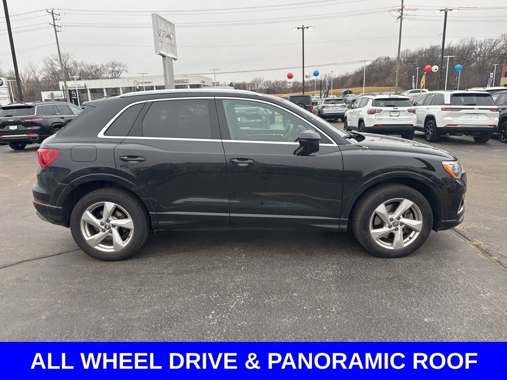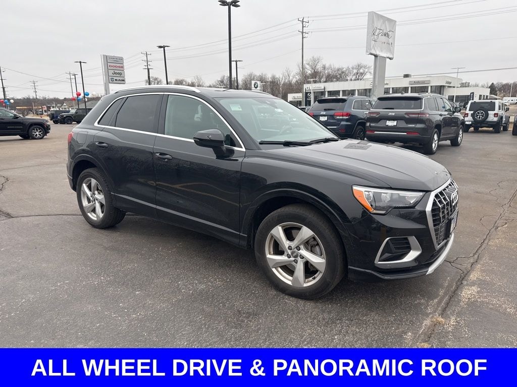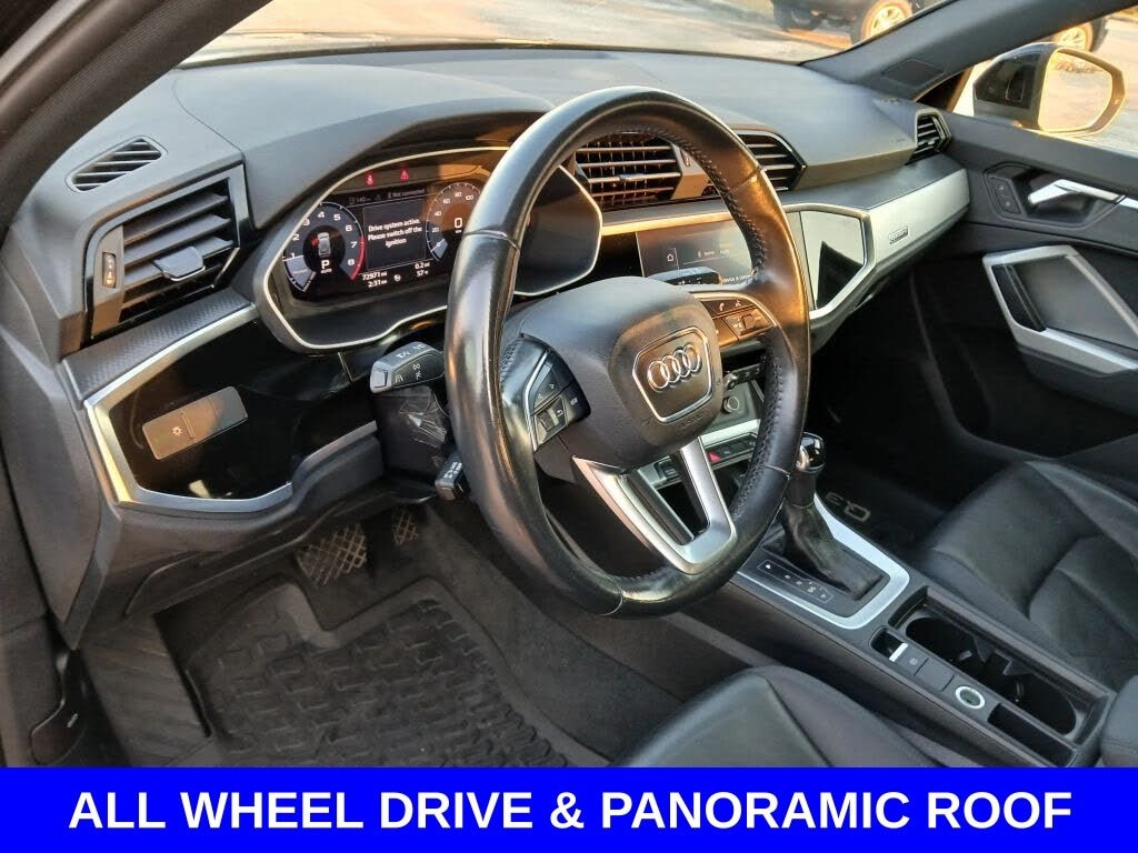 Clean CARFAX. ** Apple CarPlay/Android Auto, ** Blind Spot Monitor, ** Cross Traffic Alert, ** Alloy Wheels / Premium Wheels, ** Heated Seats, ** Bluetooth, Hands Free, ** Brake Assist, ** Camera Backup, ** Chrome Wheels / Premium Wheels / Custome Whwels, ** Cruise Control, ** Heated Steering Wheel, ** Keyless Entry, ** Leather Seats, ** LED Headlights, ** Navigation System, ** Power Panoramic (Pano) Sunroof / Moonroof, ** Premium Sound System / Premium Audio, ** Roof Rack, ** Stability Control, ** Steering Wheel Controls, ** Sunroof/Moonroof, ** USB Port, ** Clean Carfax Accident Free History, ** Power Drivers Seat, AWD, ALL WHEEL DRIVE, General Overview Model: 2020 Audi Q3 Trim: Premium Drivetrain: quattro® all-wheel drive (AWD) Roof: Panoramic sunroof / panoramic roof is available and often included â" itâs a large glass roof that brightens the cabin and can tilt/slide open. ð Engine & Performance Engine: Turbocharged 2.0-liter 4-cylinder Horsepower: ~228 hp Transmission: 8-speed automatic Fuel Economy: Around 19 MPG city / 27 MPG highway (AWD), The Premium trim includes many upscale comfort and tech amenities, such as: Panoramic sunroof / panoramic roof â" lets in more light and can open for fresh air. Leather seating surfaces â" premium feel. Heated front seats â" standard on many Premium Q3s. Three-zone automatic climate control â" separate temperature zones for front and rear passengers. Digital instrument cluster and MMI touchscreen infotainment with Apple CarPlay and Android Auto. ð"¶ Technology & Convenience Quattro AWD system â" enhances traction in various conditions. Power liftgate â" makes cargo access easier. Heated power-adjustable mirrors â" helpful in cold or wet weath, Q3 Premium quattro, 4D Sport Utility, 2.0L 4-Cylinder TFSI, 8-Speed Automatic with Tiptronic, quattro, Black Metallic, Black Leather, Alarm w/Motion Sensor, Audi Advanced Key, Audi Parking System Plus, Audi Side Assist, Convenience Package, HomeLink Garage Door Opener, SiriusXM All Access Service.