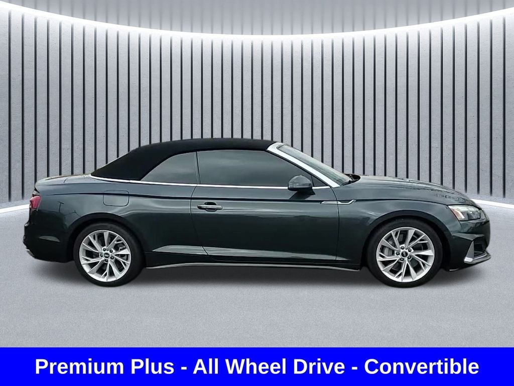 Clean CARFAX. ** Apple CarPlay/Android Auto, ** Adaptive Cruise Control, ** Blind Spot Monitor, ** Alloy Wheels / Premium Wheels, ** Heated Seats, ** Cooled Seats, ** Bluetooth, Hands Free, ** Brake Assist, ** Camera Backup, ** Chrome Wheels / Premium Wheels / Custome Whwels, ** Cruise Control, ** Heated Steering Wheel, ** Keyless Entry, ** Lane Departure Warning, ** Leather Seats, ** Navigation System, ** Premium Sound System / Premium Audio, ** Stability Control, ** Steering Wheel Controls, ** USB Port, ** Clean Carfax Accident Free History, ** Power Drivers Seat, all wheel drive, AWD, 2.0L 4-Cylinder TFSI, Engine / Drivetrain: The â45 TFSIâ denotes the 2.0-liter turbocharged inline-4 engine producing â 261 horsepower and 273 lb-ft of torque. Car and Driver +2 Kbb.com +2 Transmission & Drive: 7-speed dual-clutch automatic transmission, with full-time all-wheel drive (quattro/AWD) standard. Car and Driver +2 The Car Connection +2 Fuel economy: EPA-rated ~ 24 mpg city / 31 mpg highway / ~ 27 mpg combined (varies slightly by body style). Kbb.com +2 J.D. Power +2 Fuel requirement: Premium unleaded recommended. Edmunds +1 Performance: 0â"60 mph in the ballpark of ~ 5.3 seconds (for most 45-TFSI A5s) and a top speed around 130 mph (electronically limited on many trims)., Quality interior: Leather seats, power front seats (driver & passenger), heated seats (in many configs), power windows, tilt/telescoping steering, and folding rear seats (on some body styles) for convenience. Kbb.com +2 CarGurus +2 Technology & convenience: Bluetooth connectivity, smartphone integration / USB ports, remote keyless entry, remote engine start (in some markets/configs), touch-screen display, satellite/HD radio, multiple speakers â" enough for a solid in-car entertainment setup. Kbb.com +2 CarGurus +2 Safety / driver aids: The A5 comes with standard safety and driver-assistance features â" for example, blind-spot monitoring, rear-cross traffic alert / rear cross traffic assist, lane departure / lane-keep assist (depending on variant), and automated braking/seatbelt tightening systems when a collision is imminent (part of Audiâs âPre Senseâ suite) on many Premium Plus 45-TFSI AWD builds. Kbb.com +1 Practicality: With AWD + a balanced engine, the car maintains a good balance for daily driving and occasional spirited driving. Fuel economy is reasonable for a performance-oriented compact luxury car with AWD., Convertible, A5 45 Premium Plus quattro, 2D Convertible, 2.0L 4-Cylinder TFSI, 7-Speed Automatic S tronic, quattro, Gray Metallic, Atlas Beige Leather, Adaptive Cruise Control w/Traffic Jam Assist, Alarm System w/Motion Sensors, Audi Active Lane Assist, Audi Advanced Key, Audi Phone Box, Audi Side Assist w/Pre Sense Rear, Audi Virtual Cockpit Plus, Auto-Dimming Exterior Mirrors w/Memory, Convenience Package, Driver Seat Memory, Front Sport Seats, Hands-On Detection Steering Wheel, Heated Steering Wheel, Leatherette Covered Center Console & Door Armrests, Matrix-Design LED Headlights, MMI Navigation Plus, Navigation Package, Navigation System, Neck-Level Heating System, Parking System Plus (Front/Rear Acoustic Sensors), Power Folding Exterior Mirrors, Premium Plus, SiriusXM All Access Service, Top View Camera System, Ventilated Front Seats, Warm Weather Package.