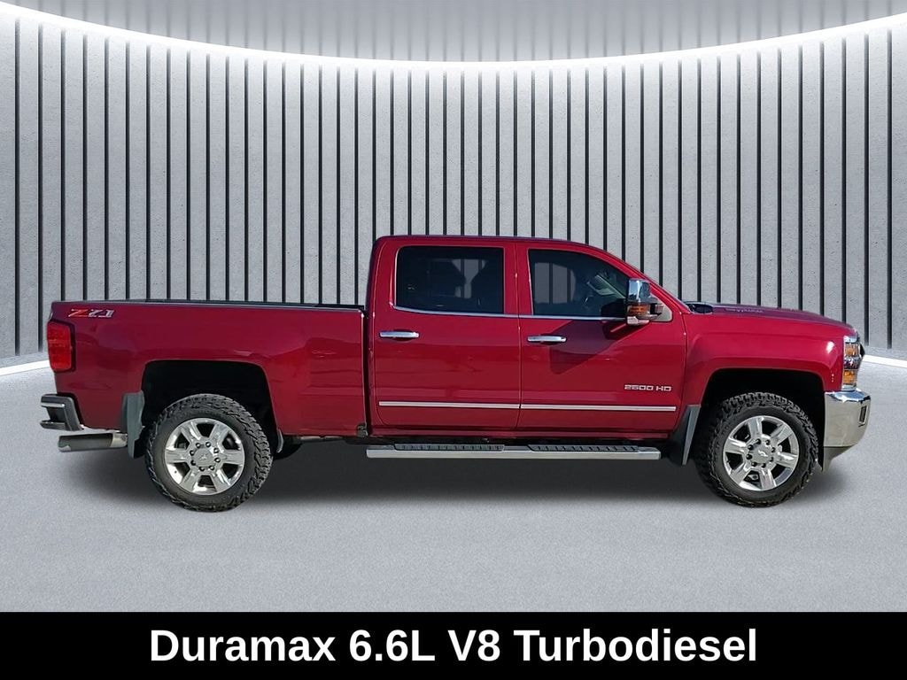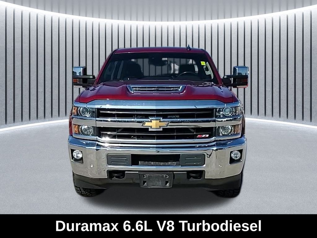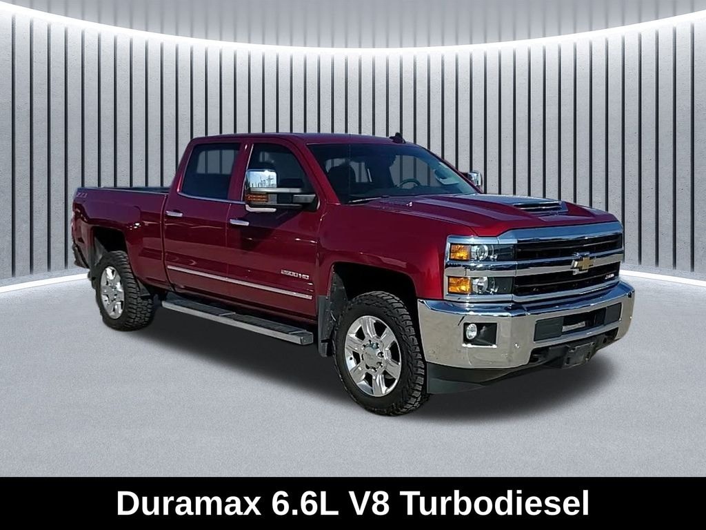 Clean CARFAX. ** Apple CarPlay/Android Auto, ** Blind Spot Monitor, ** Cross Traffic Alert, ** Alloy Wheels / Premium Wheels, ** Heated Seats, ** Bluetooth, Hands Free, ** Brake Assist, ** Camera Backup, ** Chrome Wheels / Premium Wheels / Custome Whwels, ** Cruise Control, ** Heated Steering Wheel, ** Keyless Entry, ** Leather Seats, ** Premium Sound System / Premium Audio, ** Stability Control, ** Steering Wheel Controls, ** Tow Hitch / Trailer Hitch, ** USB Port, ** Power Drivers Seat, Duramax 6.6L V8 Turbodiesel, crew cab, 4wd, 4x4, Key Engine / Powertrain Engine: 6.6 L Duramax TurboâDiesel V8 (âL5Pâ) Kbb.com +4 CarsDirect +4 J.D. Power +4 Horsepower: ~ 445 hp @ ~ 2800 rpm Kbb.com +3 CarsDirect +3 Von Holzen +3 Torque: ~ 910 lbâft @ ~ 1600 rpm Kbb.com +3 J.D. Power +3 CarsDirect +3 Transmission: 6âspeed automatic (Allison 1000) Von Holzen +1 Drivetrain: 4WD (FourâWheel Drive) Car and Driver +3, Features Specific to LTZ Trim Some of the niceties on LTZ with the Duramax in 2018 include: Leatherâappointed seating, heated and possibly vented front seats Von Holzen Integrated trailer brake controller & trailering equipment package Von Holzen +1 Premium audio, larger touchscreen infotainment (MyLink), power features, dualâzone climate control, etc. Von Holzen +1, Spec Approximate Value Fuel Tank Capacity ~ 36 gallons chevy-specs.com +2 J.D. Power +2 Max Towing Capacity Up to ~ 14,000 lbs depending on configuration (crew cab, axle, hitch, etc.) Kbb.com +2 Von Holzen +2 Payload Varies quite a bit, but some LTZ configs show ~ 3,000âlb payloads depending on cab/bed/etc. Kbb.com +1 Curb Weight / Gross Weight Depending on config, itâs a heavy truck; gross vehicle weight ratings (GVWR) go up to around 10,000 lbs or more for some LTZ Diesel versions. Von Holzen +1, Silverado 2500HD LTZ Duramax 6.6L Turbodiesel, 4D Crew Cab, Duramax 6.6L V8 Turbodiesel, Allison 1000 6-Speed Automatic, 4WD, Cajun Red Tintcoat, Cocoa/Dune Leather, 110-Volt AC Power Outlet, 220 Amps Alternator, 4.2" Diagonal Color Display Driver Info Center, 6-Speaker Audio System, Auto-Dimming Inside Rear-View Mirror, Chevrolet w/4G LTE, Chrome Bodyside Moldings, Chrome Door Handles, Chrome Mirror Caps, Color-Keyed Carpeting Floor Covering, Deep-Tinted Glass, Digital Steering Assist, Driver & Front Passenger Vanity Mirror Visors, Driver Alert Package, Dual-Zone Automatic Climate Control, Duramax Plus Package, Electric Rear-Window Defogger, Electronic Shift Transfer Case, Engine Block Heater, EZ-Lift & Lower Tailgate, Forward Collision Alert, Front Halogen Fog Lamps, Gooseneck/5th Wheel Prep Package, HD Radio, Heated Leather Wrapped Steering Wheel, Heated Power-Adjustable Outside Mirrors, Hill Descent Control, Integrated Trailer Brake Controller, Lane Departure Warning System, Leather-Wrapped Steering Wheel, LTZ Plus Package, Manual Tilt-Wheel/Telescoping Steering Column, Navigation System, Off-Road Z71 Package, OnStar & Chevrolet Connected Services Capable, Power Sliding Rear Window w/Defogger, Power Windows w/Driver Express Up & Down, Power-Adjustable Pedals, Preferred Equipment Group 1LZ, Provision for Cab Roof-Mounted Lamp/Beacon, Radio: AM/FM Stereo w/Chevrolet MyLink/Navigation, Rear 60/40 Folding Bench Seat (Folds Up), Rear Wheelhouse Liners, Remote Keyless Entry, Remote Locking Tailgate, Remote Vehicle Starter System, Single Slot CD/MP3 Player, SiriusXM Satellite Radio, Snow Plow Prep Package, Standard Suspension Package, Trailering Equipment, Ultrasonic Front & Rear Park Assist, Unauthorized Entry Theft-Deterrent System, Universal Home Remote.