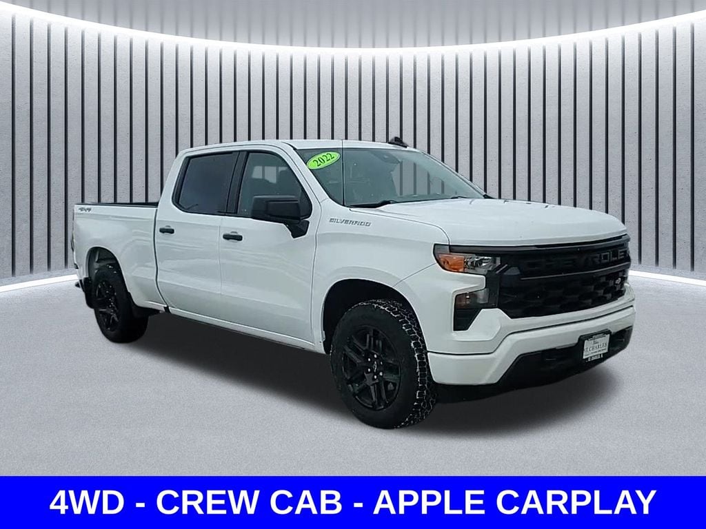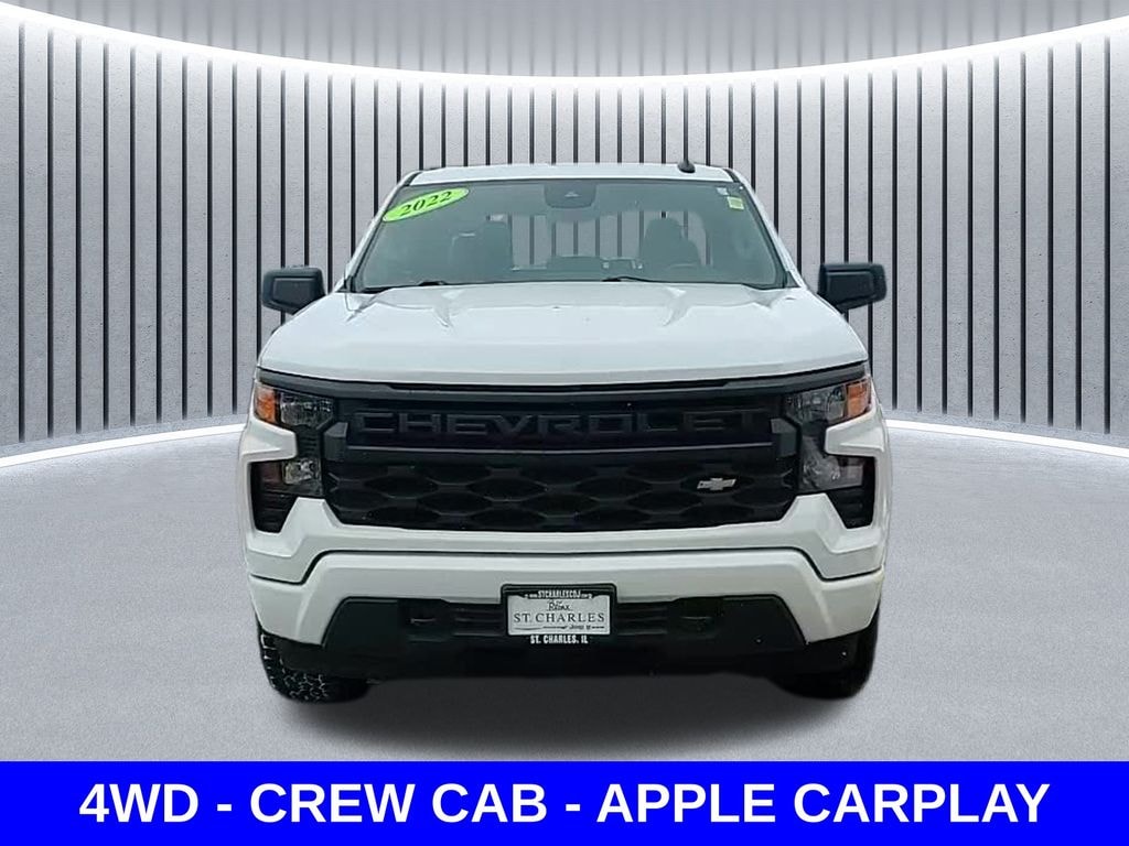 Priced below KBB Fair Purchase Price! Recent Arrival! Summit White 2022 Chevrolet Silverado 1500 4D Crew Cab Custom 4WD CREW CAB 2.7L Turbo 17/20 City/Highway MPG 8-Speed Automatic 4WD
