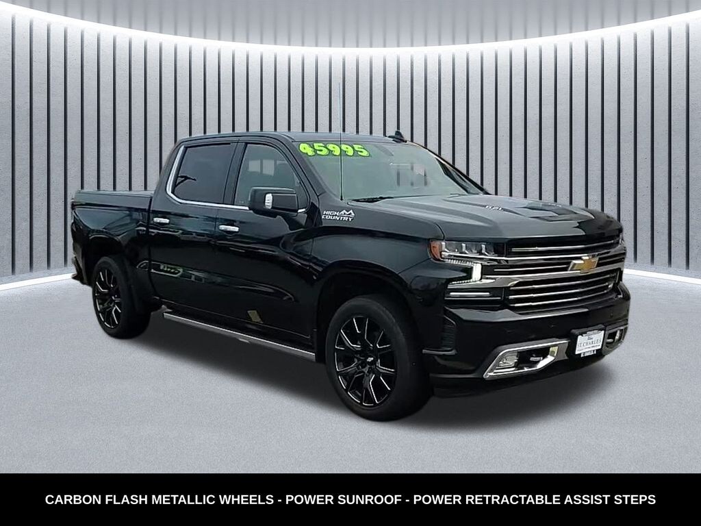 Odometer is 7823 miles below market average! ** Apple CarPlay/Android Auto, ** Adaptive Cruise Control, ** Blind Spot Monitor, ** Cross Traffic Alert, ** Alloy Wheels / Premium Wheels, ** Heated Seats, ** Cooled Seats, ** Bluetooth, Hands Free, ** Camera Backup, ** Chrome Wheels / Premium Wheels / Custome Whwels, ** Cruise Control, ** Heated Steering Wheel, ** Keyless Entry, ** Lane Departure Warning, ** Leather Seats, ** LED Headlights, ** Navigation System, ** Premium Sound System / Premium Audio, ** Stability Control, ** Steering Wheel Controls, ** Sunroof/Moonroof, ** USB Port, ** Clean Carfax Accident Free History, ** One Owner, ** Power Drivers Seat, ** Power Passenger Seat, CARBON FLASH METALLIC WHEELS, POWER RETRACTABLE ASSIST STEPS, ADAPTIVE RIDE CONTROL, 2022 Silverado 1500 LTD High Country (6.2L V8 4WD) â" Key Specs Engine & Performance Engine: 6.2 L EcoTec3 V8 with Dynamic Fuel Management Horsepower: ~420 hp Torque: ~460 lb-ft Transmission: 10-speed automatic Drivetrain: Four-wheel drive (4WD) progressivechevrolet.com +1 Towing & Capability Maximum Towing Capacity: Up to ~13,300 lbs (varies slightly by configuration) progressivechevrolet.com +1 Fuel Tank: ~24 gal (standard), Fuel Economy EPA Estimated: ⢠~14-15 mpg city ⢠~19-20 mpg highway ⢠~17 mpg combined These figures are typical for the 6.2L V8 4WD model. progressivechevrolet.com +1 Size & Seating Crew Cab with 4 Doors: Spacious interior for up to 5 passengers J.D. Power Bed Length: ~5-6.5 ft depending on configuration, Silverado 1500 LTD High Country Power Sunroof, 4D Crew Cab, EcoTec3 6.2L V8, 10-Speed Automatic, 4WD, Black Metallic, Black Leather, 10-Way Power Driver Seat w/Lumbar, 10-Way Power Passenger Seat Adjuster w/Lumbar, 12-Volt Rear Auxiliary Power Outlet, 120-Volt Bed Mounted Power Outlet, 120-Volt Instrument Panel Power Outlet, 2nd Row Heated Outboard Seats, 8" Driver Information Center, Advanced Trailering System, Auto-Dimming Inside Rear-View Mirror, Auto-Locking Rear Differential, Auxiliary External Transmission Oil Cooler, Bluetooth® For Phone, Body-Color Painted Mirror Caps, Chevytec Spray-On Black Bedliner, Chrome Assist Steps, Chrome Grille, Chrome Recovery Hooks, Color-Keyed Carpeting Floor Covering, Compass, Deep-Tinted Glass, Driver Memory, Dual Exhaust w/Polished Outlets, Electric Rear-Window Defogger, Electronic Cruise Control, Floor Mounted Center Console, Front Carpeted Floor Mats, Front LED Fog Lamps, HD Rear Vision Camera, Heated Driver & Front Outboard Passenger Seats, Heated Steering Wheel, Hitch Guidance w/Hitch View, Integrated Trailer Brake Controller, Keyless Open & Start, Lane Change Alert w/Side Blind Zone Alert, Leather Wrapped Steering Wheel, LED Cargo Area Lighting, Manual Tilt/Telescoping Steering Column, Navigation System, OnStar & Chevrolet Connected Services Capable, Outside Heated Power-Adjustable Mirrors, Power Door Locks, Power Front Passenger Windows w/Express Up/Down, Power Front Windows w/Driver Express Up/Down, Power Rear Windows w/Express Down, Power Sliding Rear Window w/Rear Defogger, Power Tailgate, Preferred Equipment Group 3LZ, Rear Carpeted Floor Mats, Rear Cross Traffic Alert, Rear Dual USB Charging-Only Ports, Rear Wheelhouse Liners, Remote Vehicle Starter System, Standard Tailgate, Steering Wheel Audio Controls, Theft Deterrent System (Unauthorized Entry), Trailering Package, Ultrasonic Front & Rear Park Assist, Universal Home Remote, Up-Level Rear Seat w/Storage Package, Ventilated Driver & Front Passenger Seats, Wireless Charging, Wireless Phone Projection.