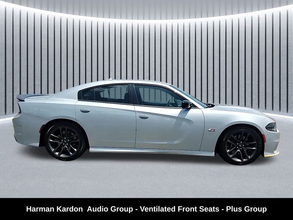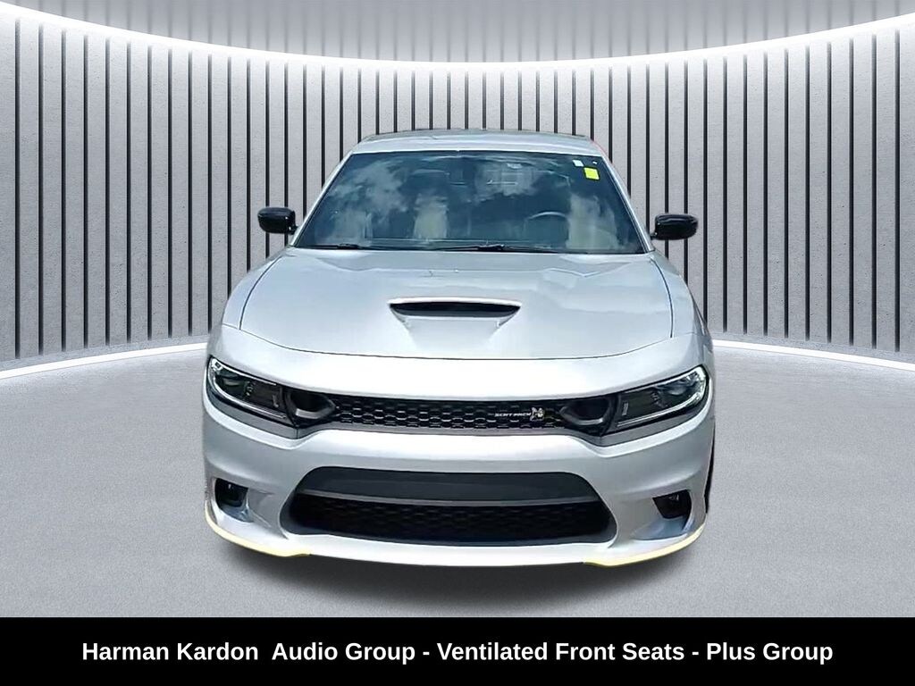 CARFAX One-Owner. Clean CARFAX. Odometer is 9508 miles below market average! ** Apple CarPlay/Android Auto, ** Adaptive Cruise Control, ** Blind Spot Monitor, ** Cross Traffic Alert, ** Alloy Wheels / Premium Wheels, ** Heated Seats, ** Cooled Seats, ** Bluetooth, Hands Free, ** Brake Assist, ** Camera Backup, ** Chrome Wheels / Premium Wheels / Custome Whwels, ** Cruise Control, ** Heated Steering Wheel, ** Keyless Entry, ** Premium Sound System / Premium Audio, ** Stability Control, ** Steering Wheel Controls, ** USB Port, ** Clean Carfax Accident Free History, ** One Owner, ** Power Drivers Seat, Uconnect® 4C with 8.4â"Inch Touch Screen Display, SRT HEMI 6.4L V8 MDS, Ventilated Front Seats, Harman Kardon® Audio Group, The Plus Group is an optional equipment package for the 2023 Charger R/T Scat Pack that upgrades comfort, convenience, and some visibility/safety features. It typically includes the following enhancements: performancecdjrsomerville.com +1 Interior & Comfort Features Premium-stitched dash panel â" nicer interior trim. performancecdjrsomerville.com Black-edged premium floormats â" upgraded mats. performancecdjrsomerville.com Scat Pack logo Nappa/Alcantara seats â" performanceish premium upholstery. performancecdjrsomerville.com Convenience Power tilt/telescope steering column â" adjustable steering position. performancecdjrsomerville.com Auto-adjust in reverse exterior mirrors â" mirrors tilt down when backing up. performancecdjrsomerville.com Exterior & Lighting **Driver & passenger lower LED lamps â" enhanced interior lighting. machaikchryslerdodgejeepram.com Front overhead LED lighting â" brighter cabin lighting. performancecdjrsomerville.com Exterior mirrors with heating elements & courtesy lamps â" heated mirrors and lights that illuminate area near doors., Charger R/T Scat Pack Plus Group, 4D Sedan, SRT HEMI 6.4L V8 MDS, 8-Speed Automatic, RWD, Triple Nickel Clearcoat, Black Artificial Leather.