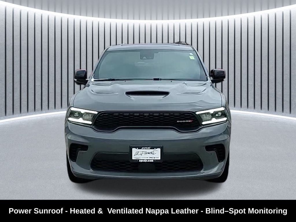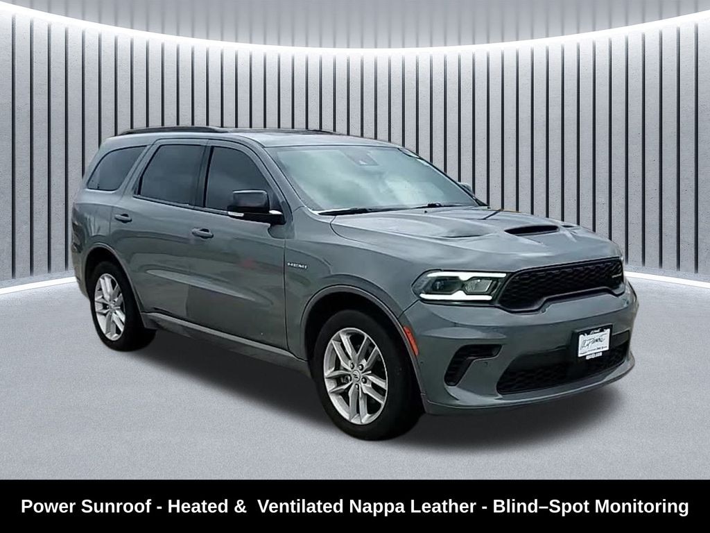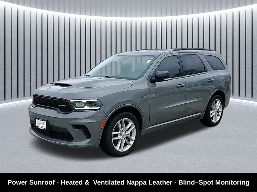 Clean CARFAX. ** Apple CarPlay/Android Auto, ** Adaptive Cruise Control, ** Blind Spot Monitor, ** Cross Traffic Alert, ** Alloy Wheels / Premium Wheels, ** Heated Seats, ** Cooled Seats, ** Bluetooth, Hands Free, ** Brake Assist, ** Camera Backup, ** Chrome Wheels / Premium Wheels / Custome Whwels, ** Cruise Control, ** Heated Steering Wheel, ** Keyless Entry, ** Lane Departure Warning, ** Leather Seats, ** LED Headlights, ** Memory Seat, ** Navigation System, ** Premium Sound System / Premium Audio, ** Roof Rack, ** Stability Control, ** Steering Wheel Controls, ** Sunroof/Moonroof, ** Third Row Seating / 3rd Row Seating, ** Tow Hitch / Trailer Hitch, ** USB Port, ** Clean Carfax Accident Free History, ** One Owner, ** Power Drivers Seat, ** Power Passenger Seat, ALL WHEEL DRIVE, AWD, HEMI 5.7L V8 Multi Displacement VVT, Key Specs & Features Engine: 5.7L HEMI V8 hendrickdodge.com +2 Bill Luke Chrysler Jeep Dodge Ram +2 Power / Torque: ~360 hp @ 5,150 rpm; 390 lb-ft @ 4,250 rpm Bill Luke Chrysler Jeep Dodge Ram +1 Transmission: 8-speed automatic (8HP70) J.D. Power Drivetrain: All-Wheel Drive (AWD) J.D. Power +2 Towbin Dodge +2 MPG (EPA est.): ~14 city / 22 highway / combined ~18 mpg (for this trim) J.D. Power +1 Fuel Tank: ~24.6 gallons J.D. Power Towing Capacity: Up to ~7,200 lbs J.D. Power Seating: 6-7 passenger capacity (3-row SUV) Edmunds Suspension: Performance-tuned suspension is standard on R/T trim. Stellantis Asset Library AWD System: For the AWD version, thereâs a single-speed, full-time AWD with a specific transfer case when certain packages are equipped., V8 Muscle in an SUV The 5.7L HEMI gives it real muscle-car feel in a three-row SUV form â" good for people who want power and utility. Strong Towing With up to 7,200 lb towing, it's quite capable for a lot of towing needs (boats, trailers, etc.). AWD Traction The AWD helps in slippery conditions (snow, rain), making this more usable year-round than a rear-wheel-only muscle SUV. Spacious Three rows means more people or cargo. Good for families or those who need occasional extra capacity. Performance Tuning The suspension tuning for the R/T is more aggressive / sporty â" helps with handling., Durango R/T Plus Power Sunroof, 4D Sport Utility, HEMI 5.7L V8 Multi Displacement VVT, 8-Speed Automatic, AWD, Destroyer Gray Clearcoat, Black w/Leather Trimmed Bucket Seats, 115V Auxiliary Power Outlet, 7 & 4 Pin Wiring Harness, ABS brakes, Adaptive Cruise Control w/Stop, Alloy wheels, Auto High Beam Headlamp Control, Auto-Dimming Exterior Driver Mirror, Black Roof Rails, Blind Spot w/Trailer Detection, Class IV Receiver Hitch, Compass, Dual Remote USB Port - Charge Only, Electronic Stability Control, Exterior Mirrors w/Heating Element, Exterior Mirrors w/Memory, Exterior Mirrors w/Supplemental Signals, Floor Console w/Leather Armrest, Front dual zone A/C, Full Speed Forward Collision Warning Plus, Gloss Black Exterior Mirrors, Heated door mirrors, Heated front seats, Heated Second Row Seats, Illuminated entry, Integrated Roof Rail Crossbars, Leather Trimmed Bucket Seats, Leather Wrapped Door Panels, LED Auxiliary Low Beam & Turn Signal, Low tire pressure warning, Navigation System, ParkView Rear Back-Up Camera, Power 6x9 Multi-Function Foldaway Mirrors, Power 8-Way Driver Memory 8-Way Passenger Seats, Power Driver/Passenger 4-Way Lumbar Adjust, Power Liftgate, Power Sunroof, Power Tilt & Telescopic Steering Column, Quick Order Package 22T R/T Plus, Radio/Driver Seat/Mirrors Memory, Rear Load Leveling Suspension, Red Accent Stitching, Remote keyless entry, Traction control, Trailer Brake Control, Trailer Tow Group IV, Ventilated Front Seats.