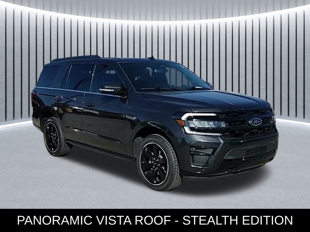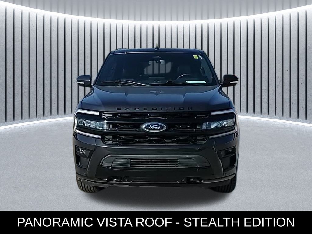 CARFAX One-Owner. Odometer is 5349 miles below market average! ** Clean Carfax 1-Owner Accident Free History, ** Apple CarPlay/Android Auto, ** Adaptive Cruise Control, ** Automatic Emergency Braking, ** Blind Spot Monitor, ** Cross Traffic Alert, ** Alloy Wheels / Premium Wheels, ** Heated Seats, ** Cooled Seats, ** Automatic Parking, ** Bluetooth, Hands Free, ** Brake Assist, ** Camera Backup, ** Chrome Wheels / Premium Wheels / Custome Whwels, ** Cruise Control, ** Heated Steering Wheel, ** Keyless Entry, ** Lane Departure Warning, ** Leather Seats, ** LED Headlights, ** Navigation System, ** Power Panoramic (Pano) Sunroof / Moonroof, ** Premium Sound System / Premium Audio, ** Roof Rack, ** Stability Control, ** Steering Wheel Controls, ** Sunroof/Moonroof, ** Third Row Seating / 3rd Row Seating, ** Tow Hitch / Trailer Hitch, ** One Owner, ** Power Drivers Seat, ** Power Passenger Seat, STEALTH EDITION PACKAGE, PANORAMIC VISTA ROOF, RUN BOARDS, BLK-PWR DEPLOY, 15.5 LCD SCREEN W/TOUCH CAP, What Is the Stealth Edition Package? The Stealth Edition for the 2022 Expedition is not a standalone trimâ"it's an optional equipment group available exclusively on the Limited and Limited Max trims. There are two levels: Equipment Group 303A â" Stealth Edition Package (~$4,670) offers a bold blacked-out look and some sporty chassis tweaks without altering engine performance. Equipment Group 304A â" Stealth Performance Package (~$9,540â"$9,880) builds upon the visual upgrades and adds a power boost, upgraded suspension, sound system, and performance enhancements., Exterior & Appearance Upgrades Gloss-black styling including grille, mirror caps, roof rails, running boards, tailgate applique, fog lamp and head/tailâlamp bezels Black âExpeditionâ and âLimitedâ badging plus black Ford ovals 22âinch premium black aluminum wheels, Performance Highlights: 0â"60 mph in 4.9 seconds, quarter-mile in 13.7 seconds @ 101 mph Towing capability remains strongâ"over 9,000 lbs when properly equipped, Interior Enhancements & Tech All-black leather cabin with bold red contrast stitching Sport-style center console Bang & Olufsen Unleashed 22âspeaker sound system with subwoofer (Performance package only) Optional: 15.5âinch vertical SYNC 4A touchscreen and 12âinch digital instrument cluster (otherwise comes with standard SYNC 4), Expedition Limited PANORAMIC VISTA, 4D Sport Utility, EcoBoost 3.5L V6 GTDi DOHC 24V Twin Turbocharged, 10-Speed Automatic, 4WD, Dark Matter Metallic, Black Onyx w/Heated/Ventilated Leather Front Captains Chairs, 1st & 2nd Row Floor Mats w/Logo, Equipment Group 303A Stealth Package, Navigation System, Navigation system: Connected Navigation, Panoramic Vista Roof, Power-Folding Sideview Mirrors w/Autofold, Stealth Edition Package.