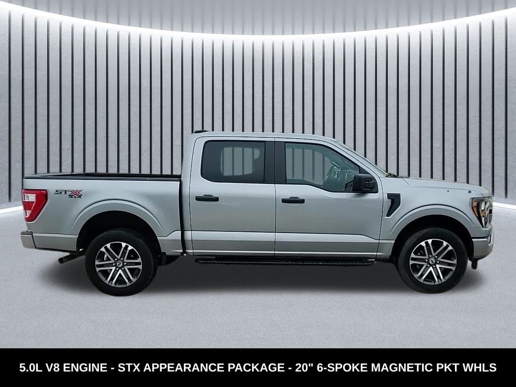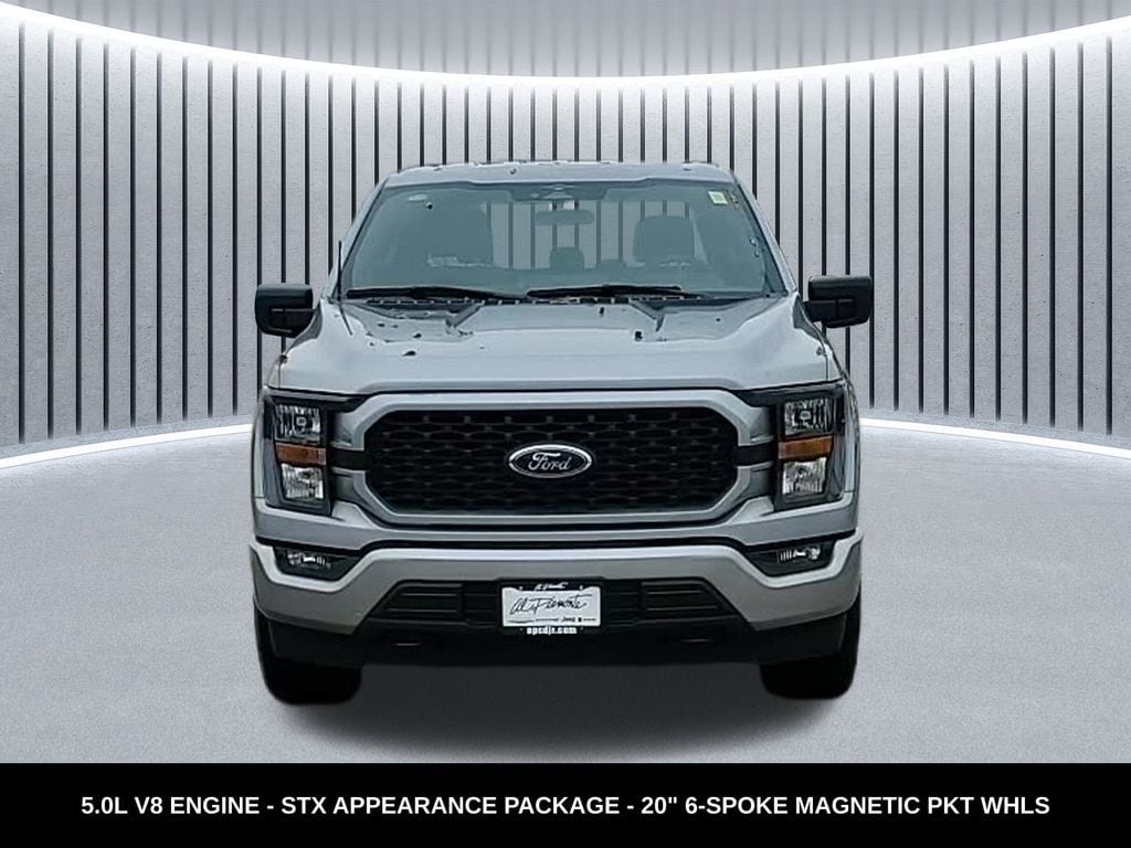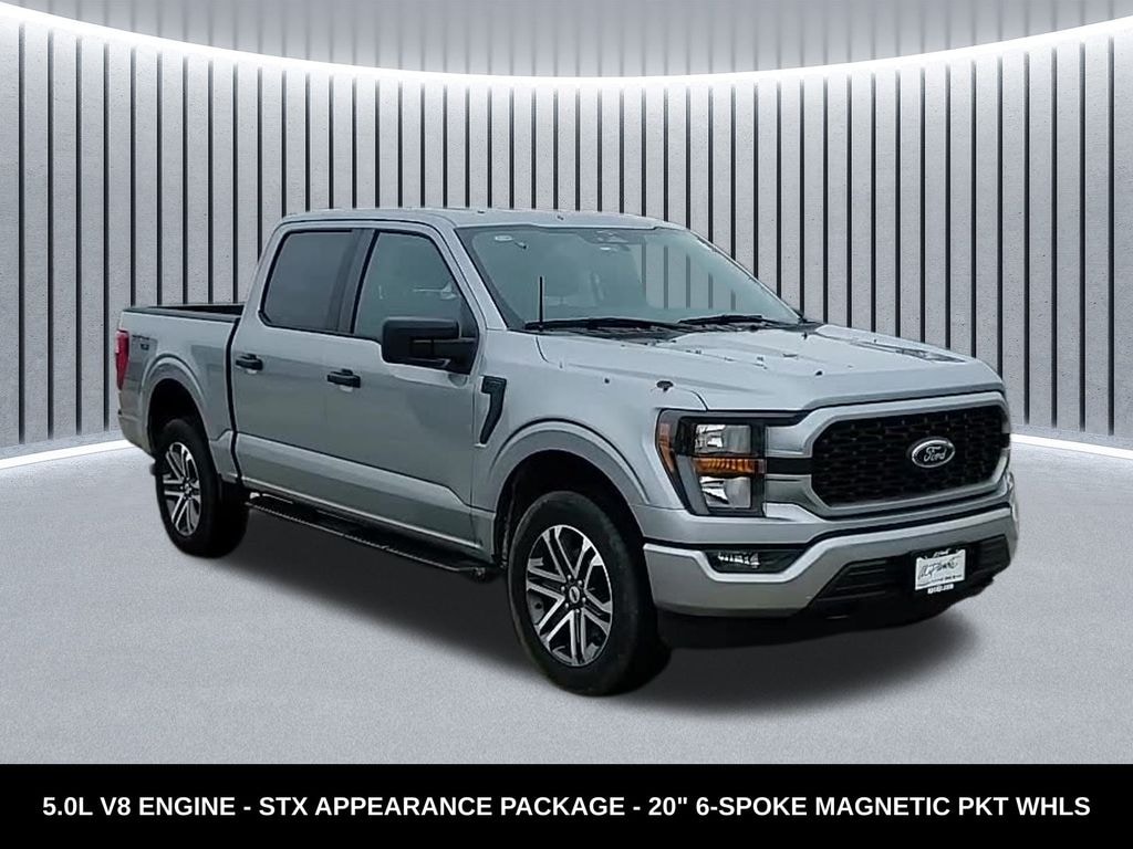 CARFAX One-Owner. Clean CARFAX. Odometer is 12169 miles below market average! ** Clean Carfax 1-Owner Accident Free History, ** Apple CarPlay/Android Auto, ** Alloy Wheels / Premium Wheels, ** Bluetooth, Hands Free, ** Brake Assist, ** Camera Backup, ** Cruise Control, ** Keyless Entry, ** Premium Sound System / Premium Audio, ** Stability Control, ** Steering Wheel Controls, ** USB Port, ** Clean Carfax Accident Free History, ** One Owner, STX APPEARANCE PACKAGE, BLACK PLATFORM RUNNING BOARDS, 20" 6-SPOKE MAGNETIC PKT WHLS, 20" 6-SPOKE MAGNETIC PKT WHLS, Key Specs & Features Engine: 5.0 L Ti-VCT naturally-aspirated V8 producing approximately 400 horsepower and 410 lb-ft of torque. Sid Dillon Ford Crete +2 Ford Authority +2 Transmission: 10-speed automatic. Ford Authority +1 Drivetrain: 4WD available. The 5.0L V8 is available for 4WD models. Sid Dillon Ford Crete +1 Fuel economy (approx): For the 5.0L V8 in 4WD, estimated about 16 mpg city / 22 mpg highway. J.D. Power +1 Towing / payload: The capability will vary depending on configuration (box size, cab, axle, etc). For example, a spec sheet shows âXL Doble Cabina V8 4Ã4â with payload ~968 kg (~2,134 lbs) in one region. Ford Mexico Appearance package: The âSTX Appearanceâ and/or âSport Appearanceâ or âAppearance Packageâ options enhance exterior styling (wheels, trim) but do not fundamentally alter the drivetrain. For example, one spec sheet shows âXLT Sport Appearance packageâ listed., What I Like (Strengths) Strong V8 power: The 5.0L V8 gives you real muscle, which is great if you tow, haul, or just want that V8 feel. Modern truck tech: Being a 2023 model, it benefits from the current generationâs features (strong frame, modern electronics, etc). Upgradable & flexible: With the STX/Appearance package you get nicer looks while still on a work-oriented trim (XL), so cost can be balanced between function and form. Good for towing/hauling: With proper configuration, this truck has serious capability â" the V8 and 4WD help in tougher conditions. Resale value + brand strength: The F-150 line has strong name recognition, and a well-equipped 2023 version should hold value relatively well., F-150 XL 5.0L V8, 4D SuperCrew, 5.0L V8, 10-Speed Automatic, 4WD, Iconic Silver Metallic, Black Cloth, Body-Color Front & Rear Bumpers, Box Side Decals, Class IV Trailer Hitch Receiver, Equipment Group 101A Standard, Integrated Trailer Brake Controller, Molded-In Color Black Honeycomb Style Grille, Rear Window Fixed Privacy Glass w/Defroster, STX Appearance Package, SYNC 4 w/Enhanced Voice Recognition, Trailer Tow Package, Unique Sport Cloth 40/20/40 Front-Seats, Wheels: 18" 6-Spoke Machined Aluminum.