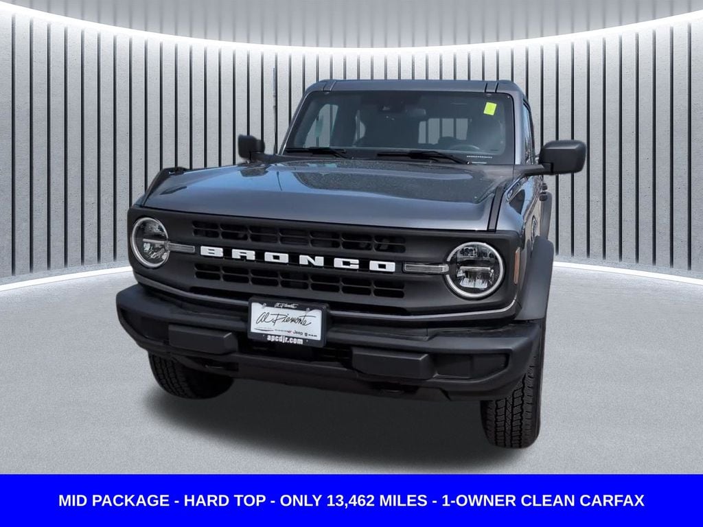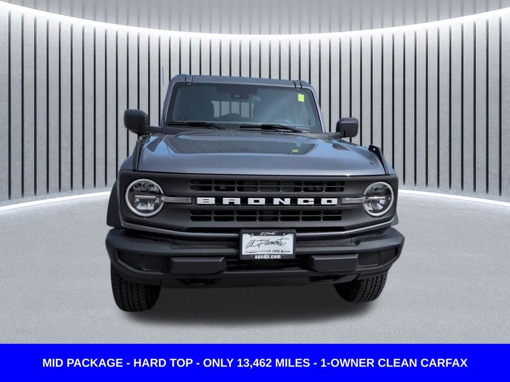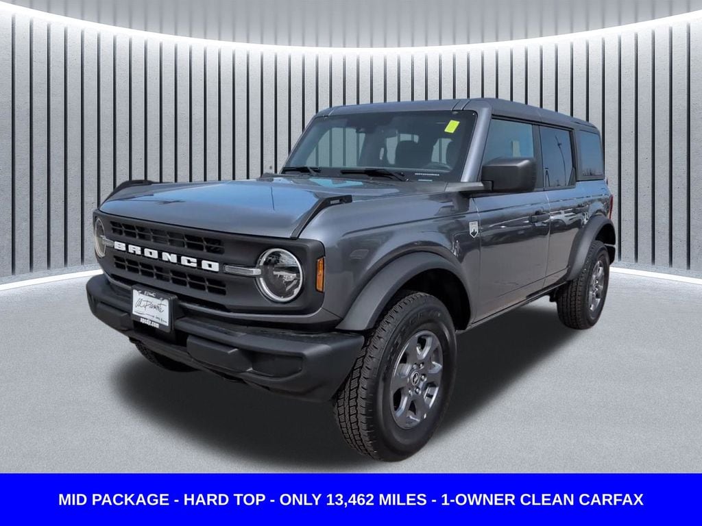 CARFAX One-Owner. Odometer is 1677 miles below market average! ** Clean Carfax 1-Owner Accident Free History, ** Apple CarPlay/Android Auto, ** Adaptive Cruise Control, ** Blind Spot Monitor, ** Cross Traffic Alert, ** Alloy Wheels / Premium Wheels, ** Heated Seats, ** Bluetooth, Hands Free, ** Brake Assist, ** Camera Backup, ** Chrome Wheels / Premium Wheels / Custome Whwels, ** Cruise Control, ** Heated Steering Wheel, ** Keyless Entry, ** LED Headlights, ** Premium Sound System / Premium Audio, ** Stability Control, ** Steering Wheel Controls, ** USB Port, ** Clean Carfax Accident Free History, ** One Owner, 3.73/REAR AXLE-OPEN DIFF, 17" GREY-PNTD ALUM WHEELS, HARD TOP, MOULDED-IN-COLOUR, Powertrain & Capability Standard 4WD system (4Ã4 drivetrain). Typically powered by a 2.3L EcoBoost turbocharged inline-4 engine. Transmission choices include a 7-speed manual or an optional 10-speed automatic (auto is often recommended if you want remote start and some features). ð§° Mid Package (Equipment Group 222A) â" Whatâs Included This is the core package you asked about â" the Mid Package â" and it includes: â"ï¸ Comfort & Convenience Dual-Zone Electronic Automatic Temperature Control (AC) Front Row Heated Seats Illuminated Sliding Visor Vanity Mirrors (Driver & Passenger) Power Outlet (rear of center console) Rear Parking Sensors Remote Start (only with automatic transmission) â"ï¸ Technology Connected Navigation with 1-year subscription (live traffic, route guidance) Pinch-to-zoom map capabilities, predictive destinations, One Box search Often paired with a large touchscreen and SYNC connectivity â"ï¸ Safety & Driver-Assistance (Ford Co-Pilot360) Auto High-Beam Headlamps Blind Spot Information System (BLIS) with Cross-Traffic Alert Lane Keeping System, Bronco Big Bend 4WD, 4D Sport Utility, 2.3L EcoBoost I-4, 10-Speed Automatic, 4WD, Grey, Smoked Truffle Seats Cloth, 2-Door Intelligent Access w/Lock/Unlock, Ambient Footwell Lighting, Connected Navigation, Dr & Pass Illuminated Sliding Visor Vanity Mirrors, Dual Smart Charging USB Ports, Dual-Zone Electronic Automatic Temperature Control, Equipment Group 222A Mid Package, Front Row Heated Seats, Power Outlet - Back Side of Center Floor Console, Rear Parking Sensors.