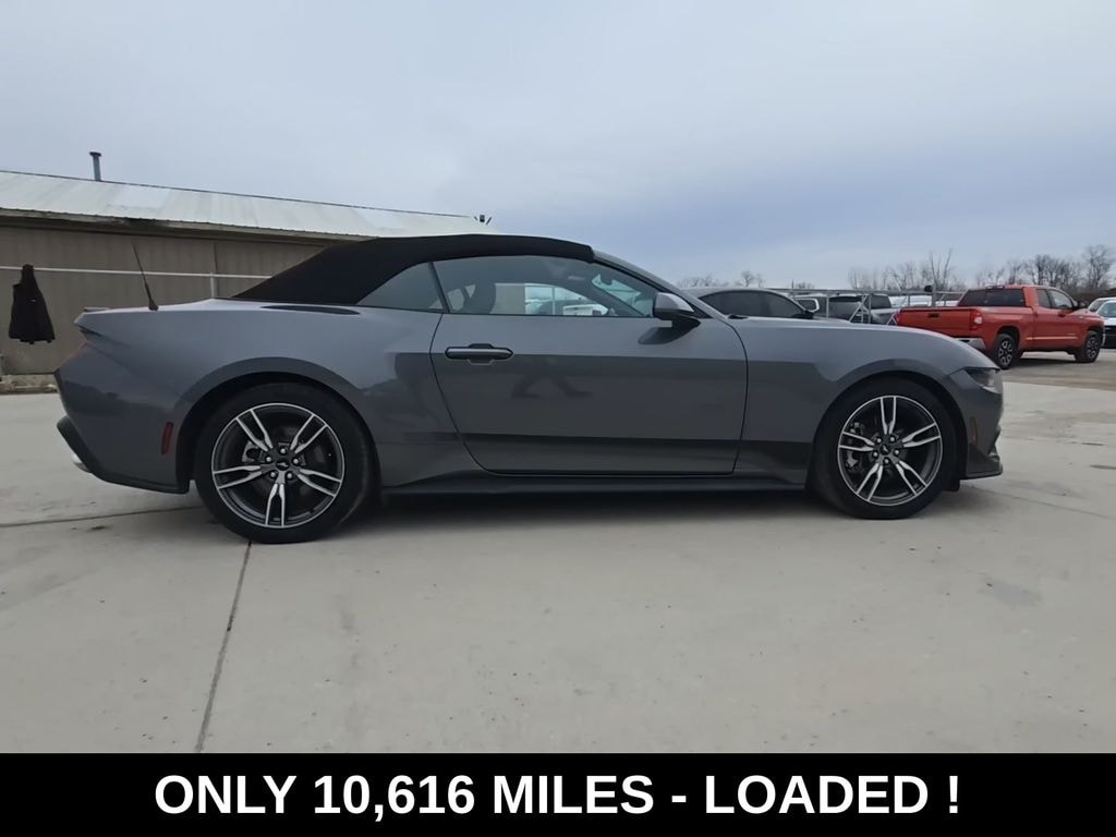 Clean CARFAX. ** Apple CarPlay/Android Auto, ** Adaptive Cruise Control, ** Alloy Wheels / Premium Wheels, ** Heated Seats, ** Bluetooth, Hands Free, ** Brake Assist, ** Camera Backup, ** Chrome Wheels / Premium Wheels / Custome Whwels, ** Cruise Control, ** Heated Steering Wheel, ** Keyless Entry, ** Lane Departure Warning, ** Leather Seats, ** LED Headlights, ** Premium Sound System / Premium Audio, ** Stability Control, ** Steering Wheel Controls, ** USB Port, ** Power Drivers Seat, WHEEL & STRIPE PACKAGE, 19 MCHD AL W/TRNSHD DK-PTD PK, Convertible, Engine Engine: 2.3 L turbocharged EcoBoost 4-cylinder. Horsepower: ~315 hp at 5,000 rpm. Torque: ~350 lb-ft at 3,000 rpm. Drivetrain: Rear-wheel drive (RWD). ð Performance & Efficiency Fuel Economy (EPA est.): ~20 mpg city / 28 mpg highway / ~24 mpg combined. Automatic transmission includes selectable drive modes to optimize shifting behavior for Normal, Sport, Track, etc., Summary: 2025 Mustang EcoBoost Premium Convertible (Auto) Engine: 2.3 L EcoBoost Turbo-4 turbocharged engine. Transmission: 10-Speed Automatic (SelectShift) standard â" no manual offered. Power: ~315 hp / 350 lb-ft torque. Drive: Rear-wheel drive. Fuel Economy: ~20/28 mpg (city/highway)., Mustang EcoBoost Premium Convertible, 2D Convertible, EcoBoost 2.3L I4 GTDi DOHC Turbocharged VCT, 10-Speed Automatic, RWD, Carbonized Gray Metallic, Black Onyx w/Leather-Trimmed Bucket Seats, Active Anti-Theft System, Equipment Group 200A Standard Package, Locking Center Console, Security Package, Wheel Locking Kit.
