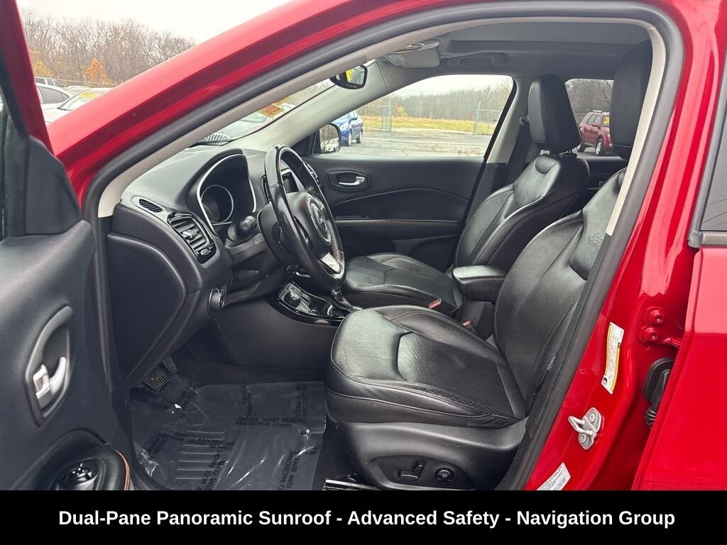 Clean CARFAX. ** Apple CarPlay/Android Auto, ** Alloy Wheels / Premium Wheels, ** Heated Seats, ** Bluetooth, Hands Free, ** Brake Assist, ** Camera Backup, ** Chrome Wheels / Premium Wheels / Custome Whwels, ** Cruise Control, ** Heated Steering Wheel, ** Keyless Entry, ** Lane Departure Warning, ** Leather Seats, ** Navigation System, ** Premium Sound System / Premium Audio, ** Roof Rack, ** Stability Control, ** Steering Wheel Controls, ** Sunroof/Moonroof, ** USB Port, ** Clean Carfax Accident Free History, ** Power Drivers Seat, 4WD, 4X4, Uconnect® 4C NAV with 8.4-Inch Display, CommandView® Dual-Pane Panoramic Sunroof, BeatsTM Premium Audio System, 19" x 7.5" Polished Black Pocket Aluminum Wheels, Panoramic Roof / Sunroof On the Limited, the panoramic roof usually refers to a dual-pane panoramic sunroof â" a large glass roof panel that lets in light and can open (with a power shade for coverage). Stellantis Fleet +1 This feature is often an option, not necessarily standard on every Limited, but commonly included on well-equipped examples. Allpar ðª Panoramic Sunroof â" What It Is Dual-pane design: Two wide glass panels, front tilts/ slides open, rear is fixed. Stellantis Fleet Adds more daylight and a sense of openness vs. a traditional moonroof. CarsDirect Usually comes with a power retractable shade to block sun when you donât want light., Engine & Drivetrain 2.4 L I4 engine paired with a 9-speed automatic. Dealer Pictures Full-time 4WD system for better traction. BMW of McKinney Exterior / Appearance 18-inch aluminum wheels (typical), possibly polished with gloss accents. Dealer Pictures Gloss black roof accents often paired with the panoramic roof. Allpar Comfort & Interior Leather-trimmed seats and premium interior touches commonly included on Limited, New Compass Limited Panoramic Roof, 4D Sport Utility, 2.4L I4 MultiAir, 9-Speed Automatic, 4WD, Redline Pearlcoat, Black Leather, 1-Year SiriusXM Guardian Trial, 5-Year SiriusXM Traffic Service, 5-Year SiriusXM Travel Link Service, 7 & 4 Pin Wiring Harness, Advanced Brake Assist, Advanced Safety & Lighting Group, Auto High Beam Headlamp Control, Bi-Xenon HID Headlamps w/LED Signature, Blind Spot & Cross Path Detection, Class III Receiver Hitch, For Details Visit DriveUconnect.com, Full Speed FWD Collision Warn Plus, GPS Navigation, HD Radio, Lane Departure Warning Plus, LED Taillamps, Navigation Group, Navigation System, ParkSense Rear Park Assist System, Quick Order Package 2XG, Radio: Uconnect 4C Nav w/8.4" Display, Rain Sensitive/Intermittent Wipers, Safe & Security Group, SiriusXM Traffic Plus, SiriusXM Travel Link, Trailer Tow Group.