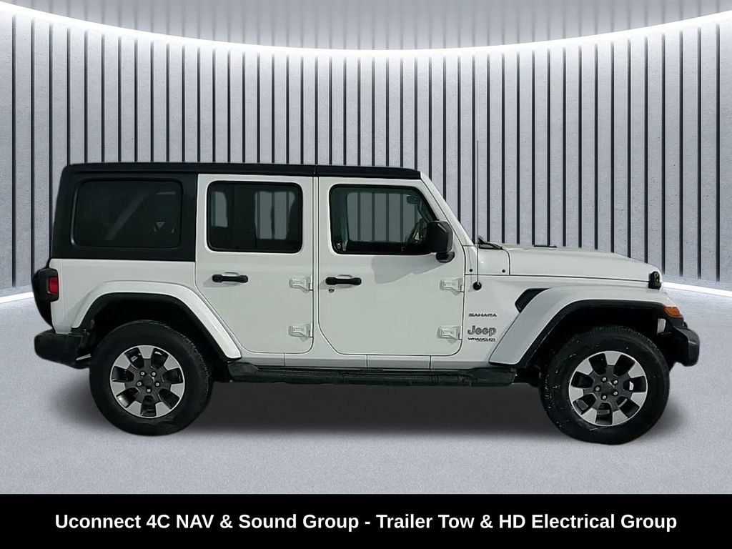 Clean CARFAX. ** Apple CarPlay/Android Auto, ** Alloy Wheels / Premium Wheels, ** Bluetooth, Hands Free, ** Brake Assist, ** Camera Backup, ** Chrome Wheels / Premium Wheels / Custome Whwels, ** Cruise Control, ** Keyless Entry, ** LED Headlights, ** Navigation System, ** Premium Sound System / Premium Audio, ** Stability Control, ** Steering Wheel Controls, ** Tow Hitch / Trailer Hitch, ** USB Port, ** Clean Carfax Accident Free History, 4WD, 4X4, 2.0L I4 DOHC, Trailer Tow & HD Electrical Group, Uconnect 4C NAV & Sound Group, 8â"speed TorqueFlite automatic transmission, 18x7.5â"inch Tech Grey machined face whee, Engine & Performance Engine: 2.0-liter turbocharged inline-4 (DOHC, direct injection) Amazon Web Services, Inc. +1 Horsepower: ~270 hp @ 5,250 rpm JL Wrangler Forums Torque: ~295 lb-ft @ 3,000 rpm JL Wrangler Forums Transmission: 8-speed automatic Amazon Web Services, Inc. Drive: 4-wheel drive standard, EPA (estimated) City/Highway/Combined: ~21/24/~22 mpg for 4-door auto with the 2.0L turbo JL Wrangler Forums Towing Capacity: Up to 3,500 lbs (when properly equipped) JL Wrangler Forums Payload: ~880 lbs (varies by configuration) Edmunds Real-world mileage reports vary, with many owners posting around 17â"22 mpg in mixed driving depending on speed, load and conditions. Reddit, Wrangler Unlimited Sahara 4WD, 4D Sport Utility, 2.0L I4 DOHC, 8-Speed Automatic, 4WD, Bright White Clearcoat, Black Cloth, 1-Year SiriusXM Guardian Trial, 240 Amp Alternator, 4G LTE Wi-Fi Hot Spot, 5-Year SiriusXM Traffic Service, 5-Year SiriusXM Travel Link Service, 7 & 4 Pin Wiring Harness, 700 Amp Maintenance Free Battery, 8.4" Radio & Premium Audio Group, 8.4" Touchscreen Display, Alpine Premium Audio System, Auto-Dimming Rear-View Mirror, Auxiliary Switches, Body Color 3-Piece Hard Top, Class II Receiver Hitch, Emergency/Assistance Call, For Details, Visit DriveUconnect.com, GPS Navigation, HD Radio, Navigation System, Quick Order Package 22G, Radio: Uconnect 4C Nav w/8.4" Display, SiriusXM Traffic Plus, SiriusXM Travel Link, Trailer Tow & HD Electrical Group.