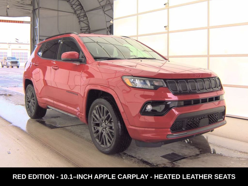 CARFAX One-Owner. Clean CARFAX. ** Clean Carfax 1-Owner Accident Free History, ** Apple CarPlay/Android Auto, ** Adaptive Cruise Control, ** Blind Spot Monitor, ** Cross Traffic Alert, ** Alloy Wheels / Premium Wheels, ** Heated Seats, ** Bluetooth, Hands Free, ** Brake Assist, ** Camera Backup, ** Chrome Wheels / Premium Wheels / Custome Whwels, ** Cruise Control, ** Heated Steering Wheel, ** Keyless Entry, ** Lane Departure Warning, ** Leather Seats, ** LED Headlights, ** Premium Sound System / Premium Audio, ** Roof Rack, ** Stability Control, ** Steering Wheel Controls, ** USB Port, ** Clean Carfax Accident Free History, ** One Owner, ** Power Drivers Seat, 4wd, 4x4, The (RED) Edition of the 2022 Jeep Compass is a special edition model based on the Limited trim and includes unique styling along with the General features of the Compass Limited. It was released as part of Jeepâs partnership with the (RED) campaign, which supports global health causes. ð¨ Exterior & Styling Exclusive Redline Pearl-Coat paint with body-color roof and lower cladding â" standout red finish. 19-inch alloy wheels with painted finish. Unique (RED) badging and design cues. This edition visually elevates the Compass beyond the standard Limited with distinctive color and trim choices., Interior Features Black leather-trimmed bucket seats (often with contrast stitching) â" premium feel. Uconnect 5 infotainment system with 10.1â²â² touchscreen â" large, responsive interface. Many listings also show features like heated front seats, heated steering wheel, dual-zone climate control, and remote start on 4WD examples. Optional packages on some (RED) models can include things like sunroof, premium sound, and parking assist systems depending on the dealer or original build options. ð ï¸ Performance & Capability Engine: 2.4 L inline-4 gasoline engine. Transmission: 9-speed automatic (AutoStick). Drive: Four-wheel drive (4WD/AWD) with Jeepâs Selec-Terrain traction system (Auto, Snow, Sand/Mud). Fuel Efficiency: Approximately 22 city / 30 highway MPG in 4WD form., Compass Limited RED EDITION, 4D Sport Utility, 2.4L I4, 9-Speed 948TE Automatic, 4WD, Redline Pearlcoat, Black w/Leather Trimmed Bucket Seats, (RED) Edition, (RED) Package, 10.1" Touchscreen Display, 115V Auxiliary Power Outlet, 2nd Row Heated Seats, 2nd Row USB Type A/C Charge Only, 4G LTE Wi-Fi Hot Spot, ABS brakes, Active Cruise Control, Alexa Built-In, Alloy wheels, Altitude Package, Black Headliner, Body Color Door Claddings, Body Color Exterior Mirrors, Body Color Exterior Sill Moldings, Body Color Fascias, Body Color Roof, Body Color Wheel Flares, Cluster 10.25" TFT Color Display, Compass, Connected Travel & Traffic Services, Disassociated Touchscreen Display, Driver Seat Memory, Electronic Stability Control, Foot Activated Open 'N Go Liftgate, For Details, Visit DriveUconnect.com, For More Info, Call 800-643-2112, Front dual zone A/C, Global Telematics Box Module (TBM), Gloss Black Surround/Neutral Gray Rings, GPS Navigation, Gray Day Light Opening Moldings, HD Radio, Heated door mirrors, Heated front seats, Highway Assist System, Illuminated entry, Integrated Voice Command w/Bluetooth, LED Low/Highbeam Projector Headlamps, Low tire pressure warning, Neutral Gray Exterior Accents, Neutral Gray Side Roof Rails, No Satellite Coverage HI/AK/PR/VI/GU, P&P Park & Unpark Assist System, ParkSense Fr/Rr Park Assist System, ParkView Rear Back-Up Camera, Passenger door bin, Power 2-Way Passenger Lumbar Adjust, Power 8-Way Adjust Front Passenger Seat, Power Front/Fixed Rear Full Sunroof, Power Liftgate, Premium Alpine Speaker System, Premium Leather Trimmed Bucket Seats, Premium LED Fog Lamps, Premium Taillamps, Quick Order Package 2GR (RED) Edition, Radio: Uconnect 5 Nav w/10.1" Display, Red Exterior Badges, Remote keyless entry, Reversible Carpet/Vinyl Cargo Mat, SiriusXM Guardian - Included Trial (B), SiriusXM Radio Service, SiriusXM Satellite Radio, SiriusXM w/360L, Traction control, Tra