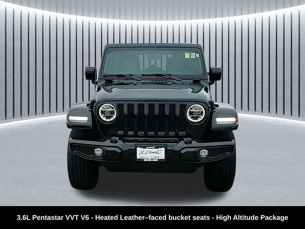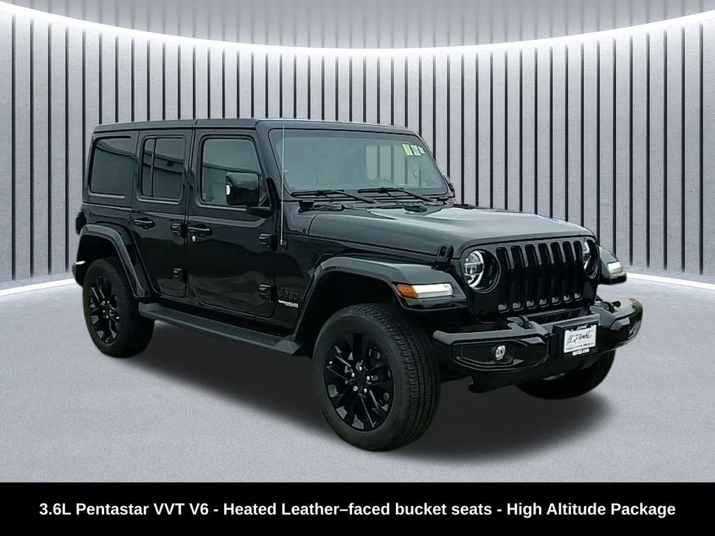 Clean CARFAX. Odometer is 20435 miles below market average! ** Apple CarPlay/Android Auto, ** Blind Spot Monitor, ** Cross Traffic Alert, ** Alloy Wheels / Premium Wheels, ** Heated Seats, ** Bluetooth, Hands Free, ** Brake Assist, ** Camera Backup, ** Chrome Wheels / Premium Wheels / Custome Whwels, ** Cruise Control, ** Heated Steering Wheel, ** Keyless Entry, ** Leather Seats, ** LED Headlights, ** Navigation System, ** Premium Sound System / Premium Audio, ** Stability Control, ** Steering Wheel Controls, ** USB Port, ** Clean Carfax Accident Free History, 4WD, 4X4, Uconnect 4C NAV with 8.4â"inch display, 3.6L V6 24V VVT, Leatherâ"faced bucket seat, High Altitude Package, Under the hood is the 3.6 L âPentastarâ V6: 285 horsepower and 260 lb-ft of torque (at 6,400/4,800 rpm) for 2022 Wranglers using that engine. Amazon Web Services, Inc. +2 Kbb.com +2 Itâs mated to a 4WD drivetrain (suitable 4-door âUnlimitedâ format) â" so you get 4-wheel drive capabilities, useful for off-road, snow, or rough terrain. Amazon Web Services, Inc. +2 Edmunds +2 Towing capacity is up to ~3,500 lbs (typical for 2022 Unlimited 4-door 3.6L models) â" enough for small trailers, small boats, or gear. Kbb.com +2 auto123.com +2 Fuel-economy estimates: around 21 mpg city / 24 mpg highway, or ~22 mpg combined under some conditions. Edmunds +2 Kbb.com +2 As a âHigh Altitudeâ trim, it usually includes more upscale or comfort-oriented touches compared to base â" often a nicer interior/package, though specifics depend on how it was optioned. Edmunds +1 Seating for 5, and cargo / rear-seat fold-down flexibility typical of 4-door âUnlimitedâ Wranglers â" a good balance of passenger + cargo space., Wrangler Unlimited Sahara High Altitude 3.6L Pentastar, 4D Sport Utility, 3.6L V6 24V VVT, 8-Speed Automatic, 4WD, Black Clearcoat, Steel Gray/Global Black w/Leather Trimmed Bucket Seats, 110 MPH Vehicle Max Speed Calibration, 3.73 Rear Axle Ratio, ABS brakes, Alloy wheels, Anti-Lock 4-Wheel FNC Disc Brakes, Body Color 3-Piece Hard Top, Body Color Door Handles, Body Color Front Bumper, Body Color Fuel Filler Door, Body Color Grille w/Gloss Black Rings, Body Color Rear Bumper w/Step Pads, Bridgestone Brand Tires, Caramel Interior Accents, Compass, Dana M210 Wide HD Tube Front Axle, Dana M220 Wide Rear Axle, Electronic Stability Control, Exterior Mirrors w/Supplemental Signals, Front dual zone A/C, Full Body Color Fender Flares, Gray/Black Trail Rated Badge, Heated door mirrors, High Altitude Package, Illuminated entry, Leather Trimmed Bucket Seats, Leather Wrapped Park Brake Handle, Leather Wrapped Shift Knob, LED Lighting Group, Low tire pressure warning, Navigation System, ParkView Rear Back-Up Camera, Premium Dark Exterior Accents, Quick Order Package 25N High Altitude, Remote keyless entry, Safety Group, Sport Suspension, Summit Badging, Traction control, Wheels: 20" x 8" Fully Painted Aluminum, Wrapped I/P Bezel w/Caramel Stitch.