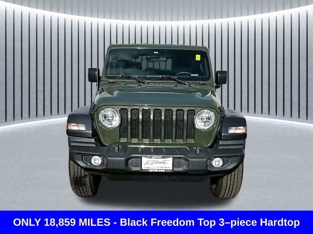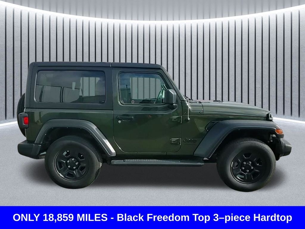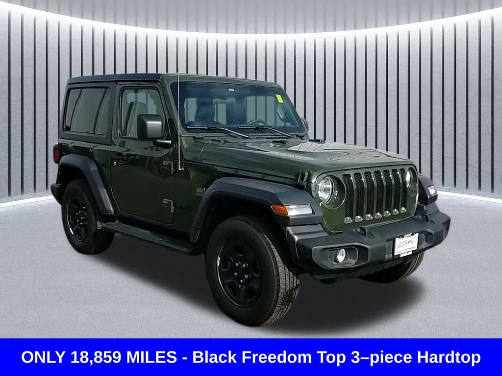 Odometer is 10723 miles below market average! ** Apple CarPlay/Android Auto, ** Alloy Wheels / Premium Wheels, ** Bluetooth, Hands Free, ** Brake Assist, ** Camera Backup, ** Chrome Wheels / Premium Wheels / Custome Whwels, ** Cruise Control, ** Keyless Entry, ** Premium Sound System / Premium Audio, ** Stability Control, ** Steering Wheel Controls, ** USB Port, 4WD, 4X4, Black Freedom Top 3â"piece modular hardtop, Dualâ"Zone A/C with manual temperature control, 2.0L DOHC Iâ"4 DI turbocharged engine w/ Stop/Start, Hereâs a summary of key information about the 2022 Jeep Wrangler Sport 4Ã4 2-Door with the 2.0L engine option â" the version with the 2.0-liter turbocharged 4-cylinder rather than the standard V6: ð 2022 Jeep Wrangler Sport 4Ã4 2-Door â" 2.0L Turbo I-4 (Overview) Engine & Performance Engine: 2.0 L Turbocharged I-4 with direct injection and Engine Stop-Start (ESS) technology Power: ~270 hp @ 5,250 rpm Torque: ~295 lb-ft @ ~3,000 rpm Transmission: Often paired with an 8-speed automatic (Autostick/manual-shift capable) Drivetrain: Part-time 4Ã4 system (Command-Trac) Towing Capacity: ~2,000 lb (typical for 2-door models) Fuel Economy EPA-estimated: approx. 22 mpg city / 24 mpg highway / ~23 mpg combined with the 2.0 L I-4 & automatic transmission (typical range seen in listings) (Actual can vary by gear ratio and equipment.) Dimensions & Capacity Body Style: 2-door SUV â" seating for up to 4 people Fuel Tank: ~17.5 gal Similar overall footprint to other Wrangler 2-door models, Wrangler Sport 4WD, 2D Sport Utility, 2.0L I4 DOHC, 8-Speed Automatic, 4WD, Sarge Green Clearcoat, Black Cloth, 8 Speakers, Quick Order Package 22B Sport.