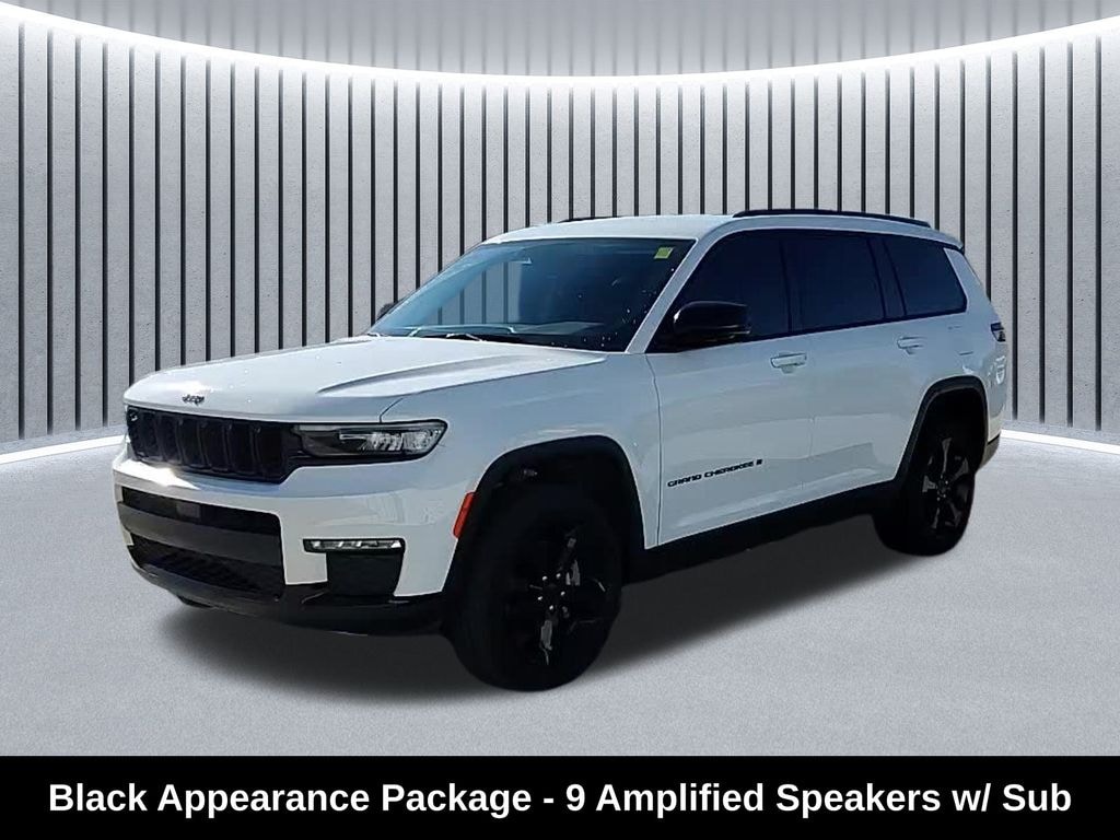 CARFAX One-Owner. ** Apple CarPlay/Android Auto, ** Adaptive Cruise Control, ** Blind Spot Monitor, ** Cross Traffic Alert, ** Alloy Wheels / Premium Wheels, ** Heated Seats, ** Bluetooth, Hands Free, ** Brake Assist, ** Camera Backup, ** Chrome Wheels / Premium Wheels / Custome Whwels, ** Cruise Control, ** Heated Steering Wheel, ** Keyless Entry, ** Lane Departure Warning, ** Leather Seats, ** LED Headlights, ** Navigation System, ** Premium Sound System / Premium Audio, ** Roof Rack, ** Stability Control, ** Steering Wheel Controls, ** Third Row Seating / 3rd Row Seating, ** USB Port, ** Power Drivers Seat, 4wd, 4x4, 20â"inch x 8.5â"Inch Glossâ"Black Painted Alum Wheels, Uconnect® 5 Nav with 10.1â"Inch Touch Screen Display, Black Appearance Package, Key Specs & Features Engine: 3.6 L V6 24V VVT with âUPG I w/ ESSâ (Stop/Start feature) zeiglerford.com +3 s3.amazonaws.com +3 windowsticker.carvana.io +3 Transmission: 8-Speed Automatic (8HP50) Drivetrain: 4WD (âQuadra-Trac Iâ or full-time 4WD depending on build) for the model referencing this. Package:, Package: Black Appearance Package â" includes 20â²â² à 8.5â²â² Gloss Black Painted Aluminum Wheels, 265/50R20 Performance All-Season tires, Gloss Black Exterior Accents, Molded-in-Color Black/Gloss Black Roof Rails. orlandododge.com +2 Paul Sherry Chrysler Dodge Jeep RAM +2 Other options mentioned: Luxury Tech Group II (which adds many comfort & tech features) Amazon Web Services, Inc. +2 zeiglerford.com +2 Fuel Economy (for reference): Some listings for this spec quote ~18/25 mpg city/highway. grangermotors.com +1 Seating: The âLâ version is the longer wheelbase/3-row version (so youâll have a third row) in many cases. One listing: 7-seats, 2nd row manual window shades etc, Grand Cherokee L Limited Black Appearance, 4D Sport Utility, 3.6L V6 24V VVT, 8-Speed Automatic, 4WD, Bright White Clearcoat, Global Black Artificial Leather, Black Appearance Package, Gloss Black Exterior Accents, Molded In Color Black/Gloss Black Roof Rails, Navigation System, Quick Order Package 23E, Wheels: 20" x 8.5" Gloss Black Painted Aluminum.