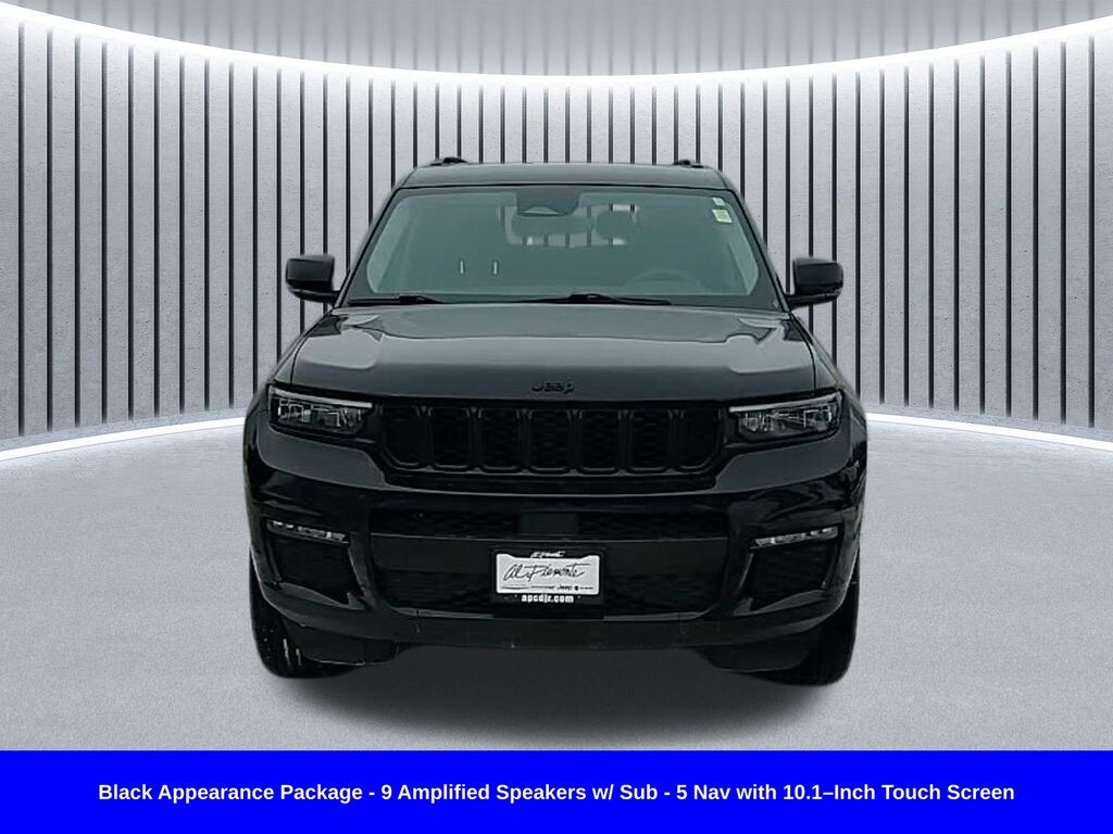 Odometer is 6558 miles below market average! ** Clean Carfax 1-Owner Accident Free History, ** Apple CarPlay/Android Auto, ** Adaptive Cruise Control, ** Blind Spot Monitor, ** Cross Traffic Alert, ** Alloy Wheels / Premium Wheels, ** Heated Seats, ** Bluetooth, Hands Free, ** Brake Assist, ** Camera Backup, ** Chrome Wheels / Premium Wheels / Custome Whwels, ** Cruise Control, ** Heated Steering Wheel, ** Keyless Entry, ** Lane Departure Warning, ** Leather Seats, ** LED Headlights, ** WiFi Hotspot, ** Navigation System, ** Premium Sound System / Premium Audio, ** Roof Rack, ** Stability Control, ** Steering Wheel Controls, ** Third Row Seating / 3rd Row Seating, ** USB Port, ** Clean Carfax Accident Free History, ** One Owner, ** Power Drivers Seat, ** Power Passenger Seat, ** Heated Rear Seats, 4wd, 4x4, Black Appearance Package, Uconnect® 5 Nav with 10.1â"Inch Touch Screen Display, 9 Amplified Speakers with Subwoofer, 3.6L V6 24V VVT, Ember Pearlcoat, 20â"inch x 8.5â"Inch Glossâ"Black Painted Alum Wheels, 2nd Row Buckets with Manual Easyâ"Entry Slide, Key Features & Specs â" 2023 Grand Cherokee L Limited (4WD) Powertrain / Performance Engine: 3.6 L V6, 24V, with Stop-Start (ESS) Sherry Chrysler +2 Granger Motors +2 Transmission: 8-speed automatic (850RE) Carvana Drivetrain: 4WD (Quadra-Trac I system) Carvana +1 Rear-axle ratio: 3.45 (in some versions) Sherry Chrysler Fuel Economy Reported: ~18 mpg city / 25 mpg highway for 4WD., Exterior / Appearance (Black Appearance Package) The Black Appearance Package gives the vehicle a more aggressive, darked-out look. It includes: 20â²â² x 8.5â²â² gloss black painted aluminum wheels Sherry Chrysler +1 Tires: 265/50R20 performance all-season Orlando Dodge Gloss black exterior accents (instead of chrome) Zeigler Honda Kalamazoo Molded-in-color black / gloss black roof rails, With the Luxury Tech Group II (often paired with the Black Package): Capri leatherette seats with âAxis IIâ inserts Sherry Chrysler Ventilated front seats metrojeep.com +1 Memory steering column Sherry Chrysler Passive entry system for doors + liftgate Sherry Chrysler Surround-view camera system + off-road camera Sherry Chrysler +1 Rain-sensing windshield wipers Sherry Chrysler +1 2nd-row manual window shades Sherry Chrysler Rearview auto-dimming mirror Sherry Chrysler Wireless phone charging pad Sherry Chrysler Power liftgate is standard on the Limited. Carvana 10.1-inch touchscreen infotainment system (for Limited) according to trim-level specs. Edmunds Safety / driver assistance: adaptive cruise control, lane management, forward collision warning, blind-spot detection, pedestrian/cyclist emergency braking, Grand Cherokee L Limited Black Appearance Package, 4D Sport Utility, 3.6L V6 24V VVT, 8-Speed Automatic, 4WD, Ember Pearlcoat, Global Black w/Nappa Leather Seats, Black Appearance Package, Gloss Black Exterior Accents, Molded In Color Black/Gloss Black Roof Rails, Navigation System, Quick Order Package 23E, Wheels: 20" x 8.5" Gloss Black Painted Aluminum.