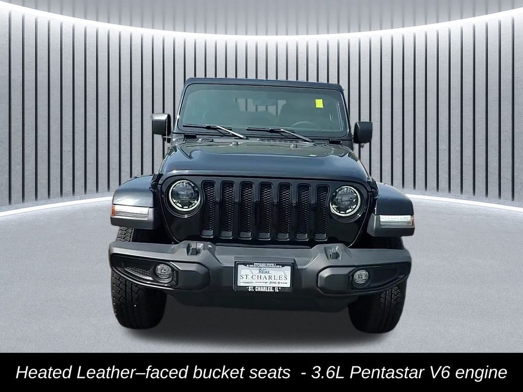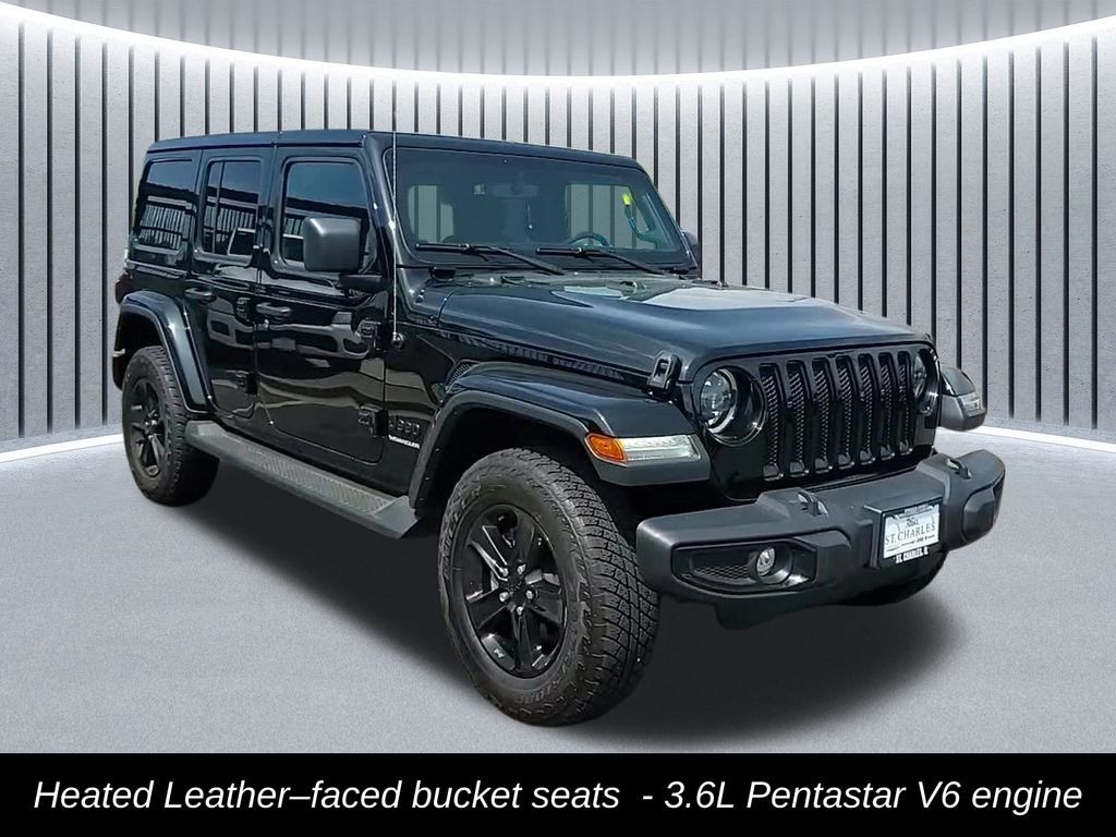 CARFAX One-Owner. Clean CARFAX. Odometer is 8119 miles below market average! ** Clean Carfax 1-Owner Accident Free History, ** Apple CarPlay/Android Auto, ** Alloy Wheels / Premium Wheels, ** Heated Seats, ** Bluetooth, Hands Free, ** Brake Assist, ** Camera Backup, ** Chrome Wheels / Premium Wheels / Custome Whwels, ** Cruise Control, ** Heated Steering Wheel, ** Keyless Entry, ** Leather Seats, ** LED Headlights, ** Premium Sound System / Premium Audio, ** Stability Control, ** Steering Wheel Controls, ** USB Port, ** Clean Carfax Accident Free History, Side steps with diamondâ"plate surface pattern, Engine & Performance This model packs a 3.6 L V6 (24V VVT eTorque) engine paired with an 8-speed automatic transmission swantyschryslerdodgejeep.com Cars.com . Output is rated at 285 hp and 260 lbâft of torque Group 1 Automotive Cars.com . Fuel economy is rated at about 17 mpg city / 23 mpg highway, with a combined estimate of around 20 mpg depending on configurations Group 1 Automotive swantyschryslerdodgejeep.com CarGurus ., Altitude Package Highlights: Exterior touches: Bodyâcolor three-piece hardtop, Gloss Black aluminum wheels, bodyâcolor grille with black accents, matte black Jeep badging, and Black Interior Accents. swantyschryslerdodgejeep.com Wow Woody's Cars.com Interior luxury: Leatherâtrimmed bucket seats, leather shift knob, and leatherâwrapped park brake handle Wow Woody's swantyschryslerdodgejeep.com . Additional Equipment (standard or available): Cold Weather Package: Includes heated front seats, heated steering wheel, and remote start, Wrangler Altitude 4WD, 4D Sport Utility, 3.6L V6 24V VVT, 8-Speed Automatic, 4WD, Black, Black, #1 Seat Foam Cushion, 110 MPH Vehicle Max Speed Calibration, ABS brakes, Alloy wheels, Altitude Package, Black Interior Accents, Body Color 3-Piece Hard Top, Body Color Grille w/Gloss Black Rings, Bridgestone Brand Tires, Cold Weather Group, Compass, Daytime Running Lamps LED Accents, Electronic Stability Control, Front dual zone A/C, Front LED Fog Lamps, Gray/Black Trail Rated Badge, Heated door mirrors, Heated Front Seats, Heated Steering Wheel, Illuminated entry, Leather Trimmed Bucket Seats (GL), Leather Wrapped Park Brake Handle, Leather Wrapped Shift Knob, LED Lighting Group, LED Premium Reflector Headlamps, LED Taillamps, Low tire pressure warning, Matte Black Jeep Badge, Mold In Color Bumper w/Gloss Black, MOPAR Hardtop Headliner, Navigation System, ParkView Rear Back-Up Camera, Quick Order Package 25L Altitude, Remote keyless entry, Remote Start System, Traction control, Wheels: 18" x 7.5" Gloss Black Aluminum, Wizard Black Instrument Panel Bezels.