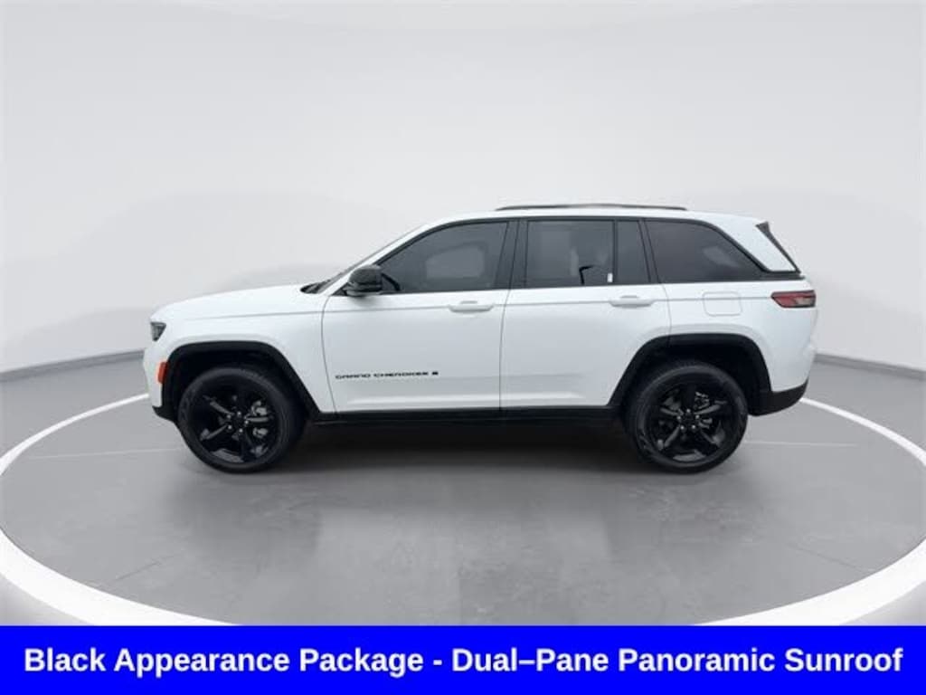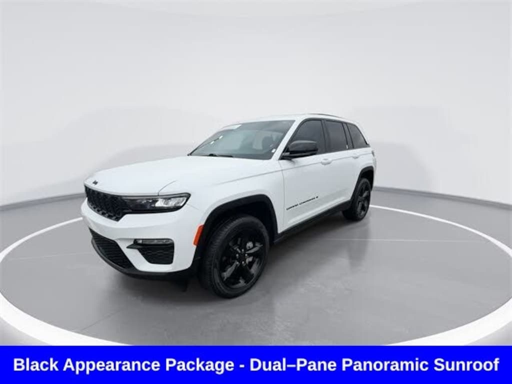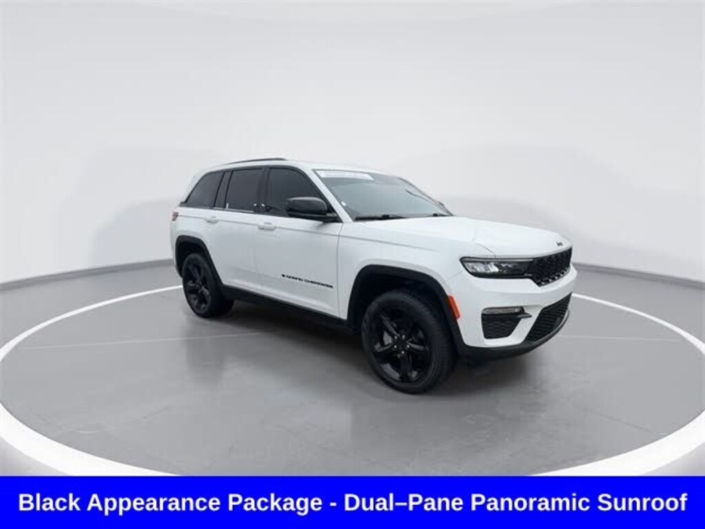 CARFAX One-Owner. Clean CARFAX. Odometer is 5247 miles below market average! ** Clean Carfax 1-Owner Accident Free History, ** Apple CarPlay/Android Auto, ** Adaptive Cruise Control, ** Blind Spot Monitor, ** Cross Traffic Alert, ** Alloy Wheels / Premium Wheels, ** Heated Seats, ** Bluetooth, Hands Free, ** Brake Assist, ** Camera Backup, ** Chrome Wheels / Premium Wheels / Custome Whwels, ** Cruise Control, ** Heated Steering Wheel, ** Keyless Entry, ** Lane Departure Warning, ** Leather Seats, ** LED Headlights, ** Navigation System, ** Power Panoramic (Pano) Sunroof / Moonroof, ** Premium Sound System / Premium Audio, ** Roof Rack, ** Stability Control, ** Steering Wheel Controls, ** Sunroof/Moonroof, ** USB Port, ** Power Drivers Seat, 4wd, 4x4, Uconnect® 5 Nav with 10.1â"Inch Touch Screen Display, Uconnect® 5 Nav with 10.1â"Inch Touch Screen Display, GPS Navigation, 20â"inch x 8.5â"Inch Glossâ"Black Painted Alum Wheels, Dualâ"Pane Panoramic Sunroof, Engine & Drivetrain 3.6 L V6 24-valve VVT engine with Electronic Stop/Start (ESS) â" ~293 hp. 4-wheel drive (Quadra-Trac I) system for traction in various conditions. 8-speed automatic transmission. Exterior & Appearance Black Appearance Package adds Gloss Black exterior accents and 20â²â² gloss black painted aluminum wheels with performance all-season tires. Monotone paint finish (often available in Black or other colors such as Bright White or Silver). Dual-Pane Panoramic Sunroof extends over both front and rear seats for an open-air feel. Interior & Comfort Leatherette or premium seating surfaces (often Capri Black interior). Dual-zone automatic climate control. Uconnect infotainment with a large touchscreen and integrated navigation on most versions. Heated front seats commonly included or available. Tech & Safety Blind Spot Monitoring with Rear Cross-Path Detection. ParkSense front/rear parking sensors and rear backup camera. Wireless Apple CarPlay and Android Auto (on many dealer listings). 4G LTE Wi-Fi hotspot in some configurations. Fuel Economy (estimated) Around 19 mpg city / 26 mpg highway, Grand Cherokee Limited, 4D Sport Utility, 3.6L V6 24V VVT, 8-Speed Automatic, 4WD, Bright White Clearcoat, Global Black Artificial Leather, Black Appearance Package, Gloss Black Exterior Accents, Navigation System, Quick Order Package 22E, Wheels: 20" x 8.5" Gloss Black Painted Aluminum.