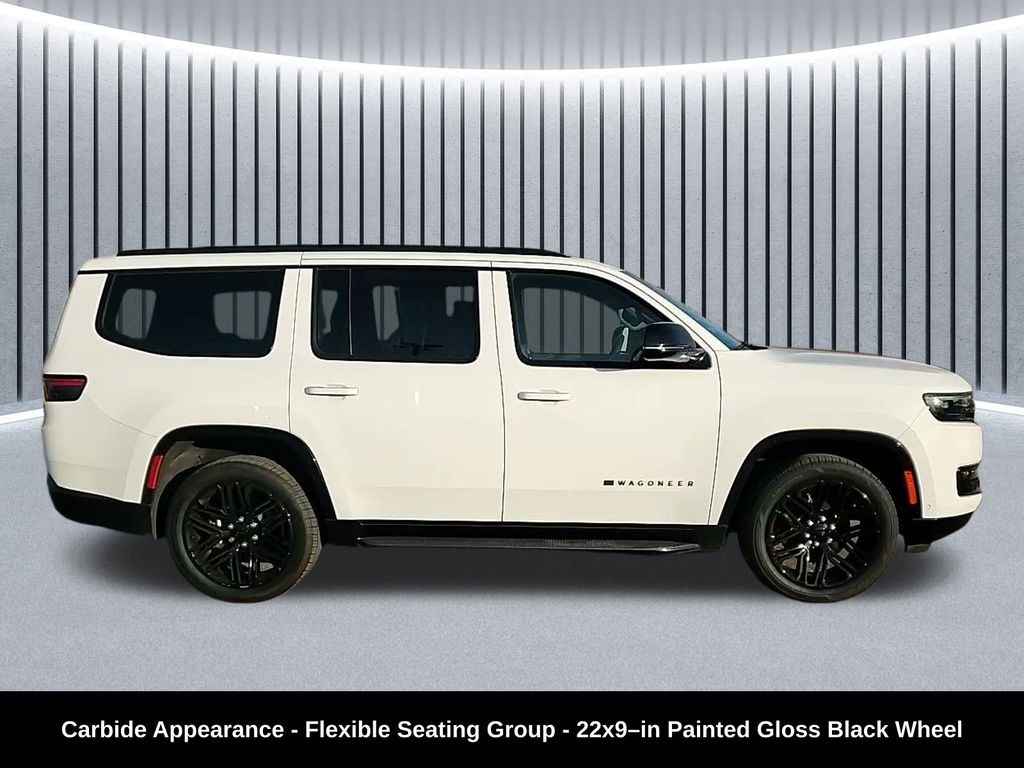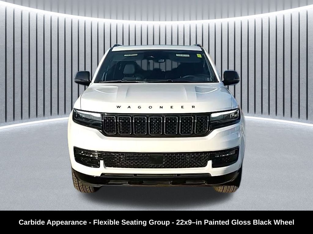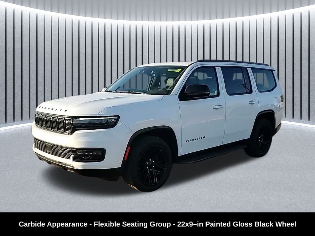 Clean CARFAX. Odometer is 725 miles below market average! ** Apple CarPlay/Android Auto, ** Adaptive Cruise Control, ** Blind Spot Monitor, ** Cross Traffic Alert, ** Alloy Wheels / Premium Wheels, ** Heated Seats, ** Cooled Seats, ** Bluetooth, Hands Free, ** Brake Assist, ** Camera Backup, ** Chrome Wheels / Premium Wheels / Custome Whwels, ** Cruise Control, ** Heated Steering Wheel, ** Keyless Entry, ** Lane Departure Warning, ** Leather Seats, ** LED Headlights, ** Memory Seat, ** Navigation System, ** Power Panoramic (Pano) Sunroof / Moonroof, ** Premium Sound System / Premium Audio, ** Roof Rack, ** Stability Control, ** Steering Wheel Controls, ** Sunroof/Moonroof, ** Third Row Seating / 3rd Row Seating, ** Tow Hitch / Trailer Hitch, ** USB Port, ** Power Drivers Seat, ** Power Passenger Seat, 4WD, 4X4, Front ventilated seat, Carbide Appearance Package, Three panel sunroof, Uconnect 5 NAV w/ 10.1â"inch display, 3rdâ"row power seat 60/40 recline, Engine & Drivetrain ⢠3.0L Hurricane Twin-Turbo I-6 engine (gasoline, around 420 hp with strong torque). Cars.com ⢠8-speed automatic transmission (8HP75) with full-time 4WD capability. Sid Dillon Series II Base Features ⢠Leather-trimmed seats, adaptive cruise control with Stop-and-Go, blind-spot monitoring, lane management. Sid Dillon ⢠Wireless charging, Uconnect 5 infotainment, and advanced safety tech. TrueCar Carbide Appearance Package Highlights ⢠Black-out styling & accents: dark exterior trim and accents including piano black touches. MotorTrend ⢠Gloss black wheels (typically 20â²â² gloss black; 22â²â² available). Edmunds ⢠Tri-pane panoramic sunroof for an open, airy cabin. MotorTrend ⢠Adjustable roof rail crossbars for cargo flexibility. MotorTrend ⢠Reversible cargo mats & cargo cover â" practical for gear hauling. MotorTrend ⢠Black interior accents for a sleeker cabin look., Wagoneer Series II Carbide Appearance, 4D Sport Utility, 3.0L I6, 8-Speed Automatic, 4WD, Bright White Clearcoat, Global Black w/Leather Trimmed Bucket Seats, 3 Panel Sunroof, 40/20/40 2nd Row Bench Power Tip/Slide, 60/40 Power Recline 3rd Row Seat, 8-Passenger Seating, Adjustable Roof Rail Crossbars, Black Interior Accents, Carbide Appearance Package, Cargo Cover, Flexible Seating Group, Full Length Floor Console, Navigation System, Piano Black Exterior Accents, Quick Order Package 25F Carbide, Reversible Carpet/Vinyl Cargo Mat, Wheels: 20" x 9" Gloss Black Painted Aluminum.