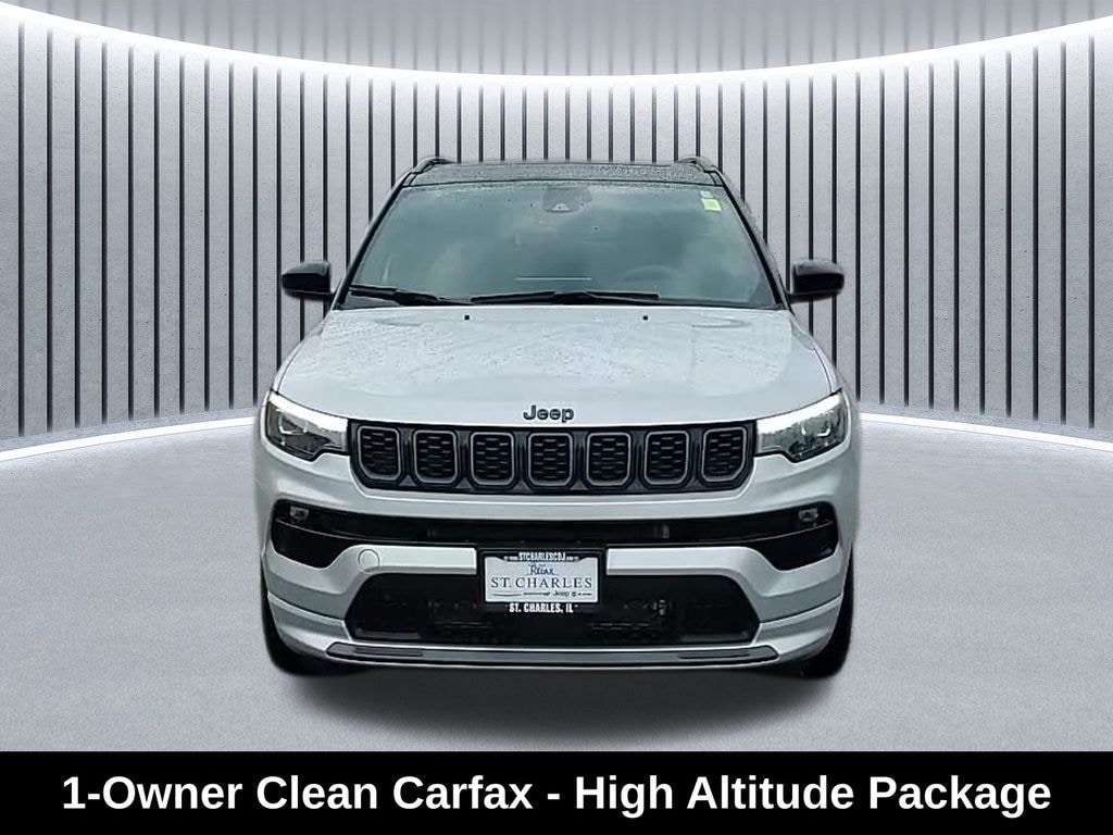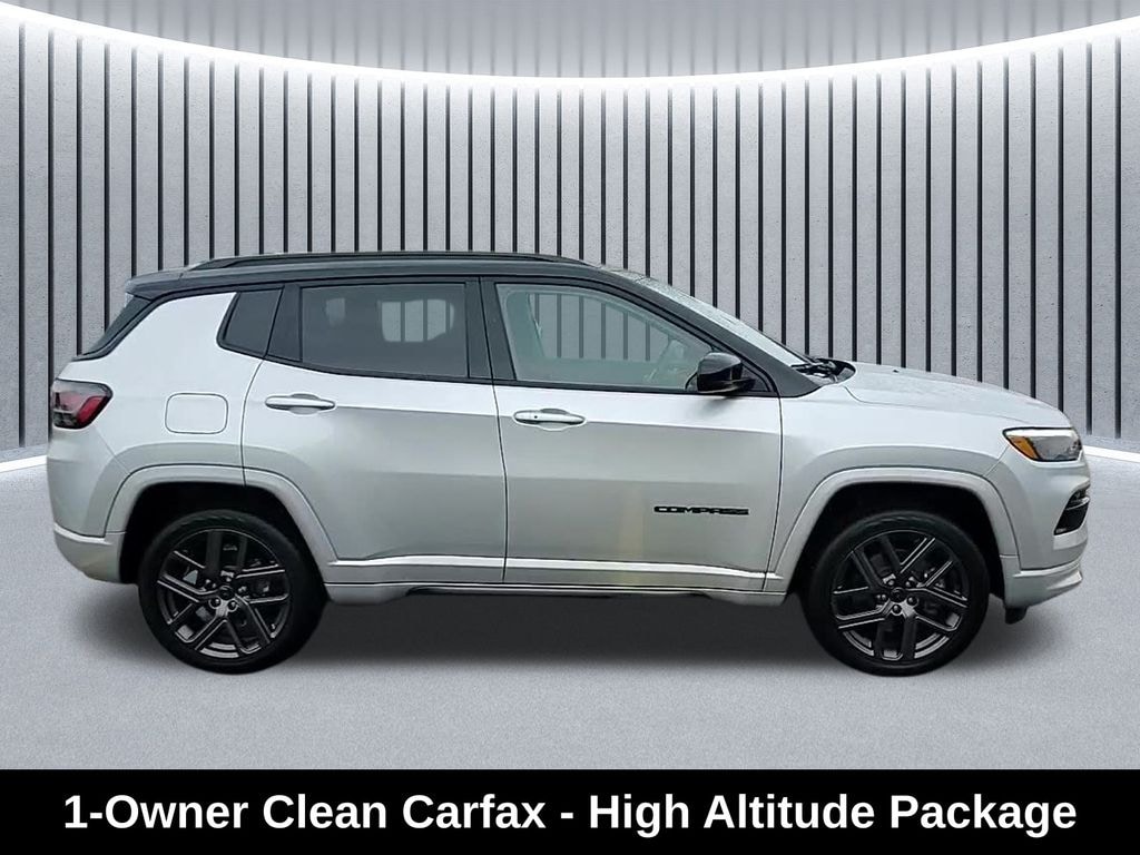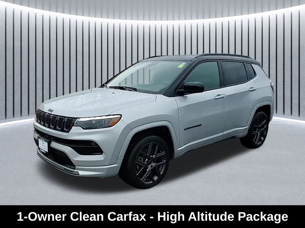 CARFAX One-Owner. Clean CARFAX. Odometer is 5520 miles below market average! ** Clean Carfax 1-Owner Accident Free History, ** Apple CarPlay/Android Auto, ** Adaptive Cruise Control, ** Blind Spot Monitor, ** Cross Traffic Alert, ** Alloy Wheels / Premium Wheels, ** Heated Seats, ** Bluetooth, Hands Free, ** Brake Assist, ** Camera Backup, ** Chrome Wheels / Premium Wheels / Custome Whwels, ** Cruise Control, ** Heated Steering Wheel, ** Keyless Entry, ** Lane Departure Warning, ** Leather Seats, ** Navigation System, ** Power Panoramic (Pano) Sunroof / Moonroof, ** Premium Sound System / Premium Audio, ** Roof Rack, ** Stability Control, ** Steering Wheel Controls, ** Sunroof/Moonroof, ** USB Port, ** Clean Carfax Accident Free History, ** One Owner, High Altitude Package, Uconnect® 5 Nav with 10.1â"Inch Touch Screen Display, Dualâ"Pane Panoramic Sunroof, Powertrain & Performance Engine: 2.0 L turbocharged inline-4 with Engine Stop/Start (ESS) technology. Output: Around 200 hp and 221 lb-ft torque. Transmission: 8-speed automatic (8F30) with AutoStick mode. Drivetrain: Full-time 4WD (Jeep Active Drive) system â" standard on most trims except special Trailhawk low-range models. Towing Capacity: About 2,000 lbs when properly equipped. This setup is tuned for balanced daily driving and light off-road capability, with selectable modes (like Snow, Sand/Mud) through the Selec-Terrain® system. â½ Fuel Economy & Efficiency Estimated EPA City / Highway: ~24 MPG city / 32 MPG highway (4WD). Fuel Tank: ~13.5 gallons. Thatâs fairly typical for a turbo 2.0 L AWD compact SUV â" reasonably efficient for both urban and highway driving., Compass High Altitude High Altitude Package, 4D Sport Utility, 2.0L I4 DOHC, 8-Speed Automatic, 4WD, Silver Zynith Metallic Clearcoat, Black Artificial Leather, 10.1" Touchscreen Display, ABS brakes, Active Cruise Control, Alexa Built-In, Alloy wheels, Altitude Package, Black Day Light Opening Moldings, Body Color Door Claddings, Body Color Exterior Sill Moldings, Body Color Fascias, Body Color Wheel Flares, Cluster 10.25" TFT Color Display, Compass, Connected Travel & Traffic Services, Electronic Stability Control, Front dual zone A/C, Gloss Black Surround/Neutral Gray Rings, GPS Navigation, HD Radio, Heated door mirrors, Heated front seats, High Altitude Package, Illuminated entry, Integrated Voice Command w/Bluetooth, LED Low/Highbeam Projector Headlamps, Liquid Chrome/Chainmail Hydro Accent, Low tire pressure warning, Navigation System, Neutral Gray Exterior Accents, Neutral Gray Exterior Badging, ParkView Rear Back-Up Camera, Passenger door bin, Power Front/Fixed Rear Full Sunroof, Premium Alpine Speaker System, Premium LED Fog Lamps, Premium Taillamps, Quick Order Package 29G, Remote keyless entry, SiriusXM w/360L, Sun & Sound Group, Traction control, Wheels: 19" x 7.5" Aluminum Painted.