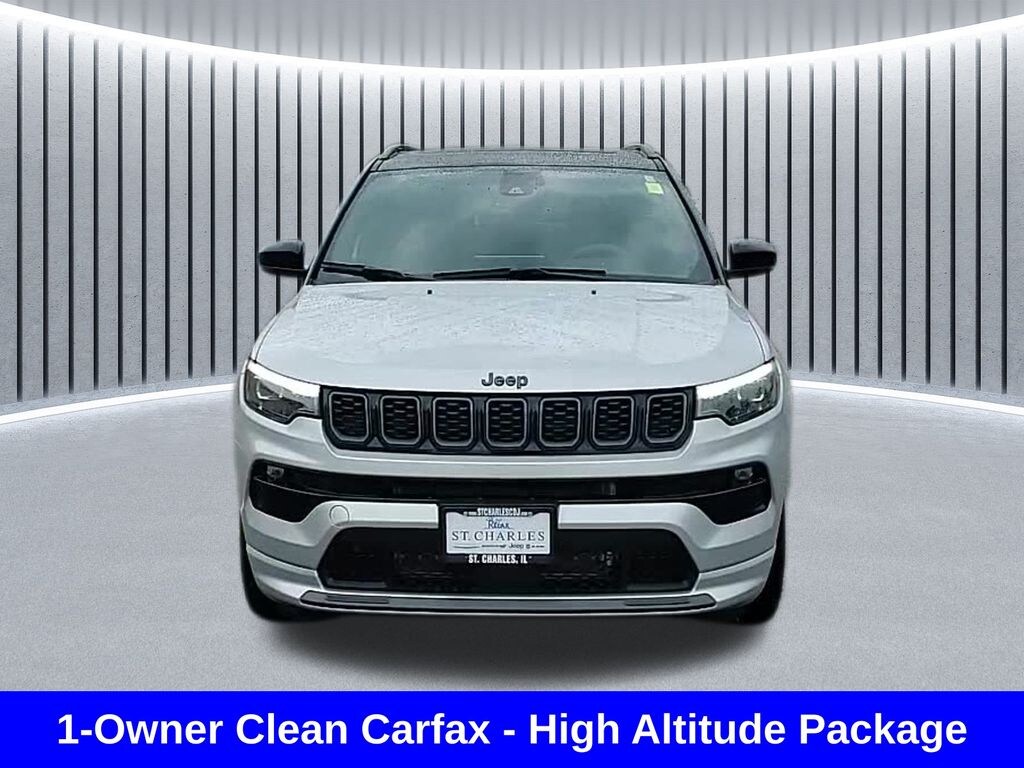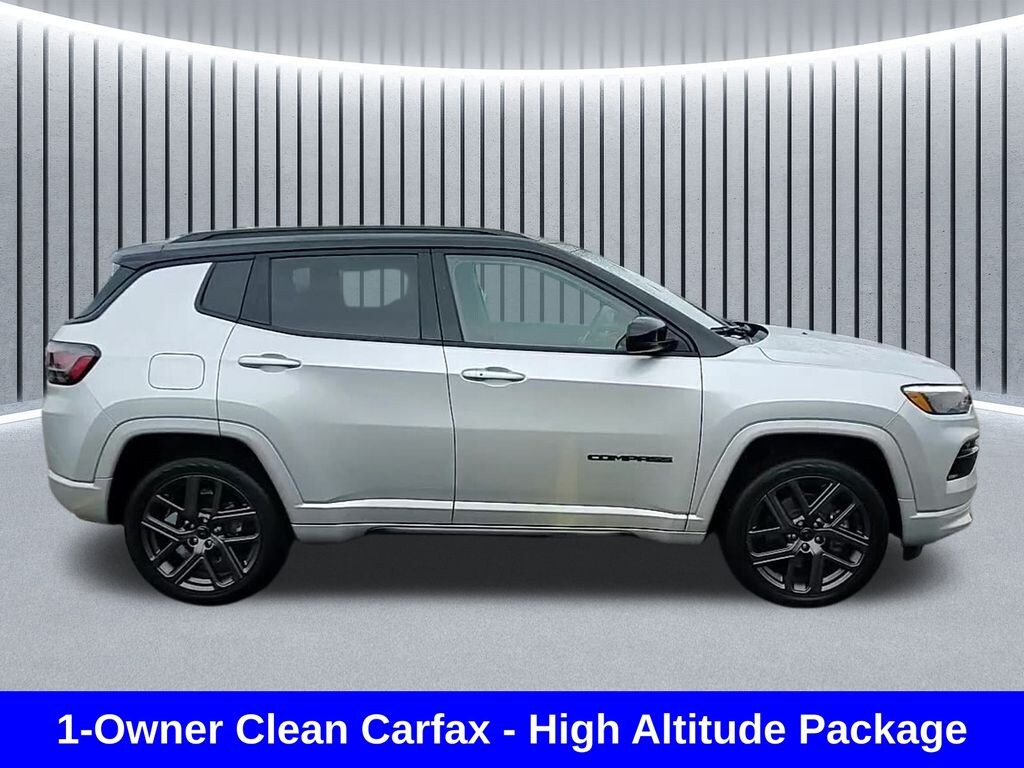 CARFAX One-Owner. Clean CARFAX. Odometer is 4588 miles below market average! ** Clean Carfax 1-Owner Accident Free History, ** Apple CarPlay/Android Auto, ** Adaptive Cruise Control, ** Blind Spot Monitor, ** Cross Traffic Alert, ** Alloy Wheels / Premium Wheels, ** Heated Seats, ** Bluetooth, Hands Free, ** Brake Assist, ** Camera Backup, ** Chrome Wheels / Premium Wheels / Custome Whwels, ** Cruise Control, ** Heated Steering Wheel, ** Keyless Entry, ** Lane Departure Warning, ** Leather Seats, ** Navigation System, ** Power Panoramic (Pano) Sunroof / Moonroof, ** Premium Sound System / Premium Audio, ** Roof Rack, ** Stability Control, ** Steering Wheel Controls, ** Sunroof/Moonroof, ** USB Port, ** Clean Carfax Accident Free History, ** One Owner, High Altitude Package, Uconnect® 5 Nav with 10.1â"Inch Touch Screen Display, Dualâ"Pane Panoramic Sunroof, Powertrain & Performance Engine: 2.0 L turbocharged inline-4 with Engine Stop/Start (ESS) technology. Output: Around 200 hp and 221 lb-ft torque. Transmission: 8-speed automatic (8F30) with AutoStick mode. Drivetrain: Full-time 4WD (Jeep Active Drive) system â" standard on most trims except special Trailhawk low-range models. Towing Capacity: About 2,000 lbs when properly equipped. This setup is tuned for balanced daily driving and light off-road capability, with selectable modes (like Snow, Sand/Mud) through the Selec-Terrain® system. â½ Fuel Economy & Efficiency Estimated EPA City / Highway: ~24 MPG city / 32 MPG highway (4WD). Fuel Tank: ~13.5 gallons. Thatâs fairly typical for a turbo 2.0 L AWD compact SUV â" reasonably efficient for both urban and highway driving., Compass High Altitude High Altitude Package, 4D Sport Utility, 2.0L I4 DOHC, 8-Speed Automatic, 4WD, Silver Zynith Metallic Clearcoat, Black Artificial Leather, 10.1" Touchscreen Display, ABS brakes, Active Cruise Control, Alexa Built-In, Alloy wheels, Altitude Package, Black Day Light Opening Moldings, Body Color Door Claddings, Body Color Exterior Sill Moldings, Body Color Fascias, Body Color Wheel Flares, Cluster 10.25" TFT Color Display, Compass, Connected Travel & Traffic Services, Electronic Stability Control, Front dual zone A/C, Gloss Black Surround/Neutral Gray Rings, GPS Navigation, HD Radio, Heated door mirrors, Heated front seats, High Altitude Package, Illuminated entry, Integrated Voice Command w/Bluetooth, LED Low/Highbeam Projector Headlamps, Liquid Chrome/Chainmail Hydro Accent, Low tire pressure warning, Navigation System, Neutral Gray Exterior Accents, Neutral Gray Exterior Badging, ParkView Rear Back-Up Camera, Passenger door bin, Power Front/Fixed Rear Full Sunroof, Premium Alpine Speaker System, Premium LED Fog Lamps, Premium Taillamps, Quick Order Package 29G, Remote keyless entry, SiriusXM w/360L, Sun & Sound Group, Traction control, Wheels: 19" x 7.5" Aluminum Painted.