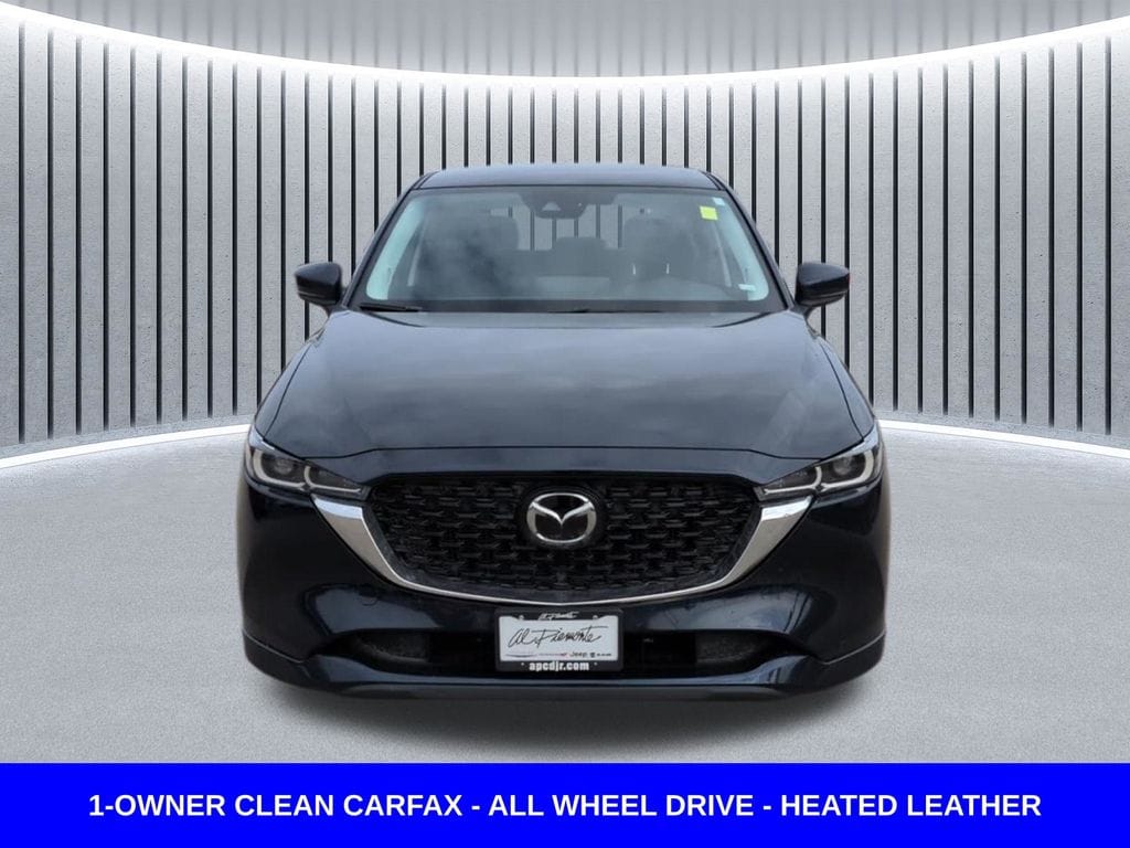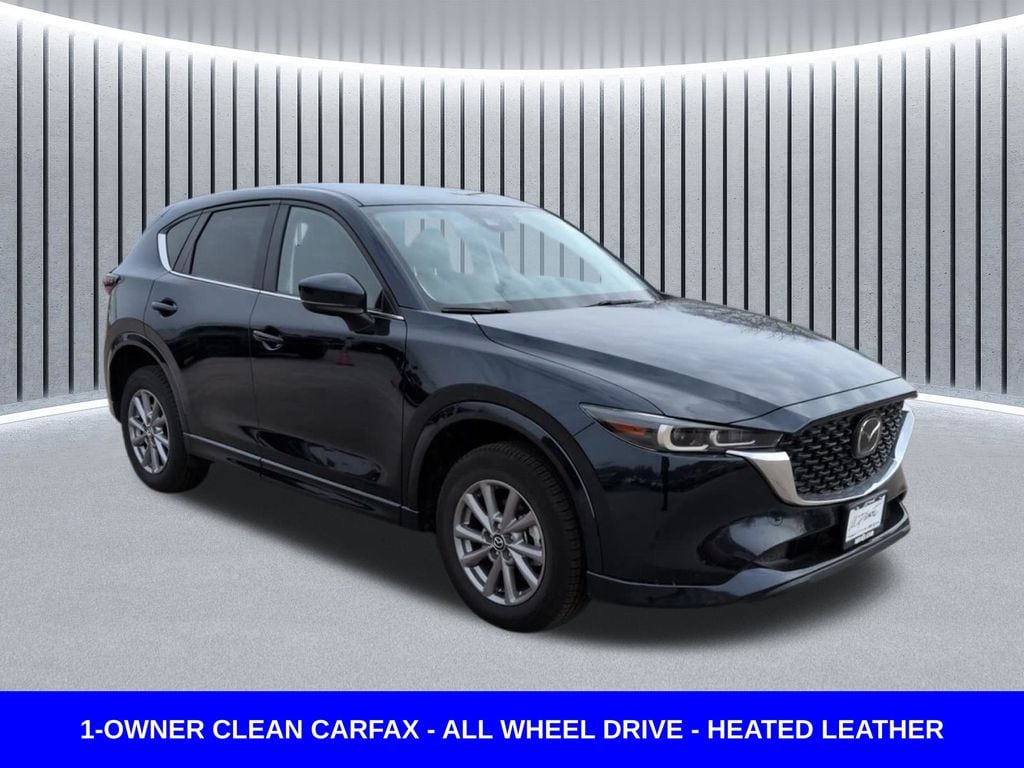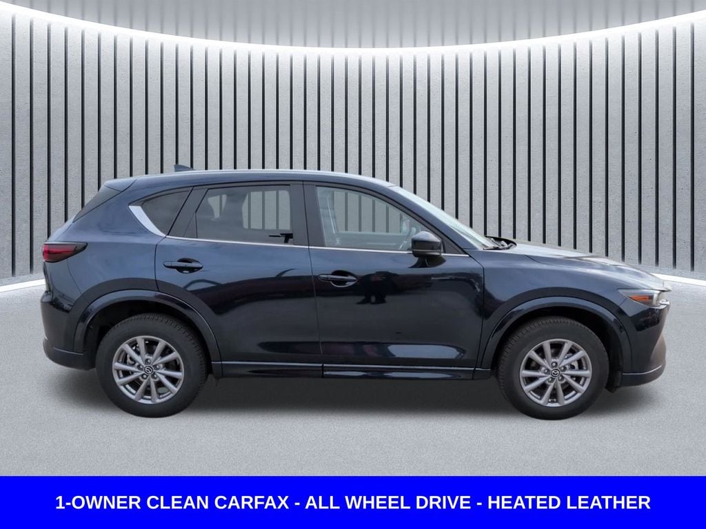 CARFAX One-Owner. Clean CARFAX. ** Clean Carfax 1-Owner Accident Free History, ** Apple CarPlay/Android Auto, ** Adaptive Cruise Control, ** Blind Spot Monitor, ** Cross Traffic Alert, ** Alloy Wheels / Premium Wheels, ** Heated Seats, ** Bluetooth, Hands Free, ** Brake Assist, ** Camera Backup, ** Chrome Wheels / Premium Wheels / Custome Whwels, ** Cruise Control, ** Heated Steering Wheel, ** Keyless Entry, ** Lane Departure Warning, ** Leather Seats, ** LED Headlights, ** Navigation System, ** Premium Sound System / Premium Audio, ** Stability Control, ** Steering Wheel Controls, ** USB Port, ** Clean Carfax Accident Free History, ** One Owner, ** Power Drivers Seat, AWD, ALL WHEEL DRIVE, LEATHERETTE-TRIMMED SEAT, The 2025 Mazda CX-5 2.5 S Select Package AWD is a compact crossover SUV that sits just above the base trim in the CX-5 lineup. It adds comfort upgrades like heated seats and synthetic leather while keeping Mazdaâs standard AWD and efficient 4-cylinder engine. ð"§ Engine & Performance Engine: 2.5 L SKYACTIV-G inline-4 Horsepower: 187 hp Torque: 186 lb-ft Transmission: 6-speed automatic Drivetrain: i-ACTIV All-Wheel Drive (AWD) Capability 0â"60 mph: about 8.9 seconds Towing capacity: up to 2,000 lbs, Fuel Economy (EPA) City: ~23 mpg Highway: ~29 mpg Combined: ~25 mpg, CX-5 2.5 S Select Package AWD, 4D Sport Utility, SKYACTIV® 2.5L 4-Cylinder DOHC 16V, 6-Speed Automatic, AWD, Deep Crystal Blue Mica, Black w/Leather Seat Trim, Navigation System.