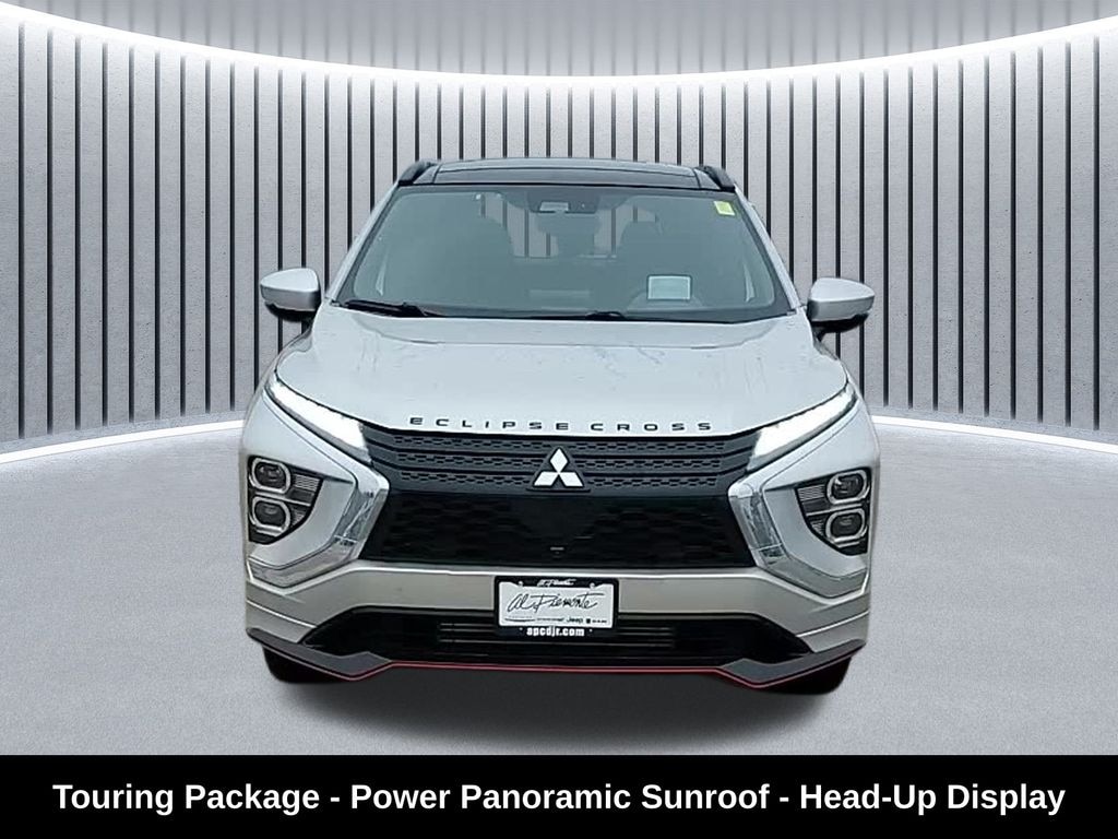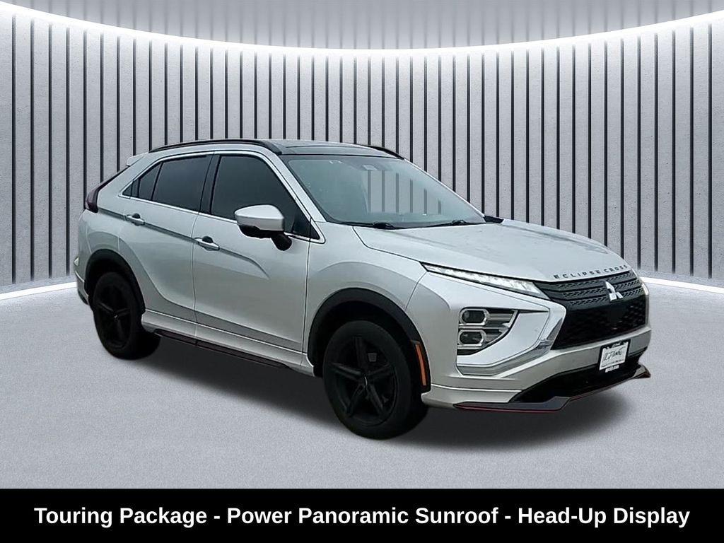 CARFAX One-Owner. Clean CARFAX. Odometer is 4463 miles below market average! ** Apple CarPlay/Android Auto, ** Adaptive Cruise Control, ** Blind Spot Monitor, ** Cross Traffic Alert, ** Alloy Wheels / Premium Wheels, ** Heated Seats, ** Bluetooth, Hands Free, ** Brake Assist, ** Camera Backup, ** Chrome Wheels / Premium Wheels / Custome Whwels, ** Cruise Control, ** Head-Up Display, ** Keyless Entry, ** Lane Departure Warning, ** Leather Seats, ** LED Headlights, ** Power Panoramic (Pano) Sunroof / Moonroof, ** Premium Sound System / Premium Audio, ** Stability Control, ** Steering Wheel Controls, ** Sunroof/Moonroof, ** USB Port, ** Clean Carfax Accident Free History, ** Power Drivers Seat, ** Heated Rear Seats, 4wd, 4x4, Power Panoramic Sunroof, Overview: 2022 Mitsubishi Eclipse Cross SEL Touring Package The 2022 Eclipse Cross received a significant redesign with updated styling, more cargo space, and additional features across the lineup. Mitsubishi Newsroom Powertrain & Performance Engine: 1.5-liter turbocharged 4-cylinder gasoline engine Output: ~152 hp and 184 lb-ft of torque Kbb.com Transmission: Continuously Variable Transmission (CVT) Kbb.com Drivetrain: Optional Super All-Wheel Control (S-AWC) all-wheel drive (adds AWD for about $1,600 on most trims) Mitsubishi Newsroom In your case, SEL 4WD means this S-AWC/AWD system was likely added., SEL Trim Highlights The SEL trim is a well-equipped mid-to-upper level before adding the Touring Package. It includes: Mitsubishi Newsroom Leather-wrapped seating surfaces Heated steering wheel 8-way power adjustable front seats (driver and passenger) Black headliner and pillars Paddle shifters Multi-View Camera System Touring Package Adds On top of the SEL features, the Touring Package (often the top spec for Eclipse Cross) adds a lot of premium amenities: Mitsubishi Newsroom +1 Power panoramic sunroof Heated rear seats Adaptive Cruise Control (ACC) Head-Up Display (HUD) Forward Collision Mitigation with High-Speed Braking Mitsubishi Power Sound System with 8 speakers Auto-dimming rearview mirror with HomeLink® Black roof rails and body-colored bumpers/side garnish, Eclipse Cross SEL Touring Package, 4D Sport Utility, 1.5L I4 DI Turbocharged DOHC 16V LEV3-ULEV70 152hp, CVT, 4WD, Silver, ABS brakes, Alloy wheels, Black Front & Rear Corner Extensions, Electronic Stability Control, Emergency communication system, Front dual zone A/C, Heated door mirrors, Heated Front Bucket Seats, Heated front seats, Illuminated entry, Low tire pressure warning, Navigation System, Remote keyless entry, SEL Touring Exterior Package, Touring Package, Touring Package (P2), Traction control.