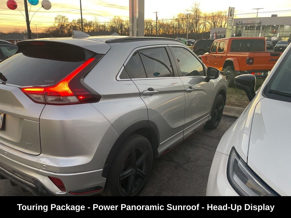 CARFAX One-Owner. Clean CARFAX. ** Apple CarPlay/Android Auto, ** Adaptive Cruise Control, ** Blind Spot Monitor, ** Cross Traffic Alert, ** Alloy Wheels / Premium Wheels, ** Heated Seats, ** Bluetooth, Hands Free, ** Brake Assist, ** Camera Backup, ** Chrome Wheels / Premium Wheels / Custome Whwels, ** Cruise Control, ** Head-Up Display, ** Keyless Entry, ** Lane Departure Warning, ** Leather Seats, ** LED Headlights, ** Power Panoramic (Pano) Sunroof / Moonroof, ** Premium Sound System / Premium Audio, ** Stability Control, ** Steering Wheel Controls, ** Sunroof/Moonroof, ** USB Port, ** Clean Carfax Accident Free History, ** Power Drivers Seat, ** Heated Rear Seats, 4wd, 4x4, Power Panoramic Sunroof, Overview: 2022 Mitsubishi Eclipse Cross SEL Touring Package The 2022 Eclipse Cross received a significant redesign with updated styling, more cargo space, and additional features across the lineup. Mitsubishi Newsroom Powertrain & Performance Engine: 1.5-liter turbocharged 4-cylinder gasoline engine Output: ~152 hp and 184 lb-ft of torque Kbb.com Transmission: Continuously Variable Transmission (CVT) Kbb.com Drivetrain: Optional Super All-Wheel Control (S-AWC) all-wheel drive (adds AWD for about $1,600 on most trims) Mitsubishi Newsroom In your case, SEL 4WD means this S-AWC/AWD system was likely added., SEL Trim Highlights The SEL trim is a well-equipped mid-to-upper level before adding the Touring Package. It includes: Mitsubishi Newsroom Leather-wrapped seating surfaces Heated steering wheel 8-way power adjustable front seats (driver and passenger) Black headliner and pillars Paddle shifters Multi-View Camera System Touring Package Adds On top of the SEL features, the Touring Package (often the top spec for Eclipse Cross) adds a lot of premium amenities: Mitsubishi Newsroom +1 Power panoramic sunroof Heated rear seats Adaptive Cruise Control (ACC) Head-Up Display (HUD) Forward Collision Mitigation with High-Speed Braking Mitsubishi Power Sound System with 8 speakers Auto-dimming rearview mirror with HomeLink® Black roof rails and body-colored bumpers/side garnish, Eclipse Cross SEL Touring Package, 4D Sport Utility, 1.5L I4 DI Turbocharged DOHC 16V LEV3-ULEV70 152hp, CVT, 4WD, Silver, ABS brakes, Alloy wheels, Black Front & Rear Corner Extensions, Electronic Stability Control, Emergency communication system, Front dual zone A/C, Heated door mirrors, Heated Front Bucket Seats, Heated front seats, Illuminated entry, Low tire pressure warning, Navigation System, Remote keyless entry, SEL Touring Exterior Package, Touring Package, Touring Package (P2), Traction control.