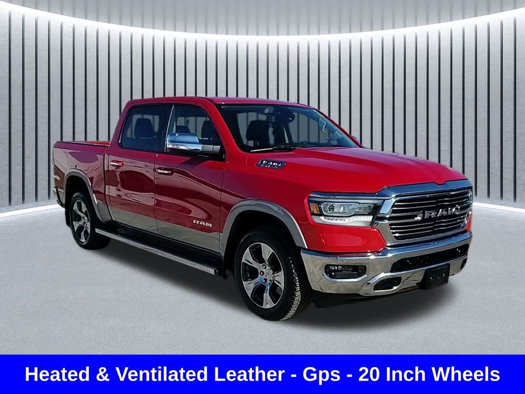 CARFAX One-Owner. ** Apple CarPlay/Android Auto, ** Adaptive Cruise Control, ** Blind Spot Monitor, ** Cross Traffic Alert, ** Alloy Wheels / Premium Wheels, ** Heated Seats, ** Cooled Seats, ** Bluetooth, Hands Free, ** Brake Assist, ** Camera Backup, ** Chrome Wheels / Premium Wheels / Custome Whwels, ** Cruise Control, ** Heated Steering Wheel, ** Keyless Entry, ** Leather Seats, ** LED Headlights, ** Navigation System, ** Premium Sound System / Premium Audio, ** Stability Control, ** Steering Wheel Controls, ** USB Port, ** One Owner, ** Power Drivers Seat, ** Heated Rear Seats, 4wd, 4x4, Antiâ"Spin Differential Rear Axle, 20.0â"Inch x 9.0â"Inch Premium Paint/Polished Wheels, Uconnect® 4C NAV with 8.4â"Inch Display, Model: 2019 Ram 1500 Laramie Drivetrain: 4-Wheel Drive (4WD) Engine: 5.7 L HEMI® V8 with Multi-Displacement System (MDS) and Variable Valve Timing (VVT) Transmission: 8-speed automatic Cab: Typically Crew Cab (4 doors) Seats: 5â"6 passengers (varies by seat config) ð'ª Engine & Performance Displacement: 5.7 liters (345 ci) V-8 Hemi Horsepower: ~395 hp Torque: ~410 lb-ft Cylinder Deactivation: Yes (engine can deactivate cylinders to save fuel), EPA figures for the 5.7 L V8 (varies slightly by exact config): City: ~15 mpg Highway: ~21â"22 mpg Combined: ~17â"20 mpg ð" Towing & Payload Towing and payload depend a lot on the specific truckâs options (axle ratio, hitch package, bed size, etc.), but typical ranges include: ð"¹ Towing Capacity: Up to ~11,600â"11,700 lbs with the standard 5.7 L V8. With the optional eTorque mild-hybrid upgrade, Ramâs published max can go up to around 12,700 lbs., 1500 Laramie 4WD CREW CAB 5.7 V8 HEMI, 4D Crew Cab, HEMI 5.7L V8 Multi Displacement VVT, 8-Speed Automatic, 4WD, Flame Red Clearcoat, Black Leather, Auto High Beam Headlamp Control, Blind Spot & Cross Path Detection, Foam Bottle Insert (Door Trim Panel), GPS Navigation, Laramie Level 1 Equipment Group, Navigation System, ParkSense Front/Rear Park Assist w/Stop, Quick Order Package 25H Laramie, Rain Sensitive Windshield Wipers, Rear 60/40 Folding Split Recline Seat, Remote Tailgate Release, Single Disc Remote CD Player, Tailgate Ajar Warning Lamp.