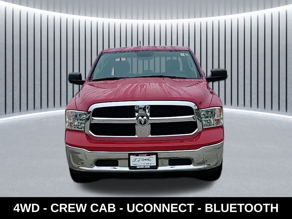 ** Alloy Wheels / Premium Wheels, ** Bluetooth, Hands Free, ** Brake Assist, ** Camera Backup, ** Chrome Wheels / Premium Wheels / Custome Whwels, ** Cruise Control, ** Heated Steering Wheel, ** Keyless Entry, ** Premium Sound System / Premium Audio, ** Stability Control, ** Steering Wheel Controls, ** Tow Hitch / Trailer Hitch, ** USB Port, 2ndâ"Row Inâ"Floor Storage Bins, 3.6L V6 24V VVT, 17â"Inch x 7.0â"Inch Aluminum Wheels, Engine & Performance The 3.6 L Pentastar V6 produces 305 hp and 269 lb-ft of torque. Stellantis Fleet +2 J.D. Power +2 Transmission: 8-speed automatic. Stellantis Fleet +1 Drivetrain for this configuration: 4Ã4 (four-wheel drive). Typical combined fuel economy (for the V6 4Ã4) is around 19 MPG., Dimensions & Capacity Itâs a Crew Cab body style, meaning full four-door with a reasonably large rear seating area. Length: approx 229 inches. Le Guide de l'auto +1 Width: approx 79â²â². CarGurus Because itâs a âClassicâ version (continuation of the previous generation) there are some parts/interior treatments distinct from the newest generation. ð"§ Features & Equipment (Typical) Heavy-duty steel wheels (17â²â²) often standard for the Classic line. Stellantis Fleet 4-wheel anti-lock disc brakes, electronic stability control, trailer sway damping (4Ã4 models). Stellantis Fleet +1 Crew Cab models often include in-floor storage bins and full-size spare tire. Stellantis Fleet Tow wiring, Class III hitch may be available depending on package., 1500 Classic SLT 4WD CREW CAB, 4D Crew Cab, 3.6L V6 24V VVT, 8-Speed Automatic, 4WD, Flame Red Clearcoat, Cloth, ABS brakes, Alloy wheels, Compass, Electronic Stability Control, Heated door mirrors, Illuminated entry, Low tire pressure warning, ParkView Rear Back-Up Camera, Remote keyless entry, Traction control.