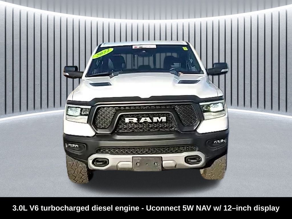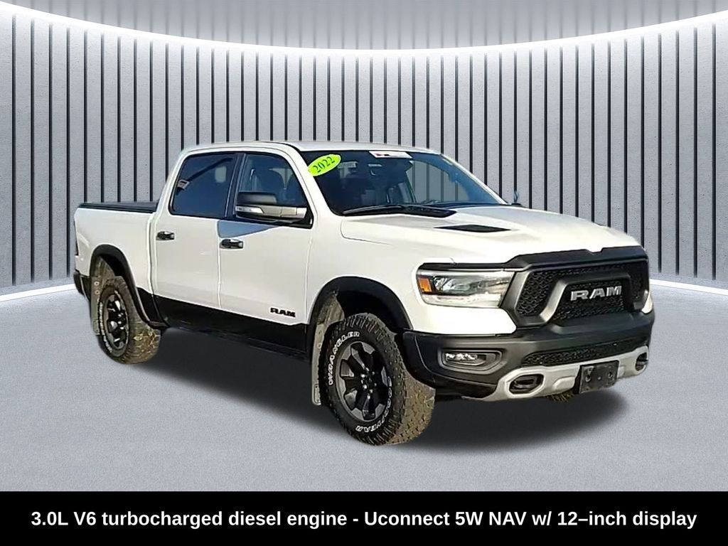 Priced below KBB Fair Purchase Price! Bright White Clearcoat 2022 Ram 1500 4D Crew Cab Rebel 4WD CREW CAB EcoDiesel 3.0L V6 21/29 City/Highway MPG 8-Speed Automatic 4WD