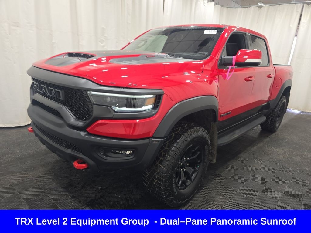 Recent Arrival! Flame Red Clearcoat 2022 Ram 1500 4D Crew Cab TRX Panoramic Roof 6.2L Supercharged HEMI V8 SRT 10/14 City/Highway MPG 8-Speed Automatic 4WD