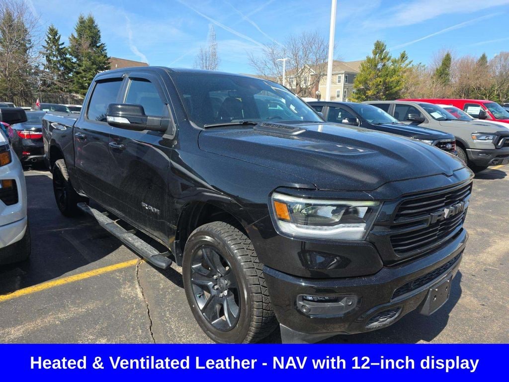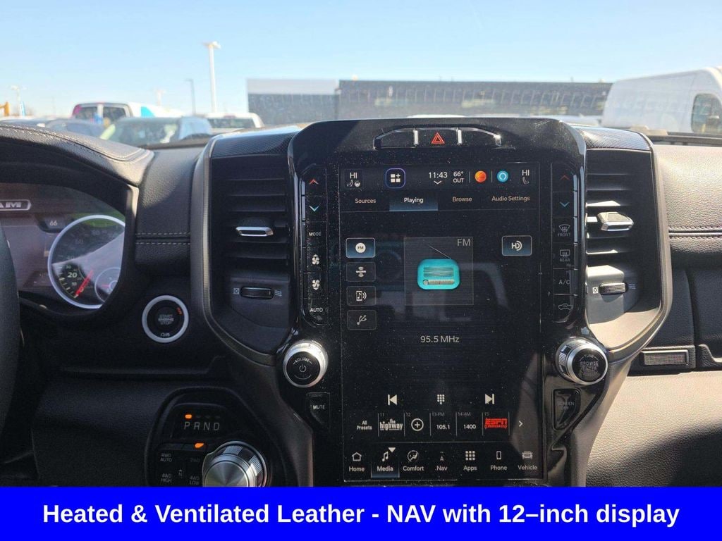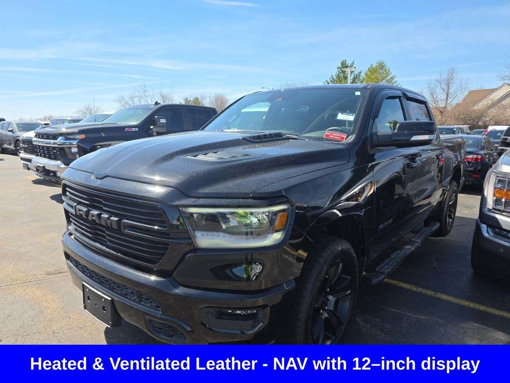 Clean CARFAX. Odometer is 10718 miles below market average! ** Apple CarPlay/Android Auto, ** Blind Spot Monitor, ** Cross Traffic Alert, ** Alloy Wheels / Premium Wheels, ** Heated Seats, ** Cooled Seats, ** Bluetooth, Hands Free, ** Brake Assist, ** Camera Backup, ** Chrome Wheels / Premium Wheels / Custome Whwels, ** Cruise Control, ** Heated Steering Wheel, ** Keyless Entry, ** Lane Departure Warning, ** Leather Seats, ** LED Headlights, ** Navigation System, ** Premium Sound System / Premium Audio, ** Stability Control, ** Steering Wheel Controls, ** Tow Hitch / Trailer Hitch, ** USB Port, ** Clean Carfax Accident Free History, ** Power Drivers Seat, ** Power Passenger Seat, HEMI 5.7L V8, 4WD, 4X4, Leatherâ"faced front vented front bucket seats, Front ventilated seats, 3.92 rear axle ratio, Antiâ"spin differential rear axle, 9 Alpine speakers with subwoofer, Sport performance hood, Uconnect 5W NAV with 12â"inch display, Engine: 5.7L HEMI V8 ~395 hp / 410 lb-ft torque Drivetrain: 4WD (four-wheel drive) Transmission: 8-speed automatic Fuel economy: ~15 city / 21 highway mpg Towing capacity: up to ~11,300 lbs (properly equipped) This is the classic V8 setupâ"strong, reliable, and built more for power and towing than fuel savings. ðª' âLeather-faced front vented front bucket seatsâ â" what that actually means This phrase sounds confusing, but it breaks down like this: Leather-faced: The seating surfaces (where your body touches) are real leather, while the sides/back may be high-quality vinyl to reduce wear and cost. Front bucket seats: Two individual seats (driver + passenger) instead of a front bench. Gives you: Center console More comfort and support Vented (ventilated) seats: Built-in fans that blow air through the seat, helping keep you cool in hot weather., 1500 Sport HEMI 5.7L V8, 4D Crew Cab, HEMI 5.7L V8 VVT, 8-Speed Automatic, 4WD, Diamond Black Crystal Pearlcoat, Black w/Premium Leather Trimmed Bucket Seats, 115V Rear Auxiliary Power Outlet, 2nd Row In-Floor Storage Bins, GPS Navigation, Media Hub w/2 USB Charging Ports, Navigation System, Park-Sense Front/Rear Park Assist w/Stop, Quick Order Package 25L Sport, Rain-Sensing Windshield Wipers, Rear Underseat Compartment Storage, Rebel Level 2 Equipment Group, Remote Proximity Keyless Entry, Remote Start System, Security Alarm, Trailer Brake Control, Trailer Light Check, Trailer Reverse Steering Control, Trailer Tow Group.