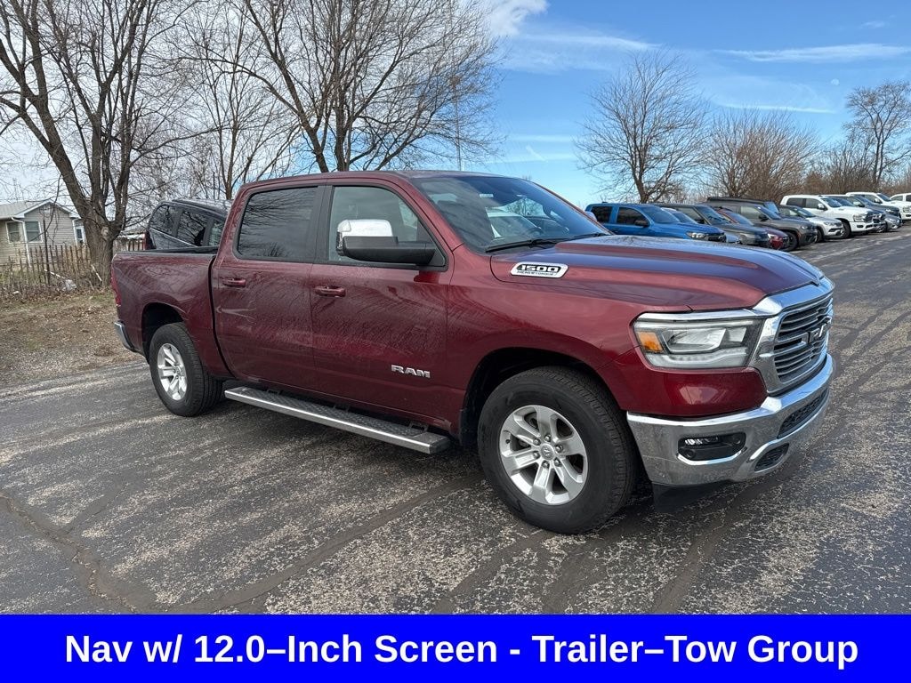 CARFAX One-Owner. ** Apple CarPlay/Android Auto, ** Adaptive Cruise Control, ** Blind Spot Monitor, ** Cross Traffic Alert, ** Alloy Wheels / Premium Wheels, ** Heated Seats, ** Cooled Seats, ** Bluetooth, Hands Free, ** Brake Assist, ** Camera Backup, ** Chrome Wheels / Premium Wheels / Custome Whwels, ** Cruise Control, ** Heated Steering Wheel, ** Keyless Entry, ** Lane Departure Warning, ** Leather Seats, ** LED Headlights, ** Navigation System, ** Premium Sound System / Premium Audio, ** Stability Control, ** Steering Wheel Controls, ** Tow Hitch / Trailer Hitch, ** USB Port, ** One Owner, ** Power Drivers Seat, ** Power Passenger Seat, 4WD, 4X4, HEMI 5.7L V8 Multi Displacement VVT eTorque, Uconnect® 5 Nav with 12.0â"Inch Touch Screen Display, Leatherâ"Trimmed Bucket Seats, Ventilated Front Seats, 3.92 Rear Axle Ratio, Engine & Performance (HEMI V8 ð'ª) Engine: 5.7L HEMI V8 (eTorque mild hybrid) Power: 395 hp / 410 lb-ft torque Transmission: 8-speed automatic ð' Real-world feel: Strong acceleration for a big truck Smooth power delivery That classic V8 sound people love 0â"60 mph: ~5.9 seconds â" Quick for a full-size truck ð» Towing & Capability Max towing: ~11,000 lbs+ Payload: ~1,600â"1,800 lbs ð' Translation: Boats â"ï¸ Campers â"ï¸ Work trailers â"ï¸ â ï¸ Note: Actual towing depends on axle ratio and setup, 1500 Laramie 4WD CREW CAB 5.7 V8 HEMI, 4D Crew Cab, HEMI 5.7L V8 Multi Displacement VVT eTorque, 8-Speed Automatic, 4WD, Delmonico Red Pearlcoat, Black Leather, 12" Touchscreen Display, 2nd Row In Floor Storage Bins, 4G LTE Wi-Fi Hot Spot, Apple CarPlay, Auto High Beam Headlamp Control, Blind Spot & Cross Path Detection, Connected Travel & Traffic Services, Connectivity - US/Canada, Disassociated Touchscreen Display, Electric Shift-On-Demand Transfer Case, Foam Bottle Insert (Door Trim Panel), For Details, Visit DriveUconnect.com, For More Info, Call 800-643-2112, Front Door Accent Lighting, Front LED Fog Lamps, Global Telematics Box Module (TBM), Google Android Auto, GPS Antenna Input, GPS Navigation, HD Radio, Integrated Center Stack Radio, Integrated Voice Command w/Bluetooth, Laramie Level 1 Equipment Group, LED Reflector Headlamps, Navigation System, ParkSense Front/Rear Park Assist w/Stop, Quick Order Package 27H Laramie, Radio: Uconnect 5 Nav w/12.0" Display, Rain Sensitive Windshield Wipers, Rear Door Accent Lighting, Rear Power Sliding Window, Rear Window Defroster, Remote Tailgate Release, SiriusXM Radio Service, SiriusXM w/360L, Trailer Brake Control, Trailer Light Check, Trailer Reverse Steering Control, Trailer Tire Pressure Monitoring System, Trailer Tow Group, USB Host Flip.