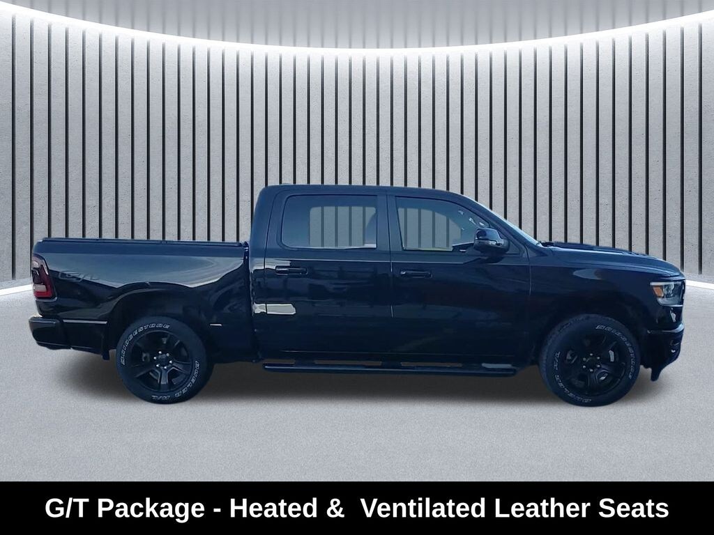 ** Apple CarPlay/Android Auto, ** Alloy Wheels / Premium Wheels, ** Heated Seats, ** Cooled Seats, ** Bluetooth, Hands Free, ** Brake Assist, ** Camera Backup, ** Chrome Wheels / Premium Wheels / Custome Whwels, ** Cruise Control, ** Keyless Entry, ** Leather Seats, ** LED Headlights, ** Premium Sound System / Premium Audio, ** Stability Control, ** Steering Wheel Controls, ** USB Port, ** Power Drivers Seat, HEMI 5.7L V8 VVT, Powertrain & Performance Engine: 5.7 L HEMI® V8 with eTorque mildâhybrid system (8âspeed automatic) Horsepower: ~395 hp Torque: ~410 lbâft Drivetrain: FourâWheel Drive (4Ã4) Fuel Type: Regular gasoline Transmission: 8âspeed automatic, Sport GT typically includes a sportier appearance package â" often blackedâout trim, performance hood, unique wheels, and GT badging (based on Sport/Night/GT options in similar docs) Available features often include: LED lighting Black grille or bodyâcolor accents Larger performance wheels (e.g., 22â²â²), 1500 Sport GT PACKAGE, 4D Crew Cab, HEMI 5.7L V8 VVT, 8-Speed Automatic, 4WD, Diamond Black Crystal Pearlcoat, Black w/Leather Trimmed Bucket Seats, 115V Rear Auxiliary Power Outlet, 2nd Row In-Floor Storage Bins, 3.92 Rear Axle Ratio, Exterior Mirrors w/Memory Settings, Floor Console, Front Door Accent Lighting, G/T Decal, G/T Package, GT Interior Theme, Leather Wrapped Shift Knob, Leather-Faced/Vinyl Bucket Seats, Leather-Wrapped Steering Wheel, Media Hub w/2 USB Charging Ports, MOPAR Bright Pedal Kit, MOPAR Cold Air Intake System, MOPAR Off-Road Truck Floor Mats, Navigation System, Park-Sense Front/Rear Park Assist w/Stop, Passive Cold End Exhaust, Performance Pages, Power 8-Way Driver Seat, Power Adjustable Pedals w/Memory, Quick Order Package 27L Sport, Radio/Driver Seat/Mirrors/Pedals Memory, Rain-Sensing Windshield Wipers, Rear Door Accent Lighting, Rear Underseat Compartment Storage, Rebel Level 2 Equipment Group, Remote Start System, Security Alarm, Sport Performance Hood, Steering Wheel Mounted Shift Control, Twill Film Appliques, Under Seat Lighting.