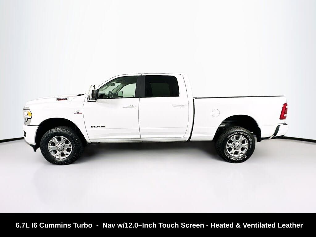 CARFAX One-Owner. Clean CARFAX. ** Clean Carfax 1-Owner Accident Free History, ** Apple CarPlay/Android Auto, ** Adaptive Cruise Control, ** Blind Spot Monitor, ** Cross Traffic Alert, ** Alloy Wheels / Premium Wheels, ** Heated Seats, ** Cooled Seats, ** Bluetooth, Hands Free, ** Brake Assist, ** Camera Backup, ** Chrome Wheels / Premium Wheels / Custome Whwels, ** Cruise Control, ** Heated Steering Wheel, ** Keyless Entry, ** Lane Departure Warning, ** Leather Seats, ** LED Headlights, ** Navigation System, ** Premium Sound System / Premium Audio, ** Stability Control, ** Steering Wheel Controls, ** Tow Hitch / Trailer Hitch, ** USB Port, ** Clean Carfax Accident Free History, ** One Owner, ** Power Drivers Seat, ** Power Passenger Seat, Cummins 6.7L I6 Turbodiesel, Uconnect® 5 Nav with 12.0â"Inch Touch Screen Display, Ventilated Front Seats, Engine & Performance Engine: 6.7 L Inline-6 Cummins® Turbo Diesel Horsepower: ~370 hp @ 2,800 rpm Torque: ~850 lb-ft @ ~1,700 rpm Transmission: 6-speed automatic (68RFE) paired to diesel Drivetrain: Four-Wheel Drive (4Ã4) Crew Cab configuration Fuel Tank: Approximately 32 gallons (diesel) Note: Some third-party sources list slight variations in horsepower/torque depending on configuration and tuning â" always check the specific vehicleâs build sheet. ð Towing & Payload Maximum Towing Capacity: up to ~20,000 lbs (varies by axle ratio, equipment, and trailer type) Typical Towing (Crew Cab): ~19,900 lbs for 6.7L Cummins setup Estimated Payload Capacity (Crew Cab Diesel): ~3,150 lbs (approx; varies with options, 2500 Laramie Cummins 6.7L I6 Turbodiesel, 4D Crew Cab, Cummins 6.7L I6 Turbodiesel, 6-Speed Automatic, 4WD, Bright White Clearcoat, Black w/Limited Leather Bucket Seats, 12" Touchscreen Display, 2nd Row In Floor Storage Bins, 4G LTE Wi-Fi Hot Spot, Alexa Built-In, Apple CarPlay, Auto Adjust In Reverse Exterior Mirrors, Auto Dim Exterior Mirror, Auto High Beam Headlamp Control, Auto Power-Folding Mirrors, Auto-Dimming Exterior Passenger Mirror, Blind Spot & Cross Path Detection, Center Hub, Chrome Exterior Mirrors, Cold Weather Group, Connected Travel & Traffic Services, Connectivity - US/Canada, Disassociated Touchscreen Display, Engine Block Heater, Exterior Mirrors Courtesy Lamps, Exterior Mirrors w/Heating Element, Exterior Mirrors w/Memory, Exterior Mirrors w/Supplemental Signals, Foam Bottle Insert (Door Trim Panel), For Details, Visit DriveUconnect.com, For More Info, Call 800-643-2112, Forward & Reverse Utility Lights, Front LED Fog Lamps, Global Telematics Box Module (TBM), Google Android Auto, GPS Antenna Input, GPS Navigation, HD Radio, Integrated Voice Command w/Bluetooth, Laramie Level 1 Equipment Group, LED Reflector Headlamps, LED Tail Lamps, Mirror Running Lights, MOPAR Winter Front Grille Cover, Navigation System, Off-Road Information Pages, ParkSense Front/Rear Park Assist System, Power Adjust Mirrors, Power Adjustable Convex Aux Mirrors, Power Adjustable Pedals w/Memory, Power Heated Fold Telescopic Mirrors w/Memory, Power Telescoping Mirrors, Quick Order Package 2HH Laramie, Radio: Uconnect 5 Nav w/12.0" Display, Rain Sensitive Windshield Wipers, Rear Power Sliding Window, Rear Window Defroster, Remote Tailgate Release, Selectable Tire Fill Alert, SiriusXM Radio Service, SiriusXM w/360L, Trailer Tow Pages, Wheels: 18" x 8.0" Polished Aluminum.