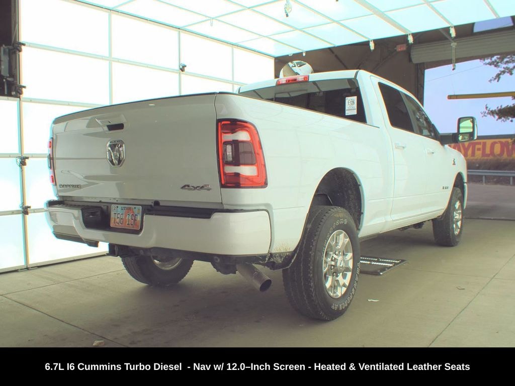 CARFAX One-Owner. Clean CARFAX. ** Apple CarPlay/Android Auto, ** Adaptive Cruise Control, ** Blind Spot Monitor, ** Cross Traffic Alert, ** Alloy Wheels / Premium Wheels, ** Heated Seats, ** Cooled Seats, ** Bluetooth, Hands Free, ** Brake Assist, ** Camera Backup, ** Chrome Wheels / Premium Wheels / Custome Whwels, ** Cruise Control, ** Heated Steering Wheel, ** Keyless Entry, ** Lane Departure Warning, ** Leather Seats, ** LED Headlights, ** Navigation System, ** Premium Sound System / Premium Audio, ** Stability Control, ** Steering Wheel Controls, ** Tow Hitch / Trailer Hitch, ** USB Port, ** Clean Carfax Accident Free History, ** Power Drivers Seat, 4x4, 6.7L I6 Cummins Turbo, 4wd, Uconnect® 5 Nav with 12.0â"Inch Touch Screen Displa, Ventilated Front Seats, Engine type: 6.7 L inline-6 turbocharged diesel Compacted graphite iron (CGI) block with robust build for durability Electronic high-pressure common-rail fuel injection Pushrod overhead valve train Ultra-low sulfur diesel required Amazon Web Services, Inc. Power & Torque: 370 hp @ ~2,800 rpm 850 lb-ft of torque @ ~1,700 rpm This torque figure gives the Cummins diesel an edge in towing and low-end grunt compared with many gas engines. Keller Bros. Dodge RAM +1 Transmission:, Drivetrain & Chassis 4WD (four-wheel drive) for off-road traction and all-season capability Heavy-duty truck architecture with strong frame and suspension to handle big loads Standard 4WD selectable modes to adapt to terrain and towing demands ð" Towing & Payload Capacities (Numbers vary by cab/box and optional equipment, but these are representative for a 4WD Laramie with the 6.7 L diesel.) Towing Capacity Up to ~20,000 lbs when properly equipped â" with a regular cab & long box setup Keller Bros. Dodge RAM Towing capacity changes with cab size, bed length, and axle ratio â" e.g., Crew Cab / 6â4â²â²: ~19,980 lbs Crew Cab / 8â box: ~18,230 lbs, 2500 Laramie 6.7L I6 Cummins Turbo, 4D Crew Cab, Cummins 6.7L I6 Turbodiesel, 6-Speed Automatic, 4WD, Bright White Clearcoat, Black Leather, 12" Touchscreen Display, 2nd Row In Floor Storage Bins, 4G LTE Wi-Fi Hot Spot, Alexa Built-In, Apple CarPlay, Auto Adjust In Reverse Exterior Mirrors, Auto Dim Exterior Mirror, Auto High Beam Headlamp Control, Auto Power-Folding Mirrors, Auto-Dimming Exterior Passenger Mirror, Blind Spot & Cross Path Detection, Center Hub, Chrome Exterior Mirrors, Connected Travel & Traffic Services, Connectivity - US/Canada, Disassociated Touchscreen Display, Exterior Mirrors Courtesy Lamps, Exterior Mirrors w/Heating Element, Exterior Mirrors w/Memory, Exterior Mirrors w/Supplemental Signals, Foam Bottle Insert (Door Trim Panel), For Details, Visit DriveUconnect.com, For More Info, Call 800-643-2112, Forward & Reverse Utility Lights, Front LED Fog Lamps, Global Telematics Box Module (TBM), Google Android Auto, GPS Antenna Input, GPS Navigation, HD Radio, Integrated Voice Command w/Bluetooth, Laramie Level 1 Equipment Group, LED Reflector Headlamps, LED Tail Lamps, Mirror Running Lights, Navigation System, Off-Road Information Pages, ParkSense Front/Rear Park Assist System, Power Adjust Mirrors, Power Adjustable Convex Aux Mirrors, Power Adjustable Pedals w/Memory, Power Heated Fold Telescopic Mirrors w/Memory, Power Telescoping Mirrors, Quick Order Package 2HH Laramie, Radio: Uconnect 5 Nav w/12.0" Display, Rain Sensitive Windshield Wipers, Rear Power Sliding Window, Rear Window Defroster, Remote Tailgate Release, Selectable Tire Fill Alert, SiriusXM Radio Service, SiriusXM w/360L, Trailer Tow Pages, Wheels: 18" x 8.0" Polished Aluminum.