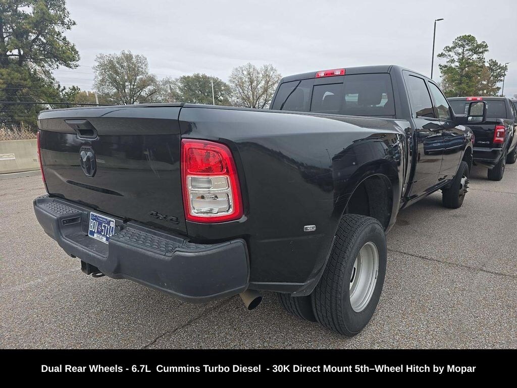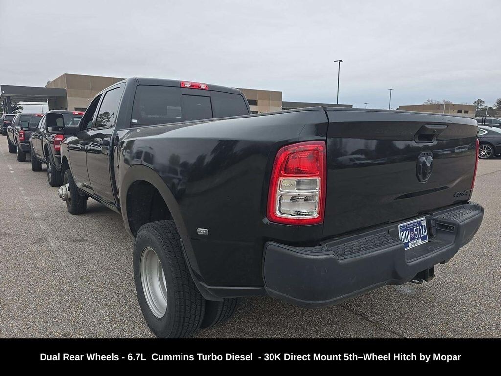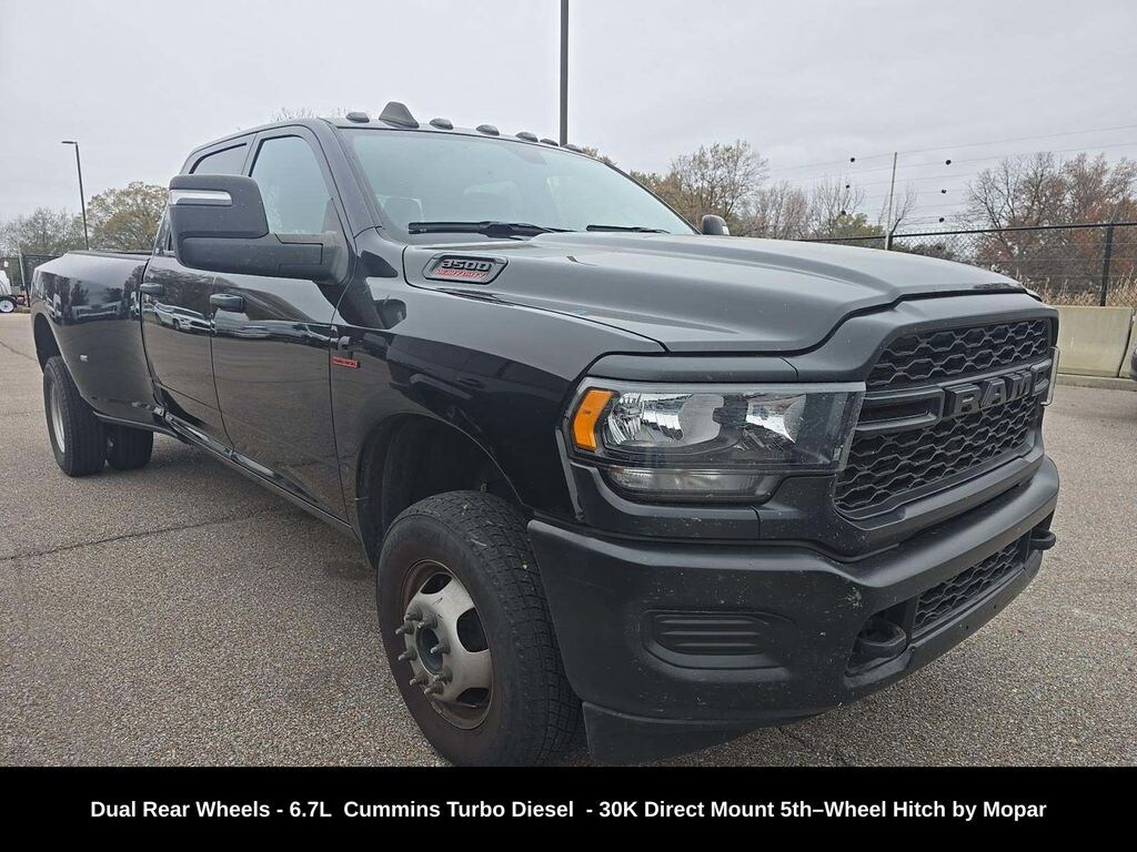 CARFAX One-Owner. Clean CARFAX. ** Apple CarPlay/Android Auto, ** Alloy Wheels / Premium Wheels, ** Brake Assist, ** Camera Backup, ** Chrome Wheels / Premium Wheels / Custome Whwels, ** Cruise Control, ** Keyless Entry, ** WiFi Hotspot, ** Premium Sound System / Premium Audio, ** Stability Control, ** Steering Wheel Controls, ** Tow Hitch / Trailer Hitch, ** USB Port, ** Clean Carfax Accident Free History, 5th Wheel / Gooseneck Towing Prep Group, 30K Direct Mount 5thâ"Wheel Hitch by Mopar®, Dual Rear Wheels, 4.10 Axle Ratio, Uconnect® 5 with 8.4â"Inch Touch Screen Display, 6.7L I6 Cummins, Dual Rear Wheels, 2024 RAM 3500 Tradesman Crew Cab 4Ã4 DRW â" Key Details ð"§ Configuration Model: RAM 3500 Tradesman Cab: Crew Cab Drivetrain: 4Ã4 (Four-wheel drive) Engine: 6.7 L I6 Cummins Turbo Diesel (standard diesel option in many listings) huffineschryslerjeepdodgeramplano.com Rear Axles: Dual Rear Wheels (dually) for increased load & stability huffineschryslerjeepdodgeramplano.com Box: Long Box (8-foot pickup bed â" ideal for hauling/ fifth-wheel setups) Transmission: Often paired with a heavy-duty automatic (e.g., Aisin 6-speed auto with 3.73 axle), Towing Capacity With high-output diesel and proper towing configuration: Up to ~37,090 lbs max trailer weight on a properly equipped DRW model. MotorDonkey +1 Standard diesel and gas models tow lower amounts (diesel ~22,660 lbs for regular cabs with DRW; figures vary by axle ratio and gear). MotorDonkey Exact towing numbers depend on bed length, axle ratio, engine choice, and whether the high-output Cummins is selected. Note: DRW (dually) setups offer enhanced stability and higher towing ratings â" especially for heavier trailers and gooseneck/5th-wheel rigs., LONG BOX, âLong Boxâ refers to the 8-foot cargo bed (also called an 8' box). Itâs longer than the 6â²4â²â² box and gives more cargo volume. Stellantis Fleet Ram 3500 with the 8' box is often chosen for better towing stability and more cargo space and fuel tank options than shorter beds., What âDual Rear Wheels (DRW)â Means A dually (Dual Rear Wheels / DRW) Ram 3500 has four tires on the rear axle instead of the standard two. This provides: Higher towing and payload capacities Greater stability and load distribution Improved control and braking when hauling heavy trailers This setup is especially beneficial if youâre regularly pulling big fifth-wheel/gooseneck trailers, heavy equipment, or very large loads. Types Trucks for Sale, 3500 Tradesman Dual Rear Wheels, 4D Crew Cab, 6.7L 6-Cylinder Diesel Turbocharged OHV, 6-Speed Automatic, 4WD, Diamond Black Crystal Pearlcoat, Black w/Cloth 40/20/40 Bench Seat, Black Exterior Mirrors, Carpet Floor Covering, Cloth 40/20/40 Bench Seat, Exterior Mirrors Courtesy Lamps, Exterior Mirrors w/Heating Element, Exterior Mirrors w/Supplemental Signals, Manual Folding Exterior Mirrors, Manual Telescoping Mirrors, Mirror Running Lights, Power Adjust Mirrors, Power Heat Fold Telescopic Mirrors, Power-Adjustable Convex Aux Mirrors, Quick Order Package 2HA Tradesman, Rear Power Sliding Window, Rear Window Defroster, Tradesman Level 2 Equipment Group.