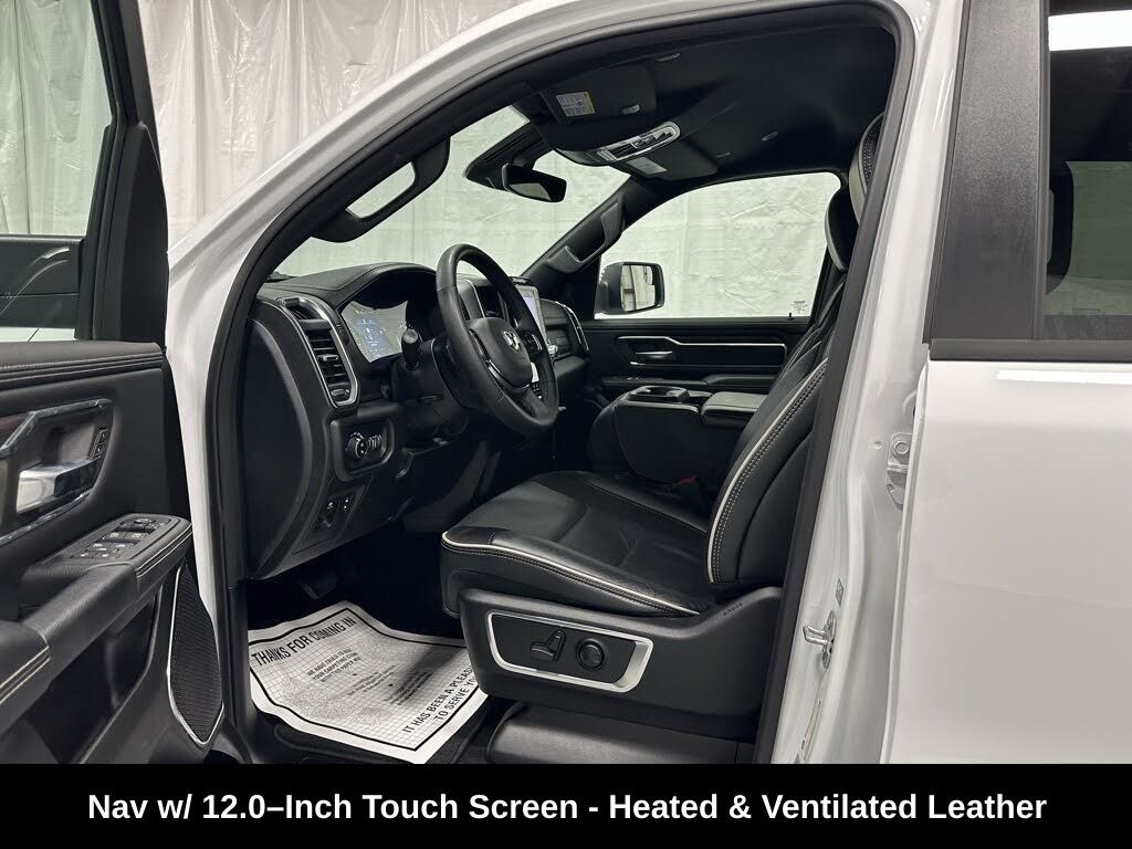 CARFAX One-Owner. Clean CARFAX. ** Clean Carfax 1-Owner Accident Free History, ** Apple CarPlay/Android Auto, ** Adaptive Cruise Control, ** Blind Spot Monitor, ** Cross Traffic Alert, ** Alloy Wheels / Premium Wheels, ** Heated Seats, ** Cooled Seats, ** Bluetooth, Hands Free, ** Brake Assist, ** Camera Backup, ** Chrome Wheels / Premium Wheels / Custome Whwels, ** Cruise Control, ** Heated Steering Wheel, ** Keyless Entry, ** Lane Departure Warning, ** Leather Seats, ** LED Headlights, ** Navigation System, ** Premium Sound System / Premium Audio, ** Stability Control, ** Steering Wheel Controls, ** USB Port, ** Clean Carfax Accident Free History, ** One Owner, ** Power Drivers Seat, ** Power Passenger Seat, ** Heated Rear Seats, 4wd, 4x4, 2025 RAM 1500 Laramie Crew Cab 4Ã4 â" Key Details ð"§ Engine & Performance Engine: 3.0 L Hurricane I-6 Twin-Turbo (Single-Output) Horsepower: ~420 hp @ 5,200 rpm Torque: ~469 lb-ft @ 3,500 rpm Transmission: 8-speed automatic (8HP75) Drivetrain: Four-Wheel Drive (4Ã4) This engine replaces the traditional HEMI V-8 for 2025 with a turbocharged inline-six that delivers strong torque and horsepower while still being efficient for its class., Common features on the 2025 Laramie include: Heated front seats & steering wheel Leather interior and premium materials Touchscreen infotainment with smartphone compatibility Rear backup camera Proximity keyless entry & push-button start Remote start system (feature availability may vary by package) ð¡ Safety & Driver Aids (Selected) Blind Spot Monitoring Rear Cross-Path Detection Forward Collision Warning ParkSense Front & Rear Park Assist, 1500 Laramie 4WD CREW CAB, 4D Crew Cab, 3.0L I6, 8-Speed Automatic, 4WD, Bright White Clearcoat, Black w/Leather Trimmed Bucket Seats, GPS Navigation, Laramie Level 1 Equipment Group, Navigation System, Quick Order Package 21H Laramie, Rain Sensitive Windshield Wipers, Remote Tailgate Release.