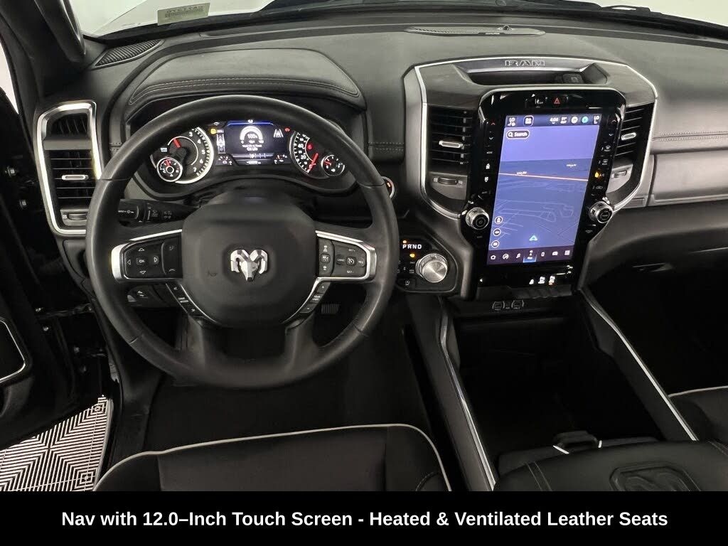 CARFAX One-Owner. ** Clean Carfax 1-Owner Accident Free History, ** Apple CarPlay/Android Auto, ** Adaptive Cruise Control, ** Blind Spot Monitor, ** Cross Traffic Alert, ** Alloy Wheels / Premium Wheels, ** Heated Seats, ** Cooled Seats, ** Bluetooth, Hands Free, ** Brake Assist, ** Camera Backup, ** Chrome Wheels / Premium Wheels / Custome Whwels, ** Cruise Control, ** Heated Steering Wheel, ** Keyless Entry, ** Lane Departure Warning, ** Leather Seats, ** LED Headlights, ** Navigation System, ** Premium Sound System / Premium Audio, ** Stability Control, ** Steering Wheel Controls, ** Tow Hitch / Trailer Hitch, ** USB Port, ** Clean Carfax Accident Free History, ** Power Drivers Seat, ** Power Passenger Seat, ** Heated Rear Seats, 4WD, 4X4, 3.0L I6 Hurricane SO Twin Turbo, 20â"Inch x 9.0â"Inch Premium Painted/Polished Wheels, Ventilated Front Seats, 9â"Amplified Speakers with Subwoofer, 2025 Ram 1500 Laramie 4WD (3.0 L Twin-Turbo) Overview Engine & Performance Engine: 3.0 L I-6 Twin-Turbo âHurricaneâ (Standard Output) Stellantis Fleet Horsepower: ~420 hp Stellantis Fleet Torque: ~469 lb-ft Stellantis Fleet Transmission: 8-speed automatic ramtrucks Drive: Four-Wheel Drive (4Ã4) (standard or optional depending on config, Performance & Capability EPA Fuel Economy: Around 17 city / 24 hwy mpg for 4Ã4 in typical configs Stellantis Fleet Real-World Fuel Economy: ~16-19 mpg depending on load and conditions (based on independent testing) MotorTrend Towing & Payload: Up to roughly 11,400â"11,560 lbs towing and ~1,670 lbs payload (varies with axle ratio, cab/bed, and options) Elk Grove Dodge Chrysler Jeep RAM 0-60 mph: Around 5.3 sec in real-world tests. MotorTrend â Features & Equipment (Typical Laramie) Laramie sits above the more basic trims and adds a mix of comfort, tech, and driver aids: Interior & Comfort Leather-trimmed seating (varies by package) Earnhardt Auto Centers Heated seats (often available) Rairdon Automotive Group Large touchscreen with Uconnect 5 Nav (often 12" or 14.4") Ken Garff Auto Group Premium audio options Earnhardt Auto Centers Driver Aids & Safety Adaptive Cruise Control Rairdon Automotive Group Blind Spot Monitoring & Forward Collision Warning Rairdon Automotive Group Lane Departure Warning Rairdon Automotive Group ParkSense front/rear sensors Rairdon, 1500 Laramie 4WD CREW CAB, 4D Crew Cab, 3.0L I6, 8-Speed Automatic, 4WD, Diamond Black Crystal Pearlcoat, Black Leather, GPS Navigation, Navigation System, Quick Order Package 21H Laramie.