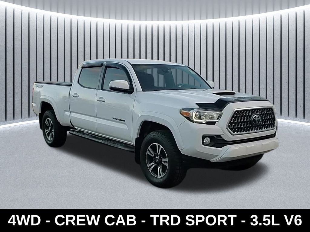 Clean CARFAX. ** Apple CarPlay/Android Auto, ** Alloy Wheels / Premium Wheels, ** Bluetooth, Hands Free, ** Brake Assist, ** Camera Backup, ** Chrome Wheels / Premium Wheels / Custome Whwels, ** Cruise Control, ** Keyless Entry, ** LED Headlights, ** Premium Sound System / Premium Audio, ** Stability Control, ** Steering Wheel Controls, ** USB Port, ** Clean Carfax Accident Free History, 4WD, 4X4, TRD Sport, Model: 2019 Toyota Tacoma TRD Sport Body: Double Cab (Crew Cab with 4 doors) Drivetrain: Part-time 4WD (Toyotaâs 4WDemand system) Engine: 3.5 L V6 Atkinson-cycle with Dual VVT-i Horsepower: ~278 hp Torque: ~265 lb-ft Transmission: 6-speed automatic or available 6-speed manual Seating: 5 passengers Bed: Typically a Short Bed (~5â²) â" some may have the 6â² bed option, Performance & Capabilities Engine & Drive: Powerful 3.5 L V6 with solid mid-size truck performance. team-toyota.com 4WD System: Part-time 4Ã4 with electronically controlled transfer case â" good for light off-road and all-weather traction. Velocity Journal Fuel Economy: ~18 mpg city / 22 mpg highway (4WD automatic). web2carz.com Towing: Around 6,400 lbs when properly equipped. Edmunds Payload: ~1,175 lbs., Common equipment and amenities on TRD Sport Double Cab models include: â" 17â²â² machined alloy wheels Ramstein Used Cars â" Hood scoop & sport styling Ramstein Used Cars â" 120 V/400 W bed power outlet Auto Catalog Archive â" LED daytime running lights & fog lamps Ramstein Used Cars â" Entune audio with touchscreen & Bluetooth Toyota of Fort Walton Beach â" Backup camera Toyota of Fort Walton Beach â" Optional tech packages (navigation, blind-spot monitor, etc.), Tacoma TRD Sport V6, 4D Double Cab, 3.5L V6 PDI DOHC 24V LEV3-ULEV70 278hp, 6-Speed Automatic, 4WD, Super White, Black/Caramel w/Fabric Seat Trim, 120V/400W Deck Mounted AC Power, ABS brakes, Active Cruise Control, Air Conditioning, Alloy wheels, Auto-Dimming Inside Rear-View Mirror w/Compass, Color Keyed Rear Bumper, Electronic Stability Control, Engine Immobilizer, Illuminated entry, LED Daytime Running Lamps, Low tire pressure warning, Remote keyless entry, Smart Key w/Push Button Start, Traction control, TRD Sport Package, Wide Angle Front Fog Lamps.